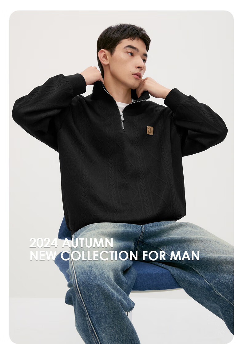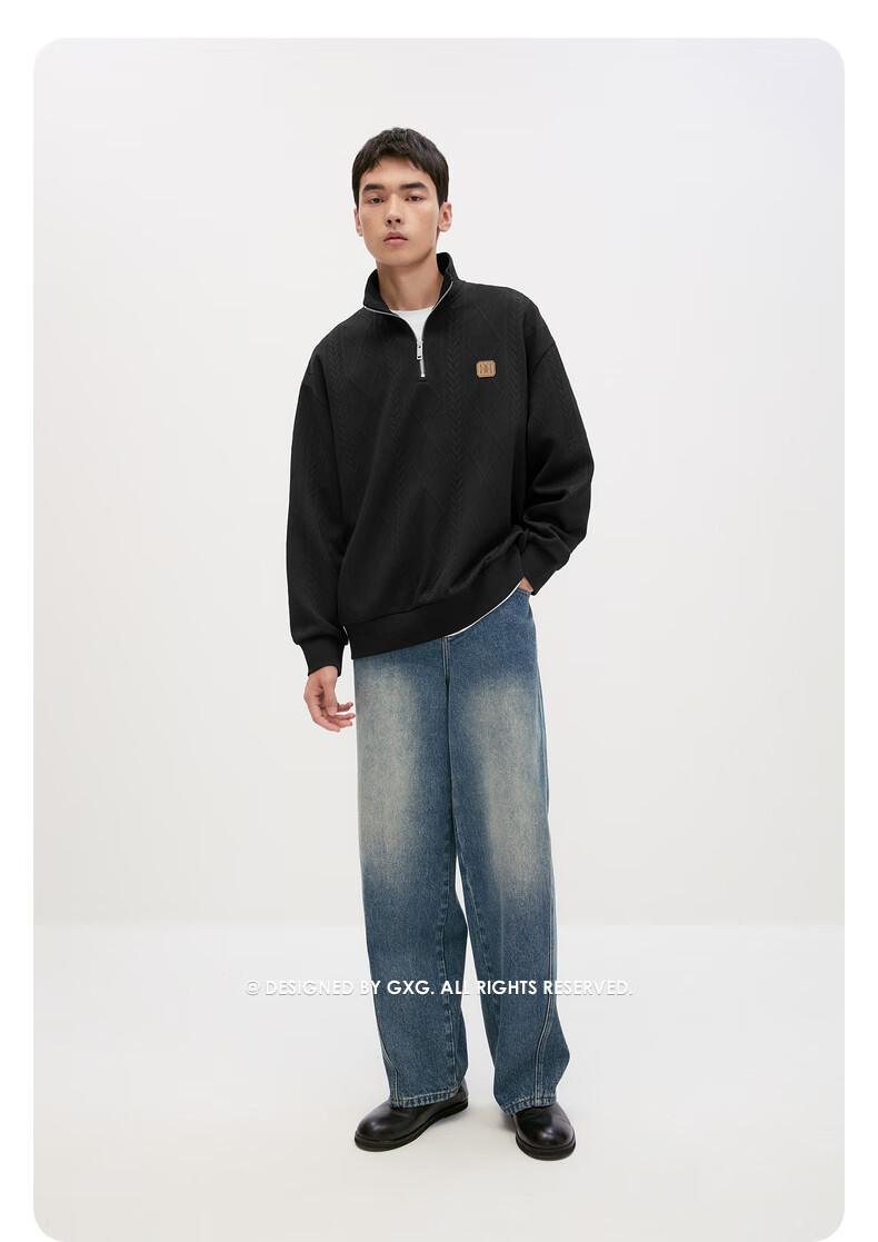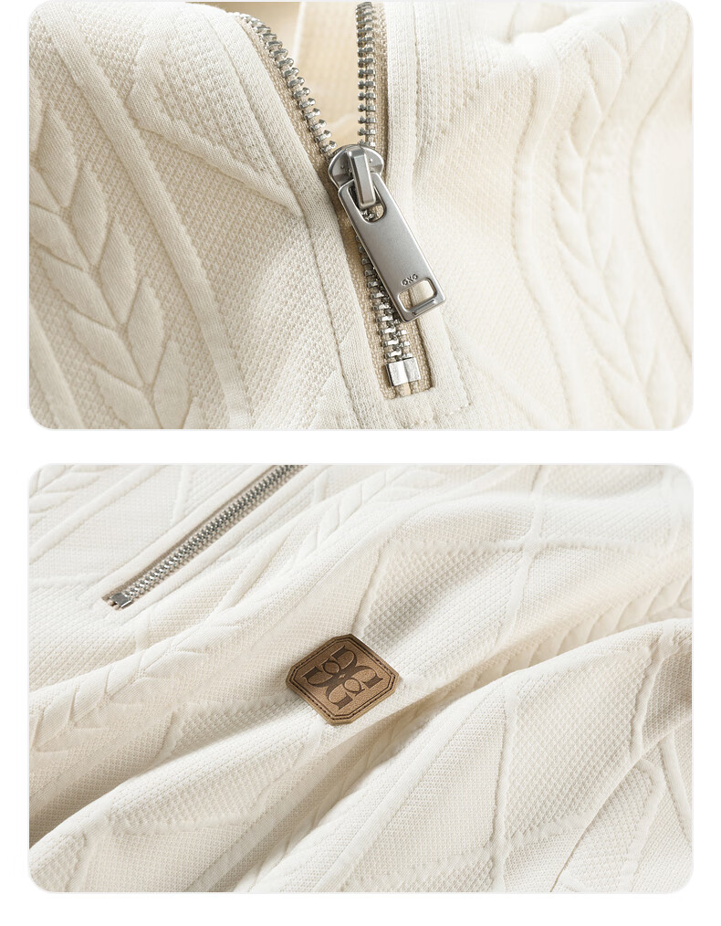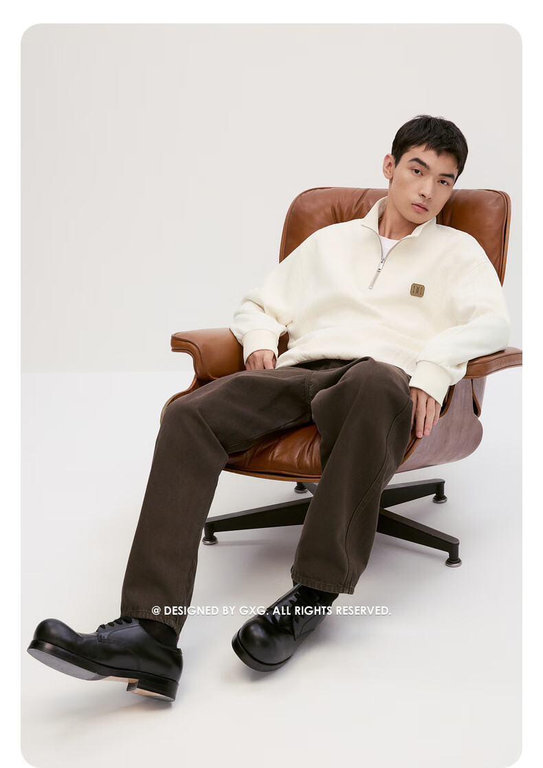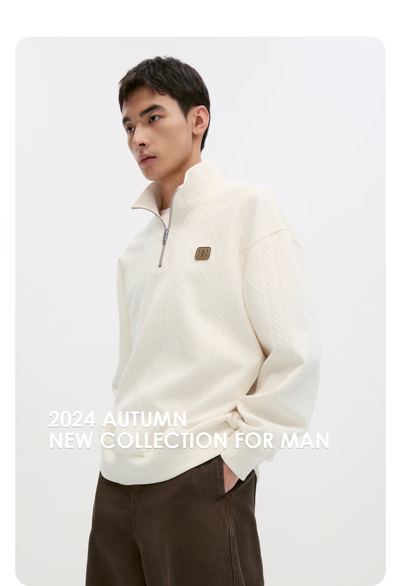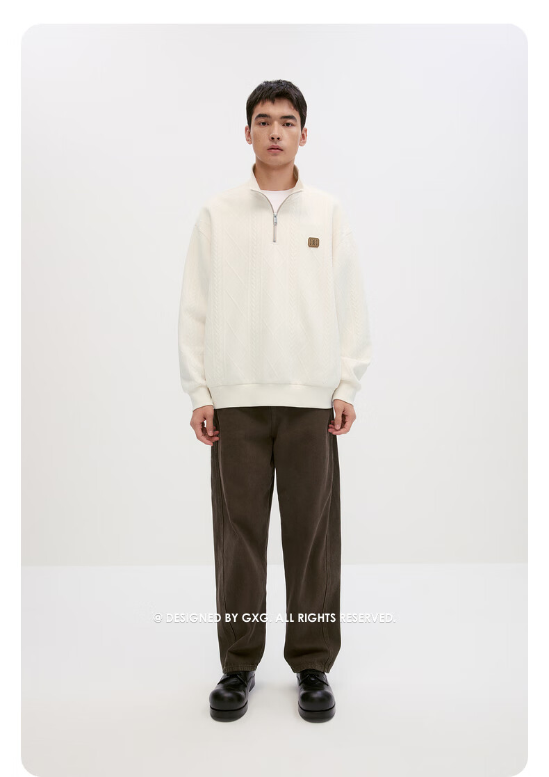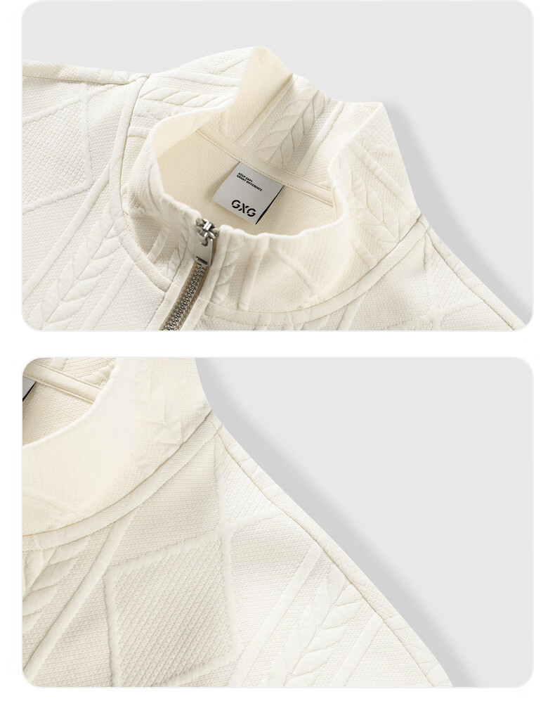 GXG男装复古压花精致翻领卫衣 米色 175/L