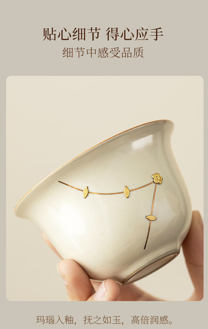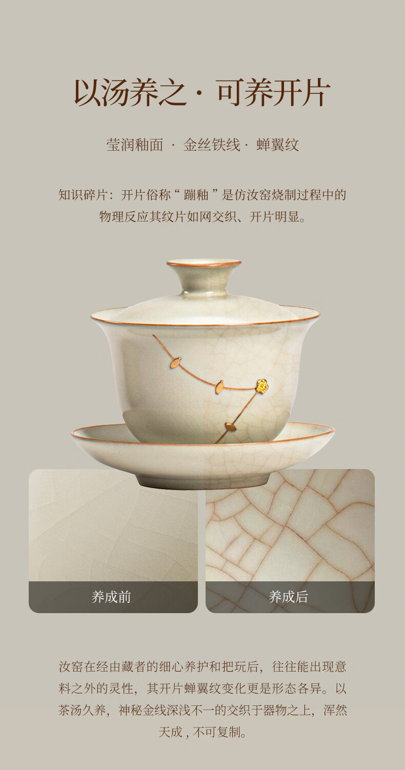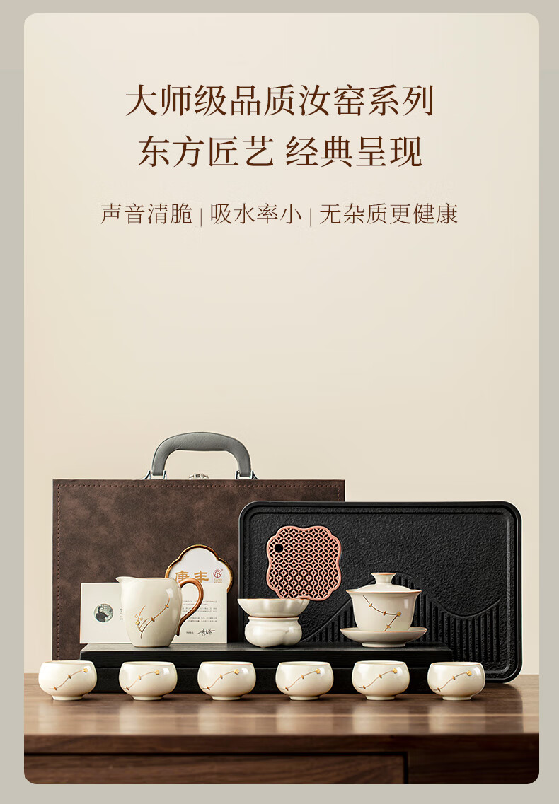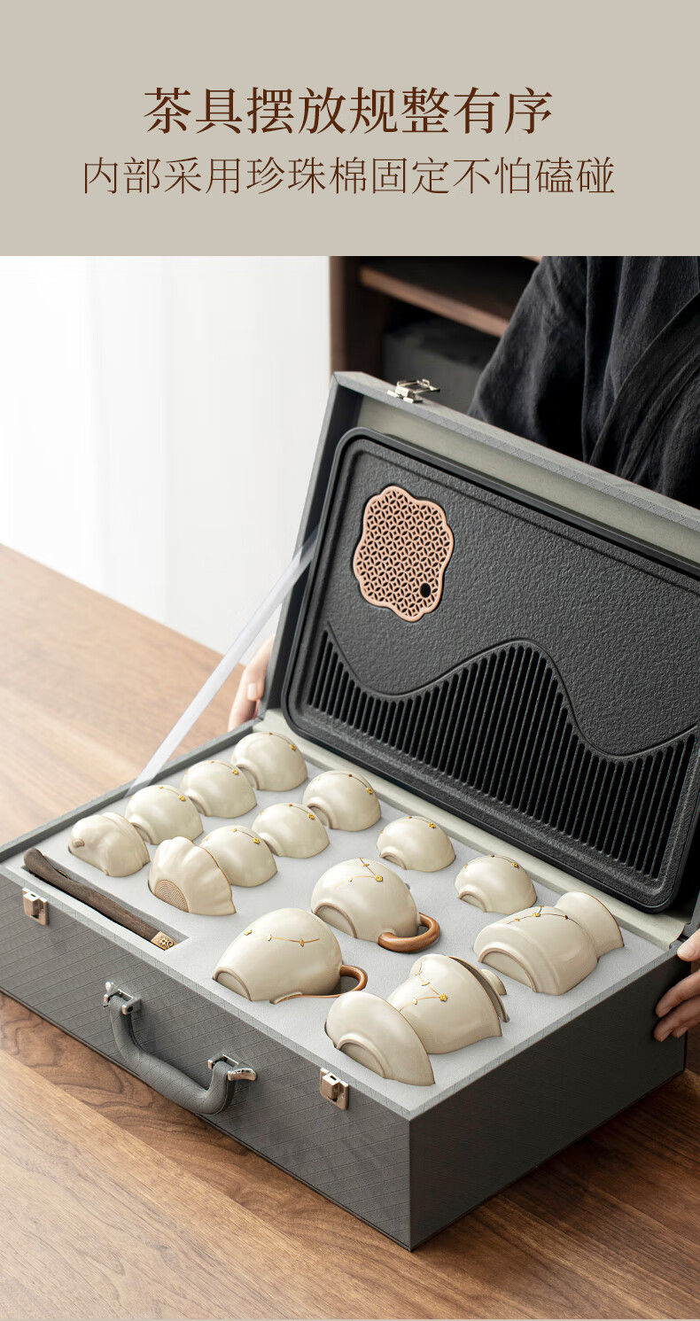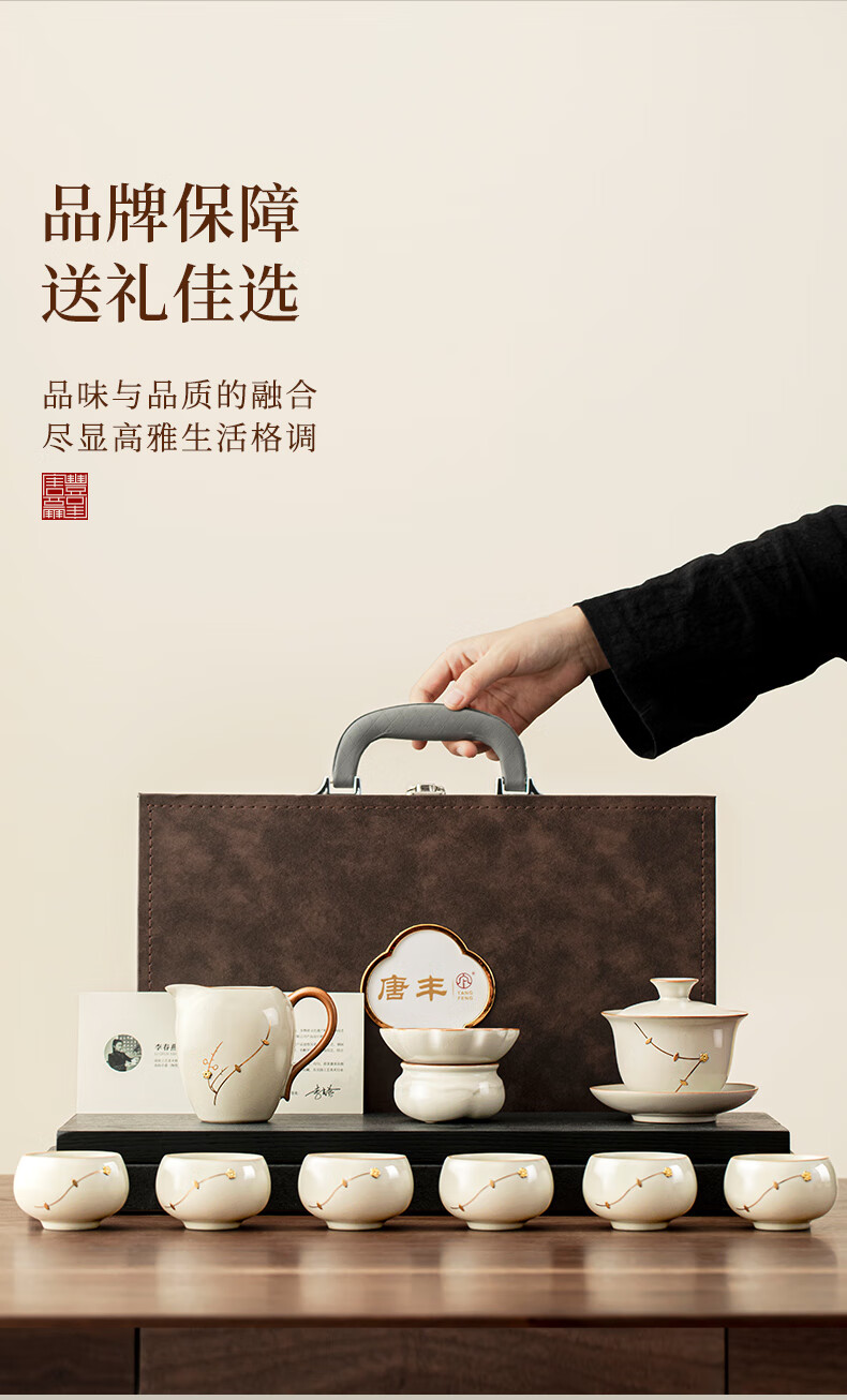 唐丰锔钉汝窑茶具套装整套泡茶器礼盒装送长辈客户领导爸爸生日礼物 观云+锔钉罗汉素语西施壶13头(棕皮盒)+李春燕收藏证书