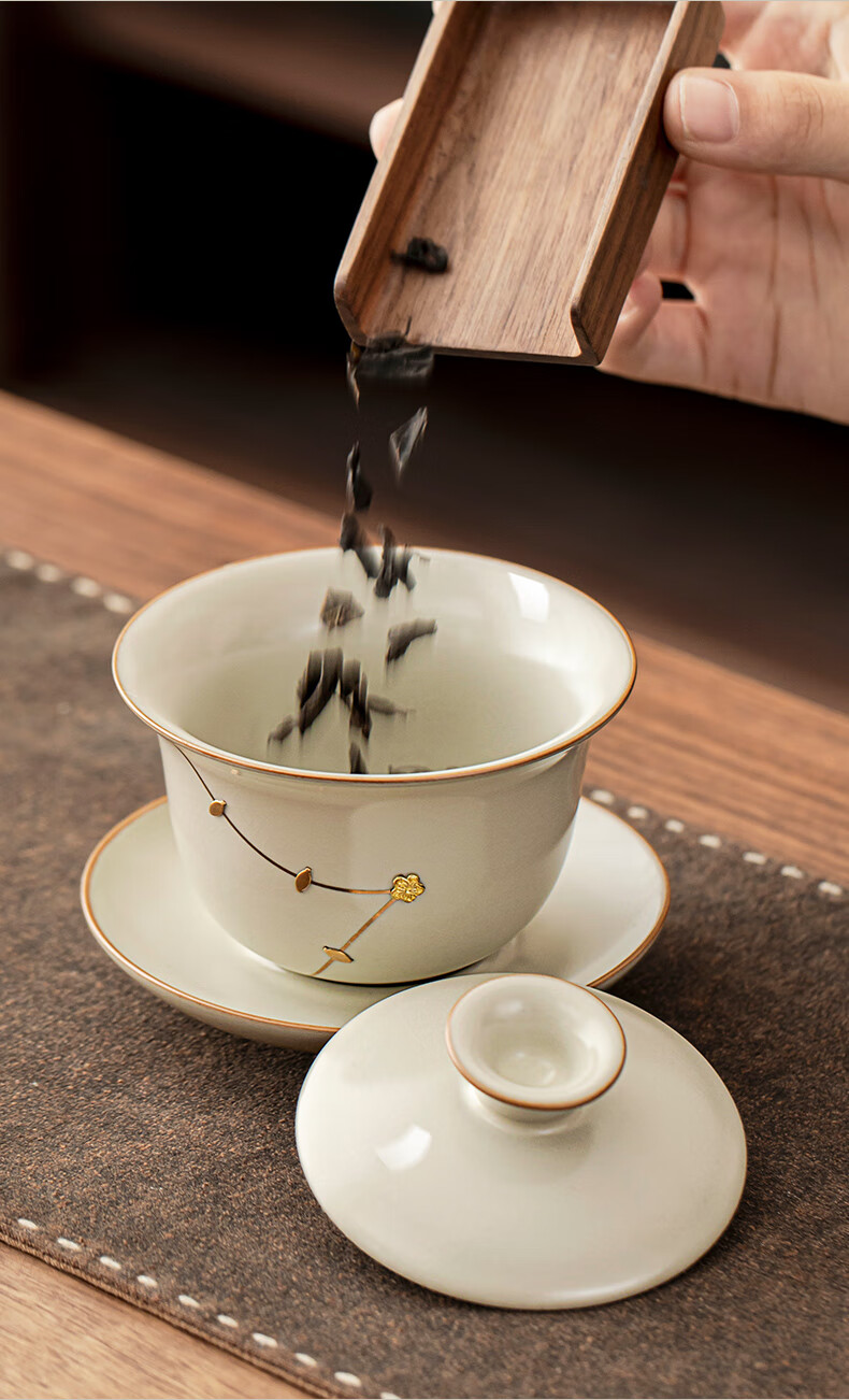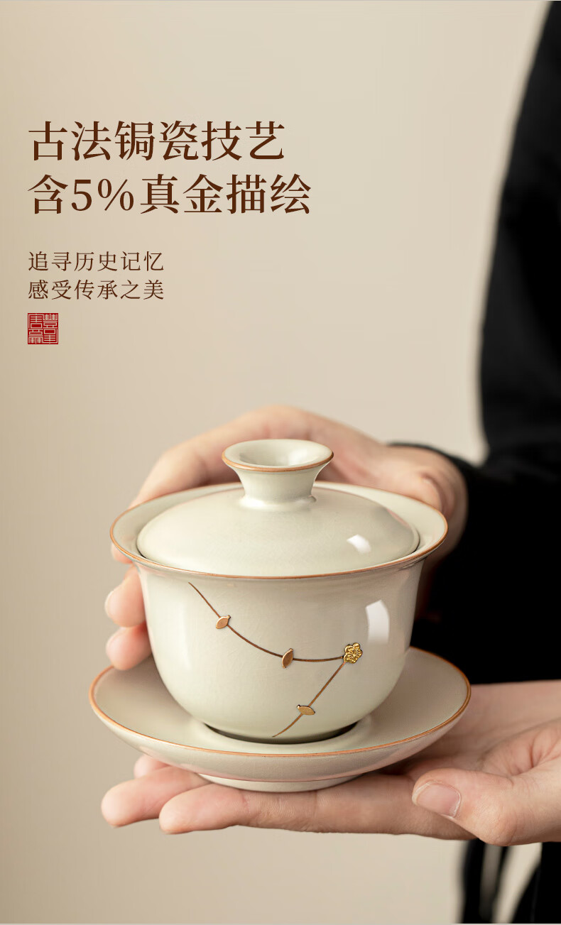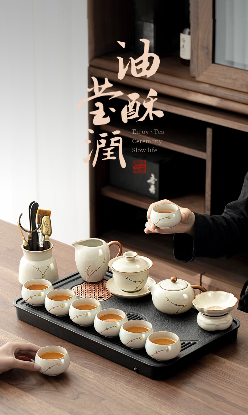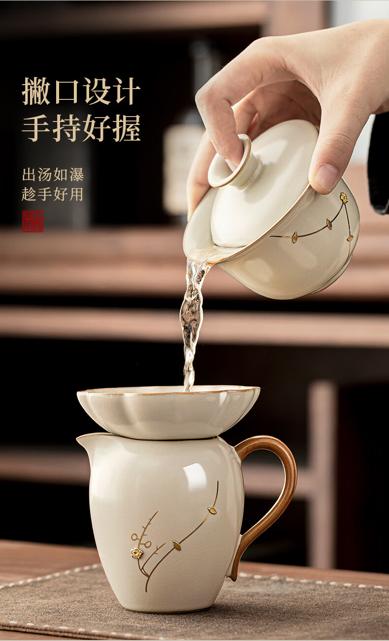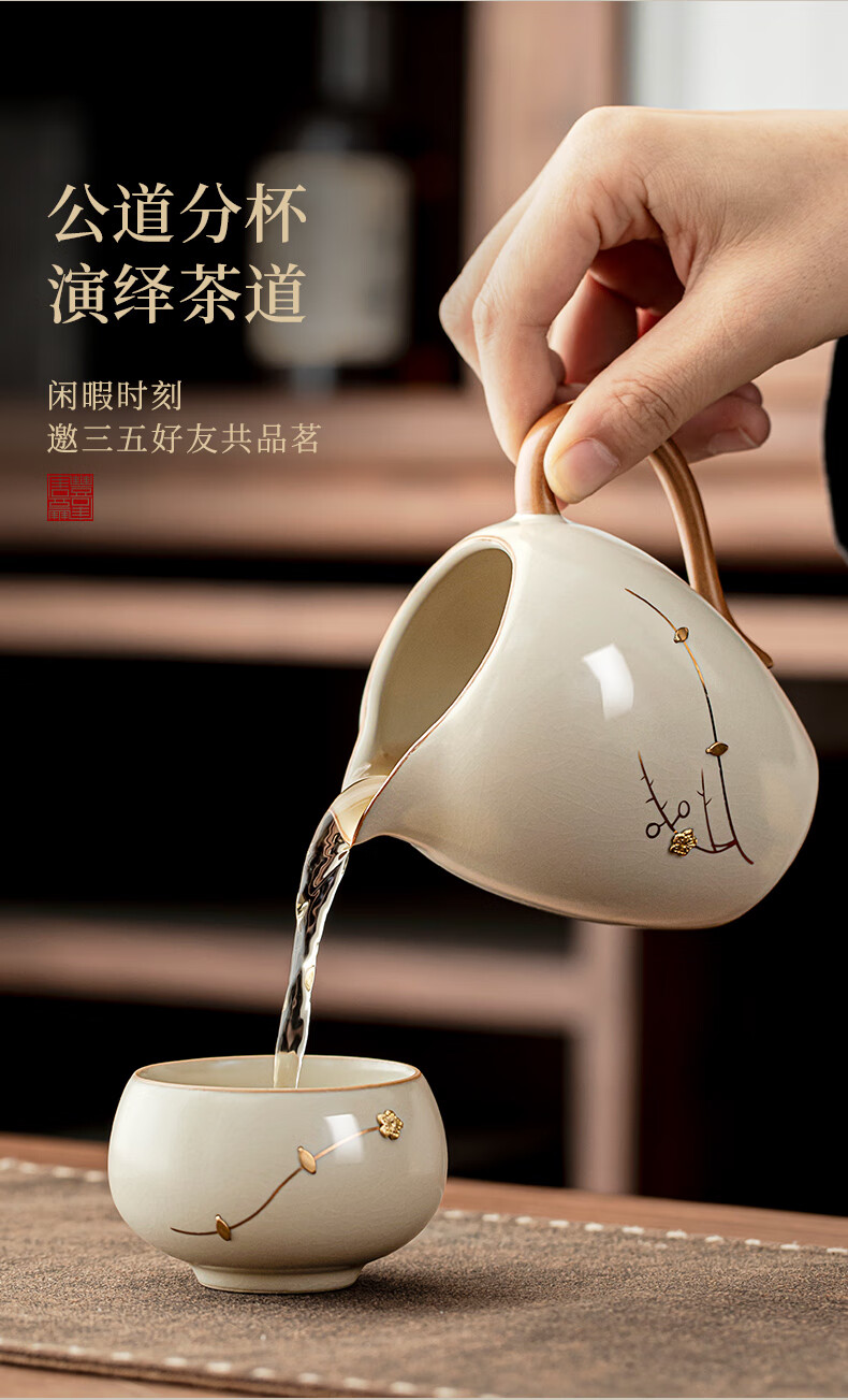 唐丰锔钉汝窑茶具套装整套泡茶器礼盒装送长辈客户领导爸爸生日礼物 观云+锔钉罗汉素语西施壶13头(棕皮盒)+李春燕收藏证书
