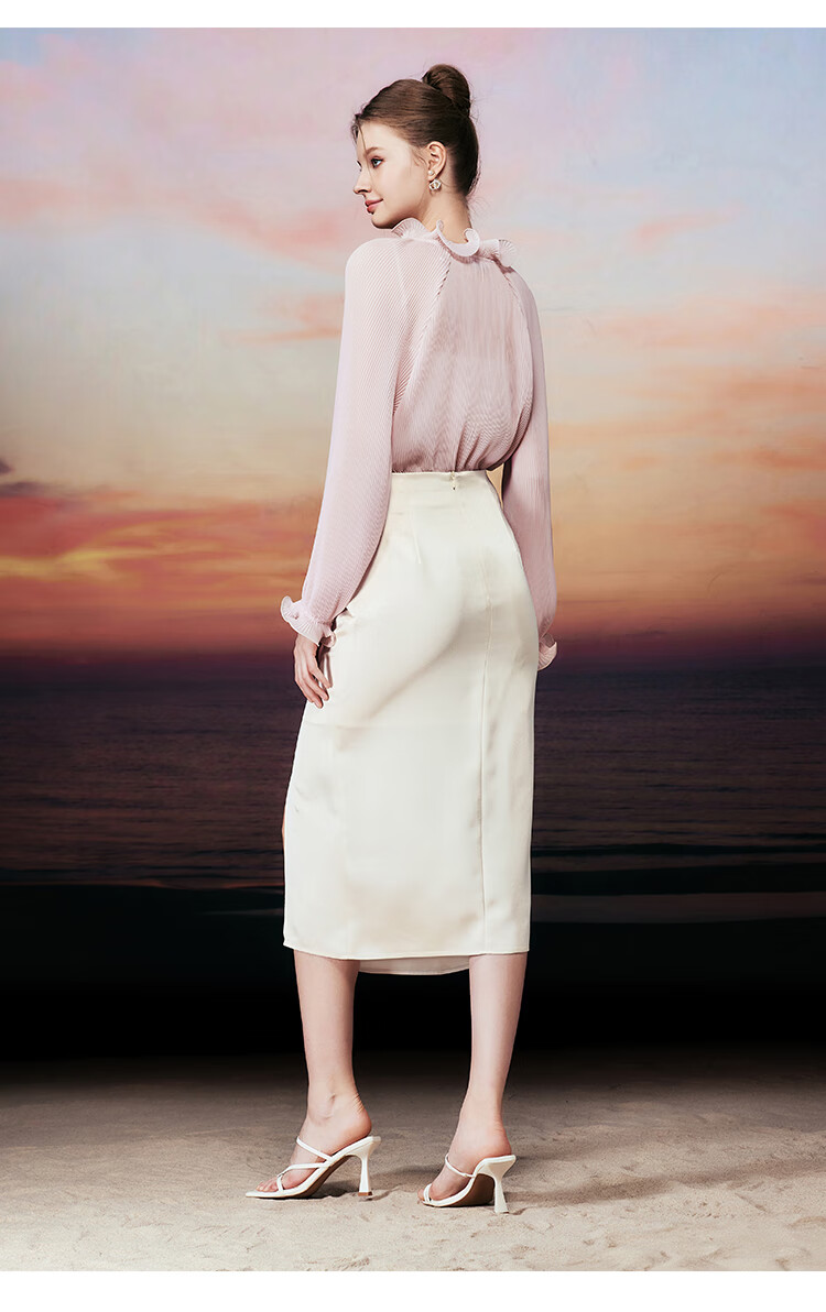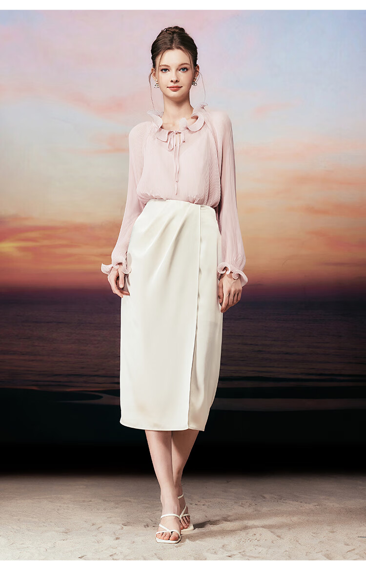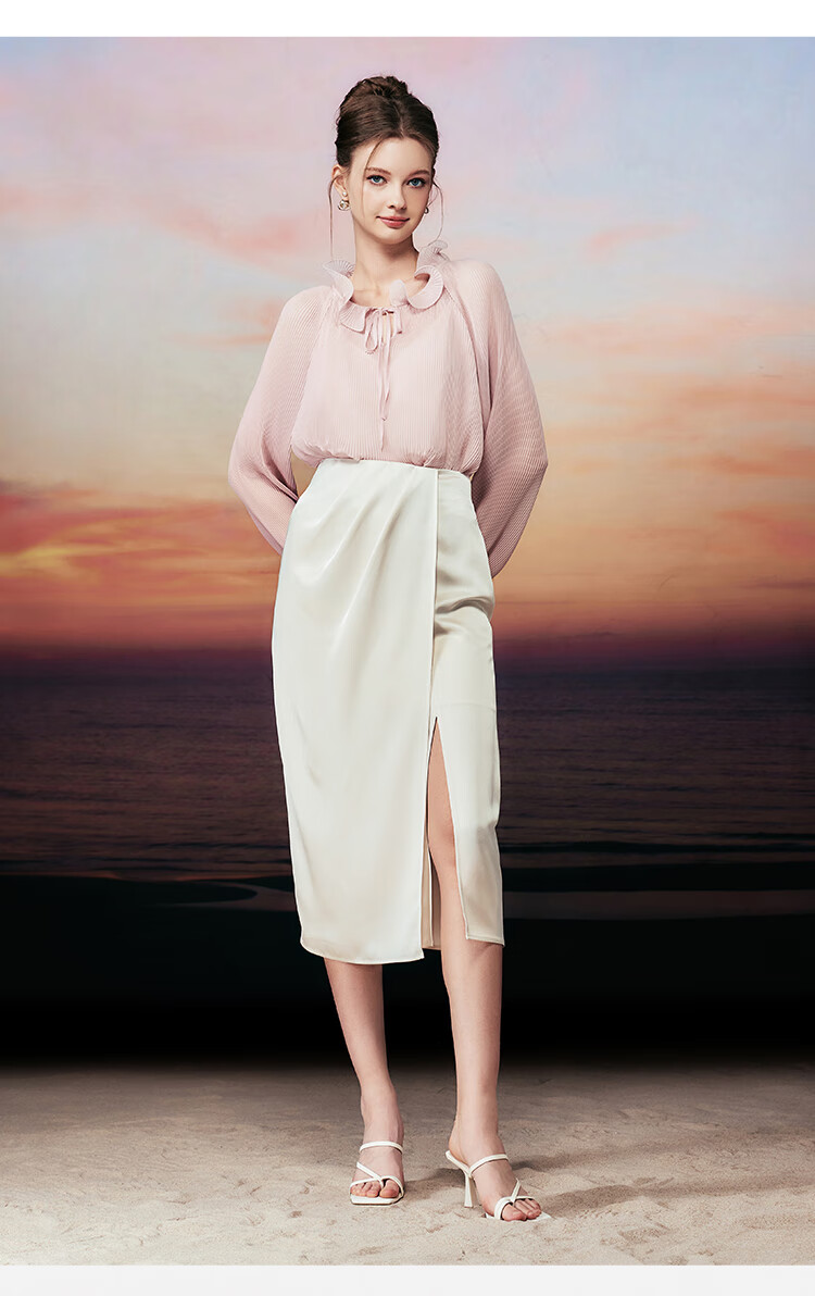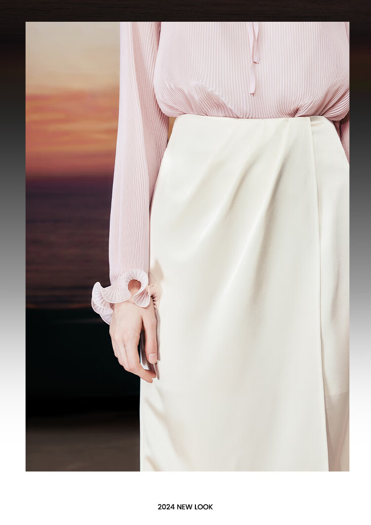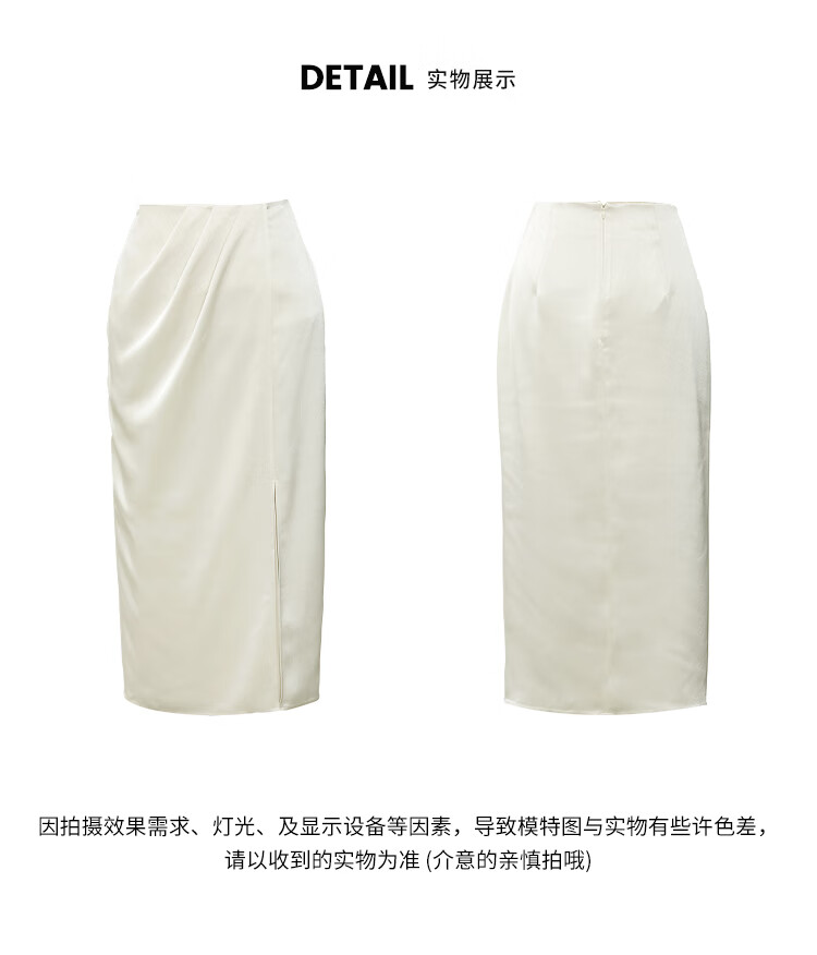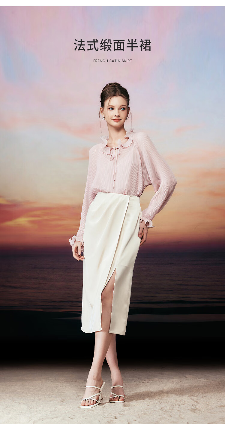 糖力【商场同款】夏季新款杏色法式温柔风缎面半身裙女中长款 杏色 常规 S