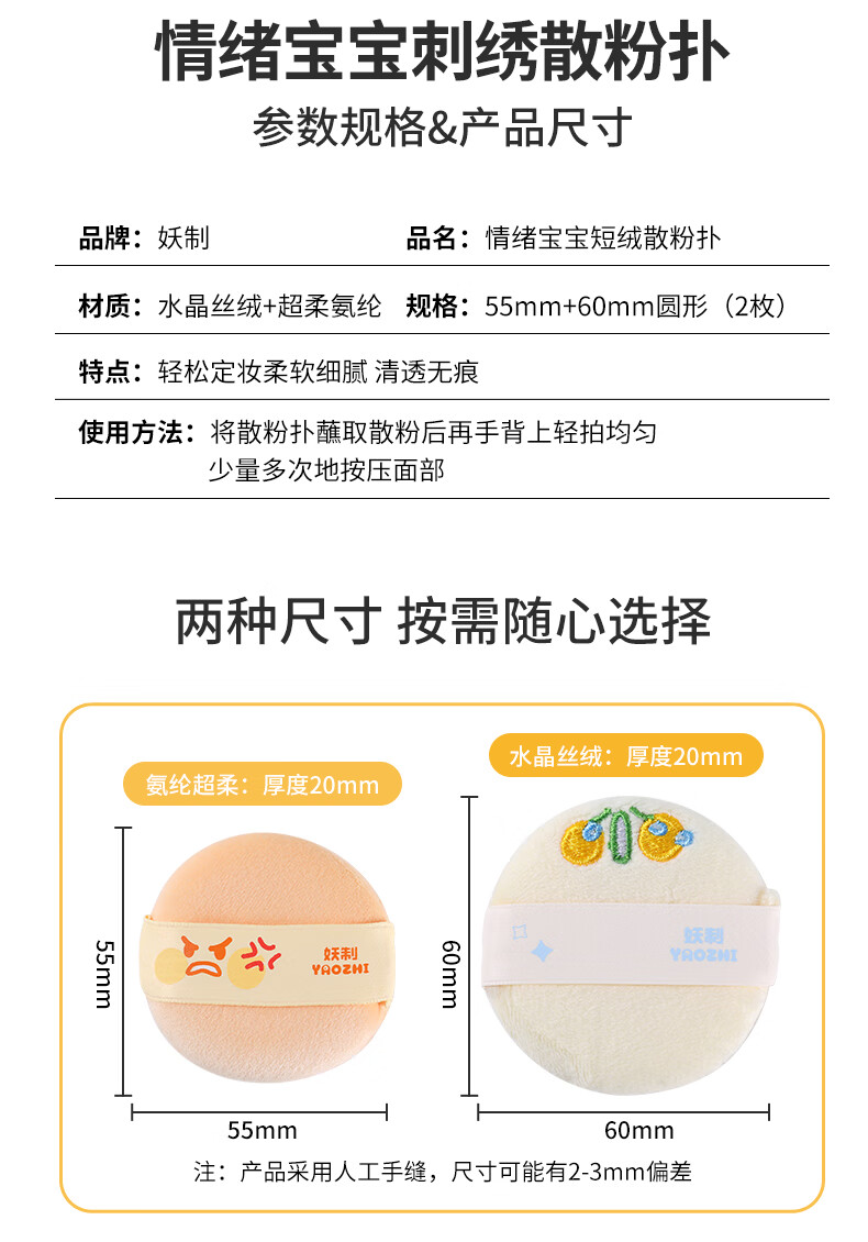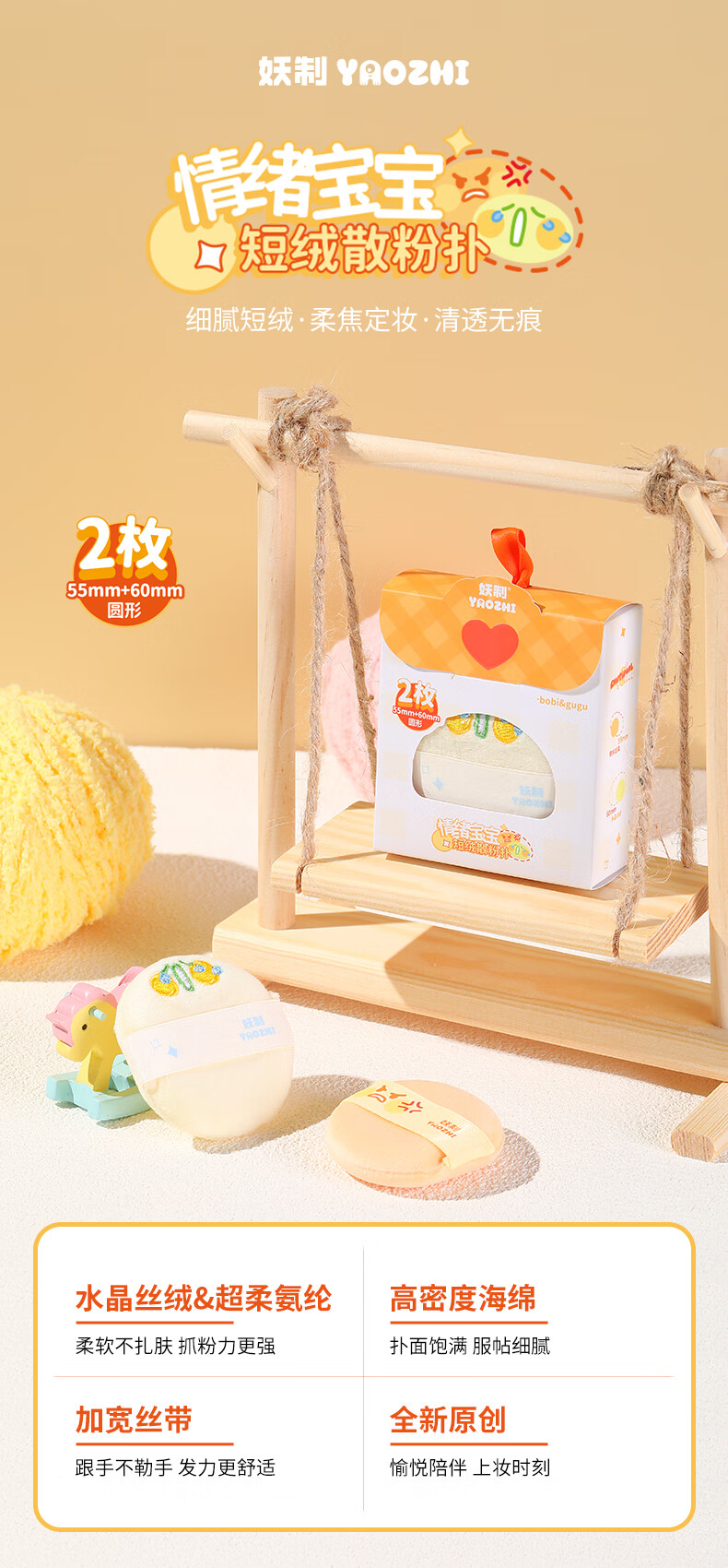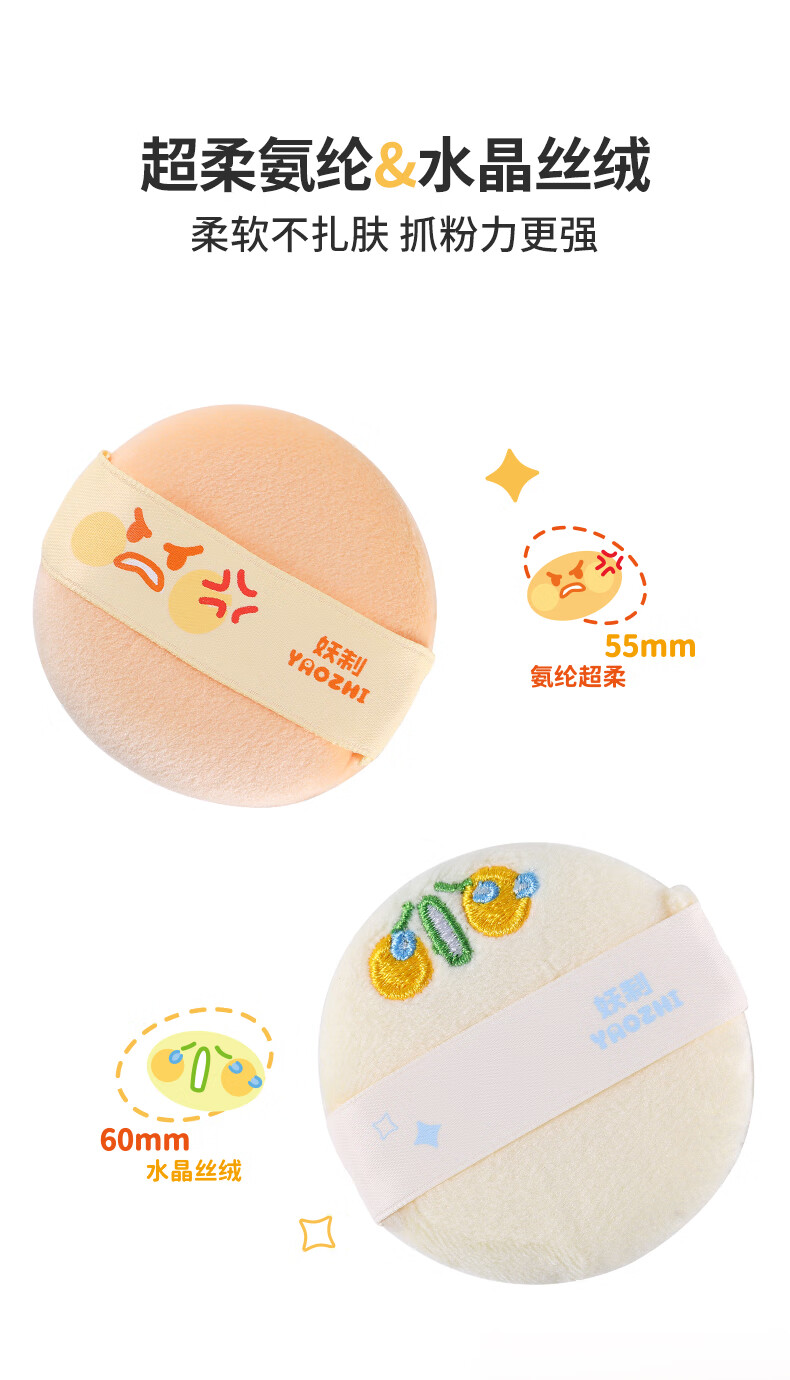 妖制(Yaozhi)粉扑散粉扑定妆蜜植绒粉气垫扑粉饼不吃蜜粉扑 【装】情绪宝宝短绒散粉扑 2枚