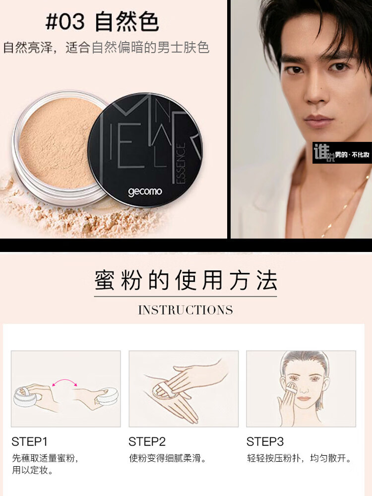 定妆散粉男生专用控油粉饼男士控油定妆持久自然简单修容遮瑕防水 浅肤色