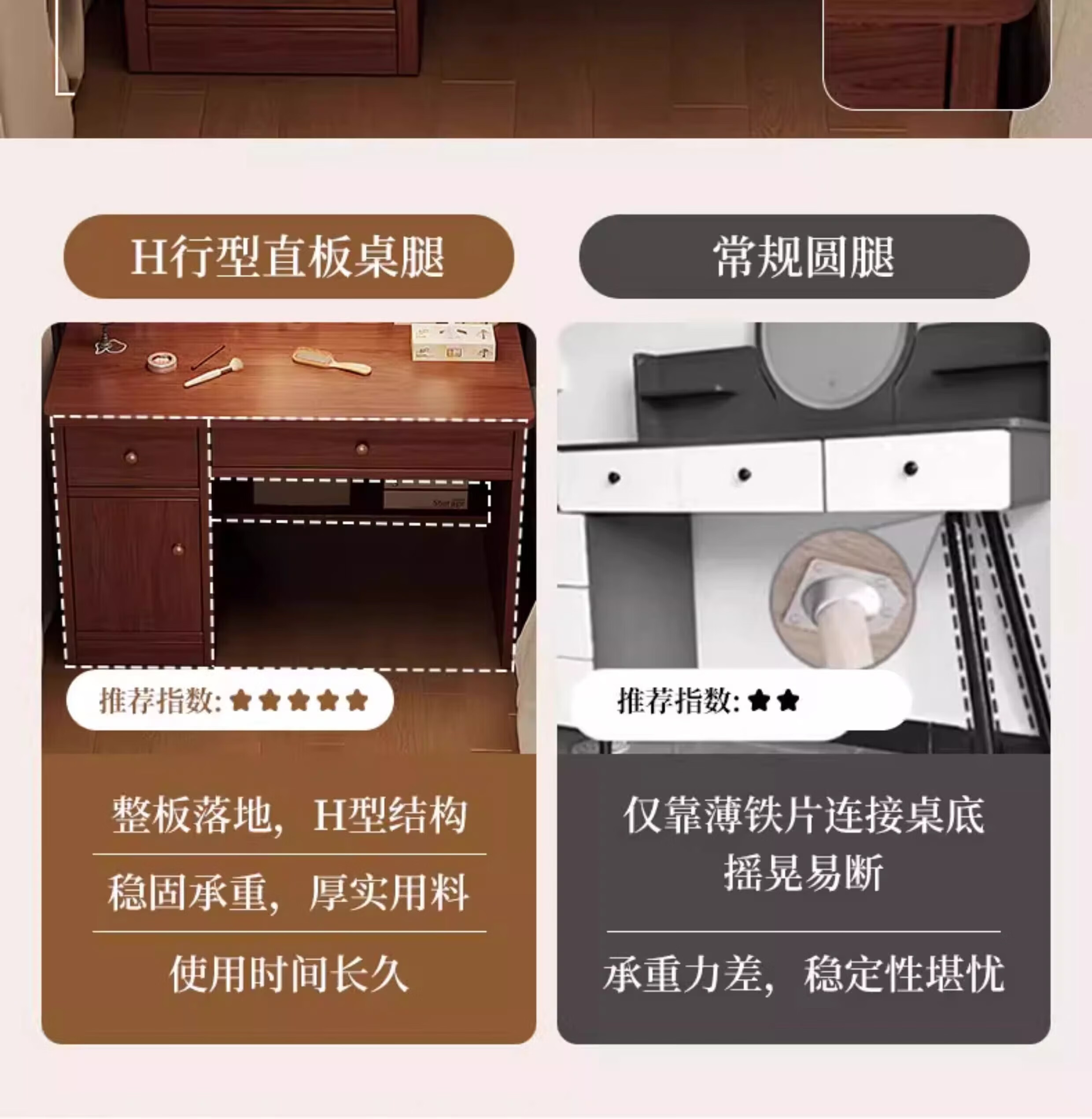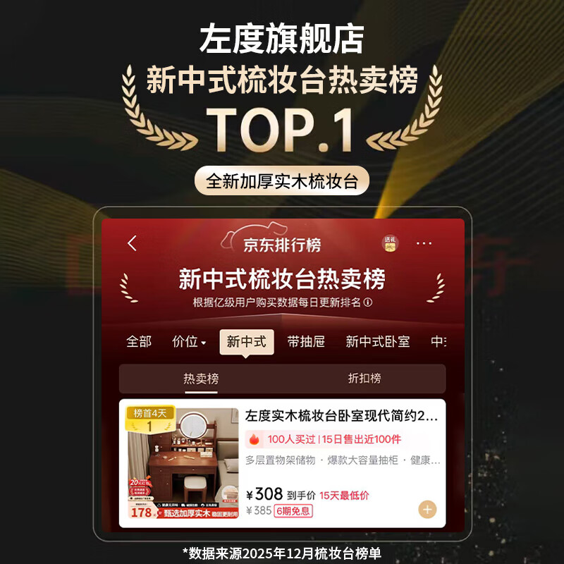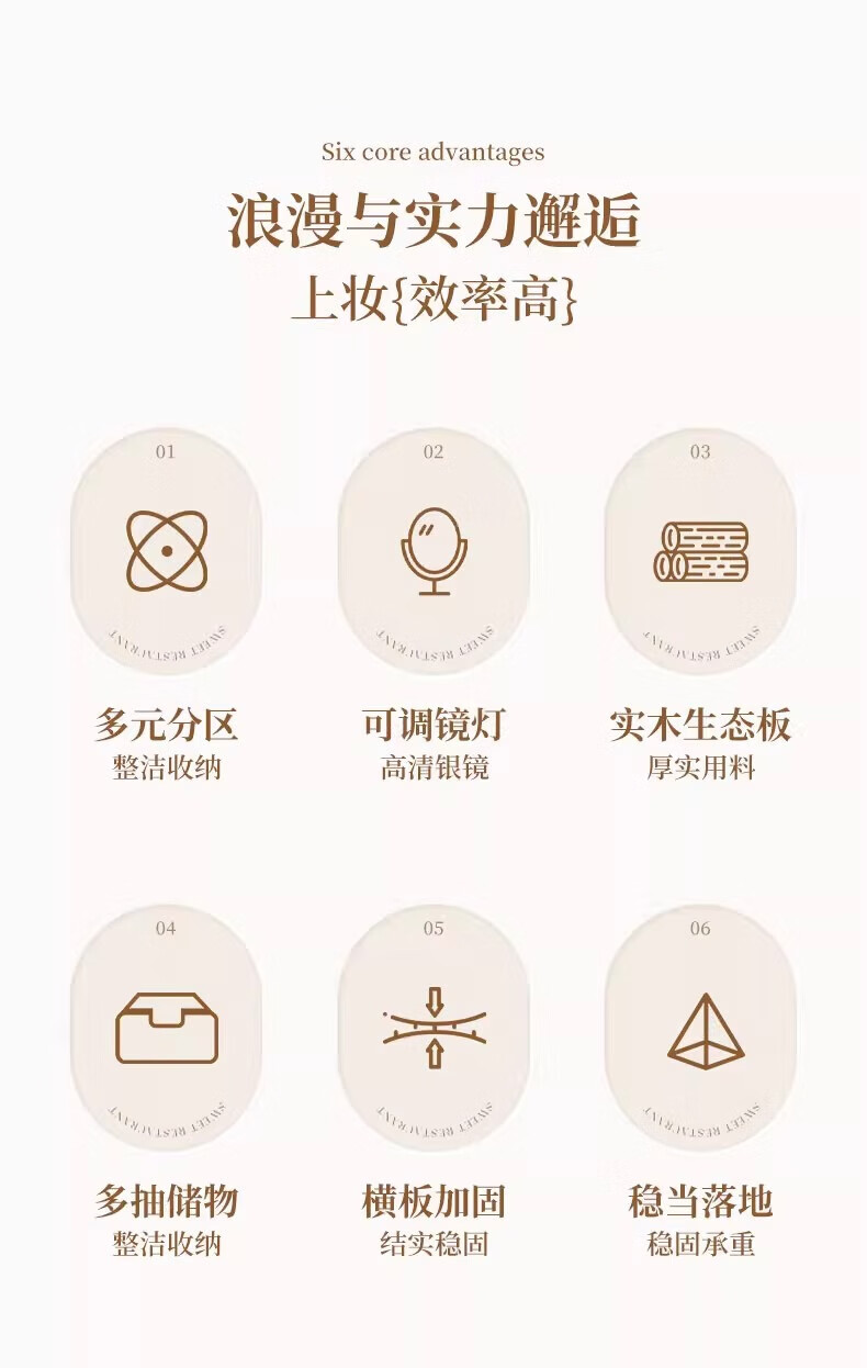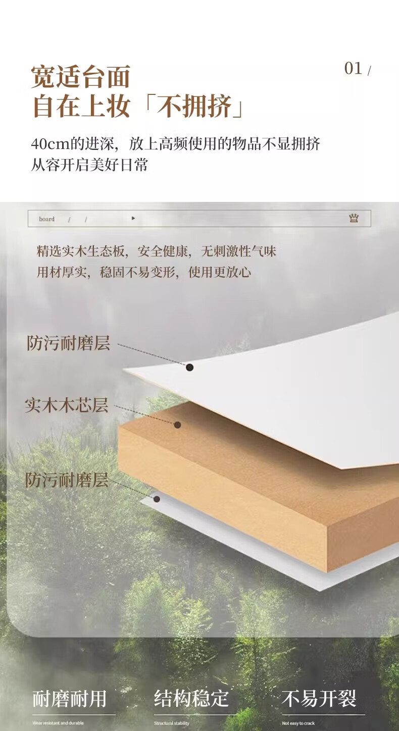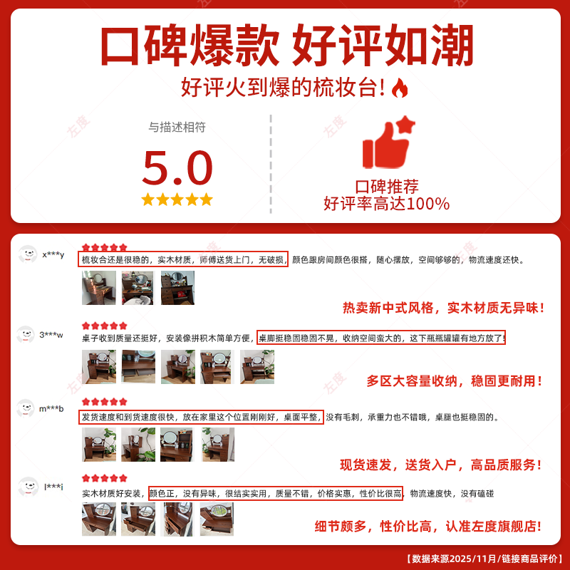 左度实木梳妆台卧室现代简约2025新款小户型斗柜一体轻奢高级感化妆桌 力荐【两抽三门+LED灯】深胡桃色80cm 【加厚实木】梳妆台