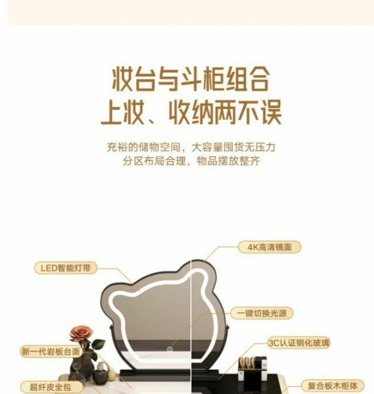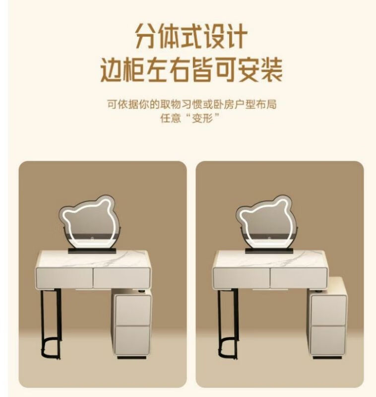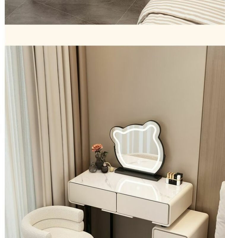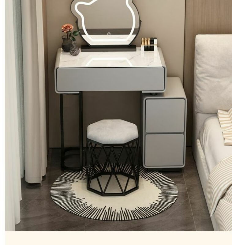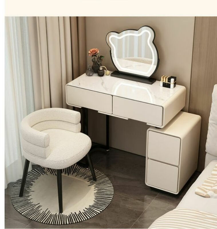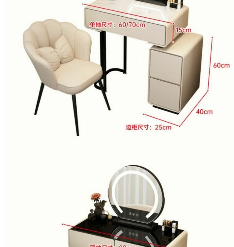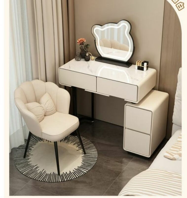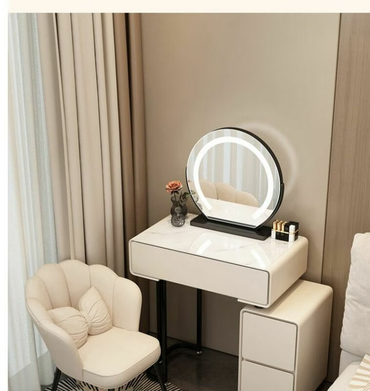 富禾岩板梳妆台床头斗柜一体化妆桌简约储物收纳小户型轻奢梳妆桌子 热销【蝴蝶椅+LED灯镜】岩板台面80cm桌 真岩板/厂家直销