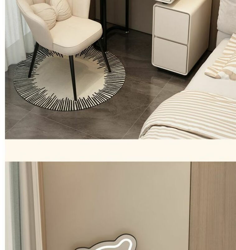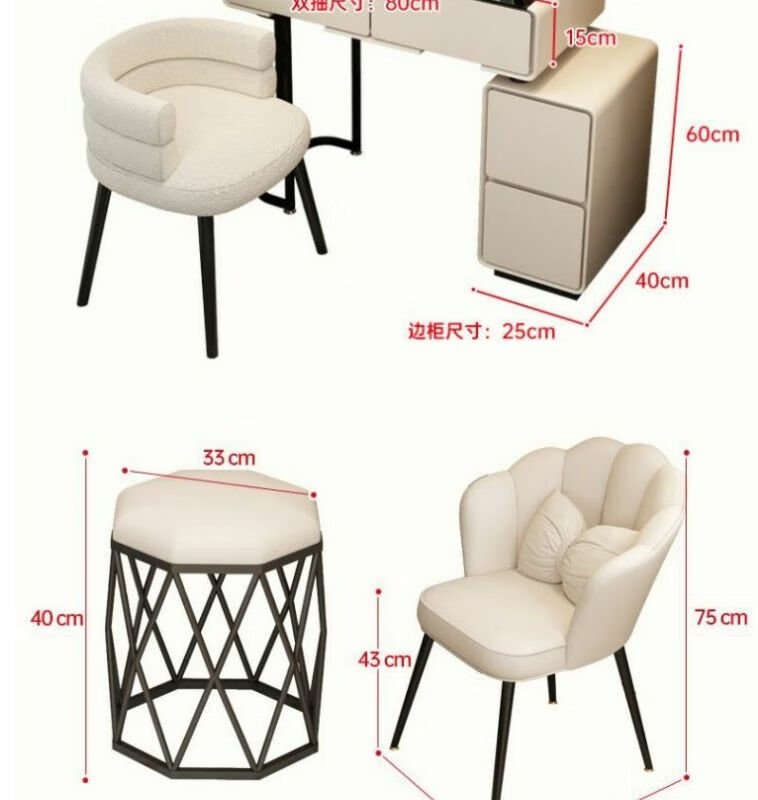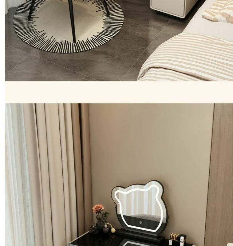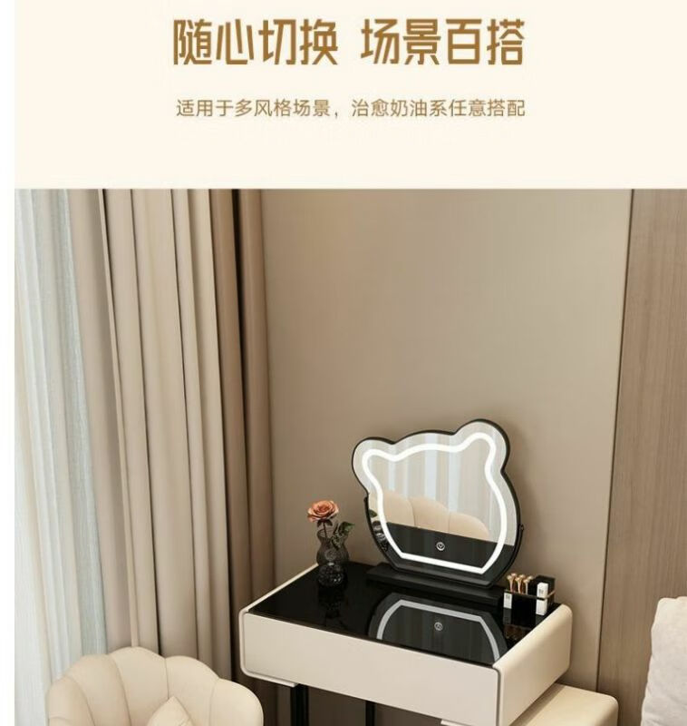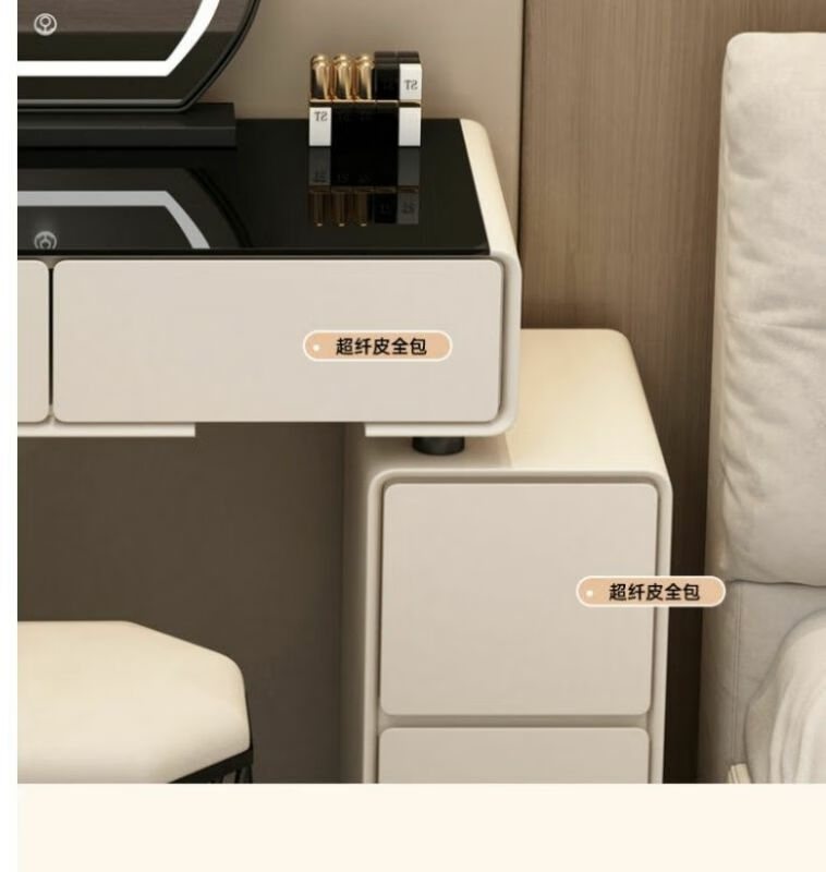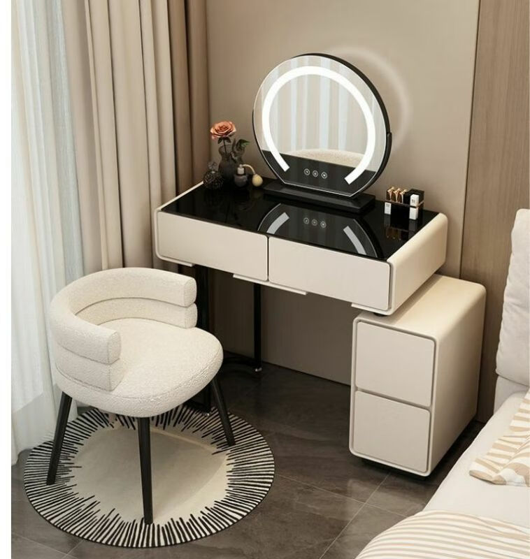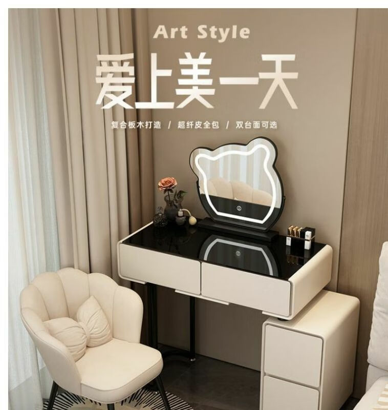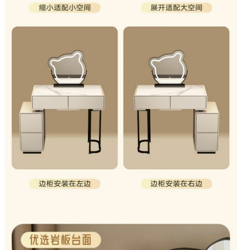 富禾岩板梳妆台床头斗柜一体化妆桌简约储物收纳小户型轻奢梳妆桌子 热销【蝴蝶椅+LED灯镜】岩板台面80cm桌 真岩板/厂家直销