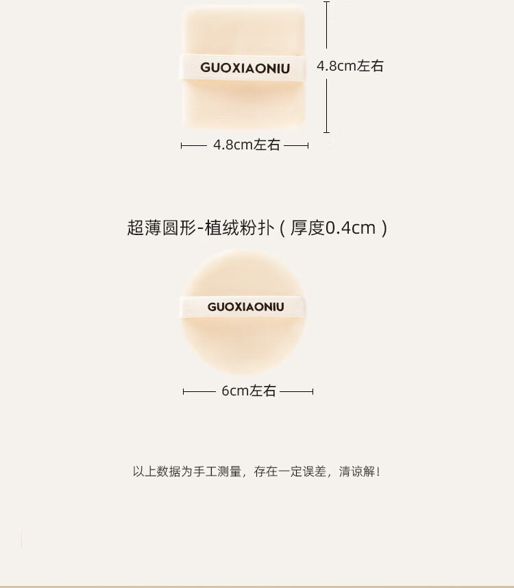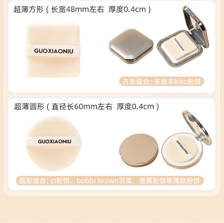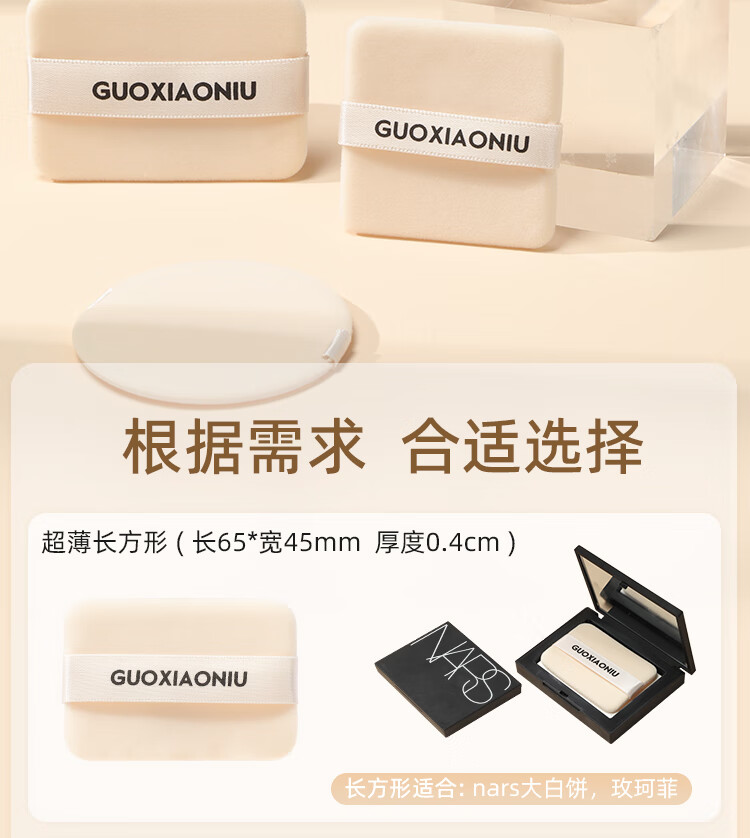 GUOXIAONIU郭小妞蜜粉饼盒替换双面植绒粉扑快速自然定妆散粉扑专用美妆工具 超薄植绒粉扑 5枚 长方形