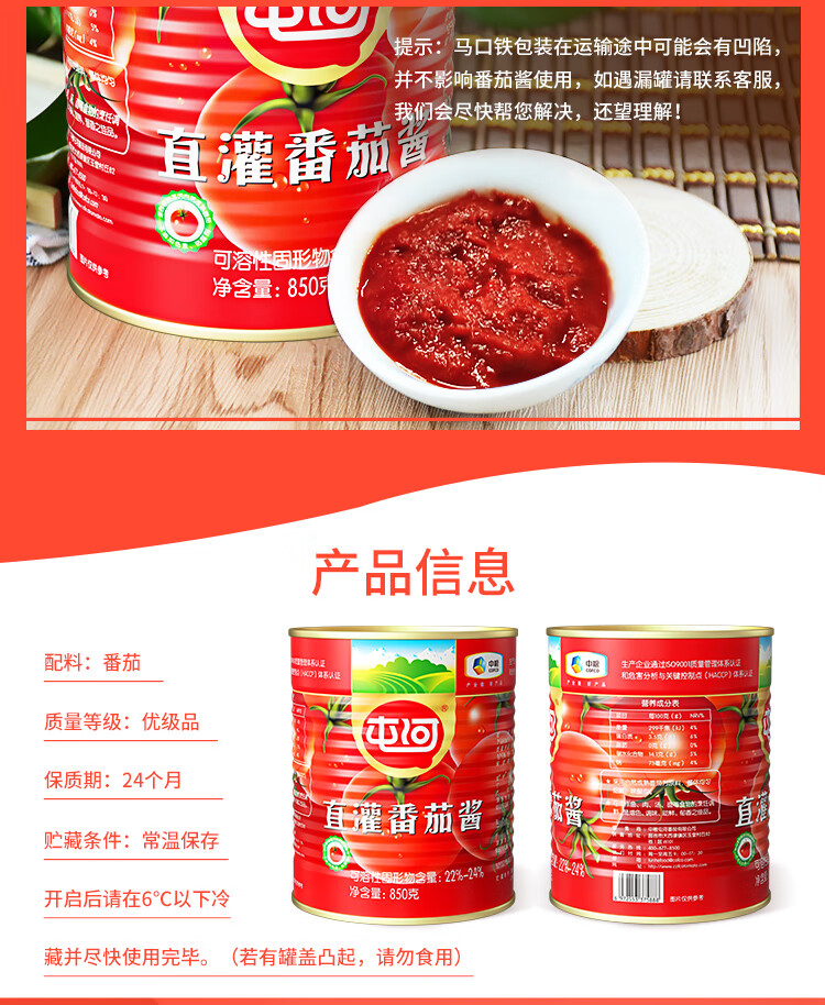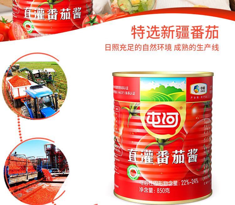 屯河直灌番茄酱 储备罐头 新疆内蒙古番茄膏意大利面酱 850g 中粮出品