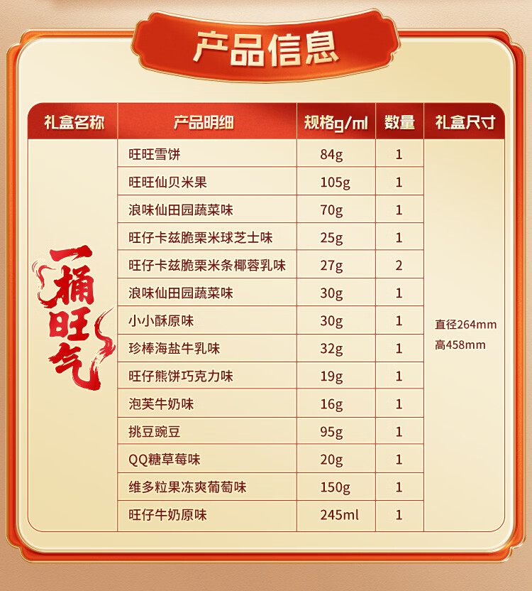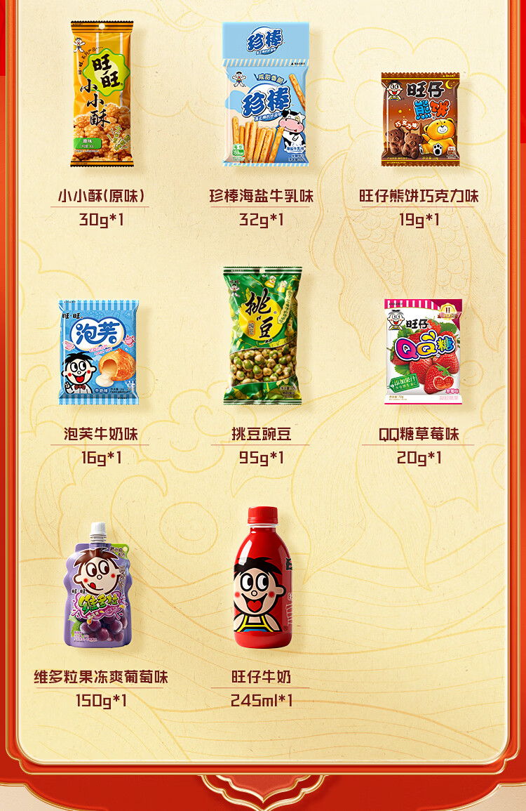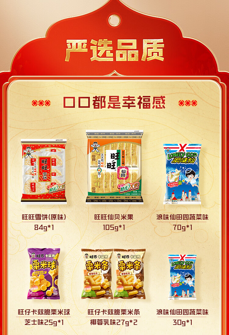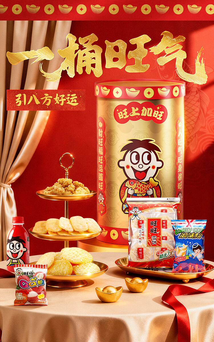 旺旺大礼包新年旺旺薯片零食礼包节日春节惊喜礼物礼品 旺旺招财进宝醒狮大礼盒1341g
