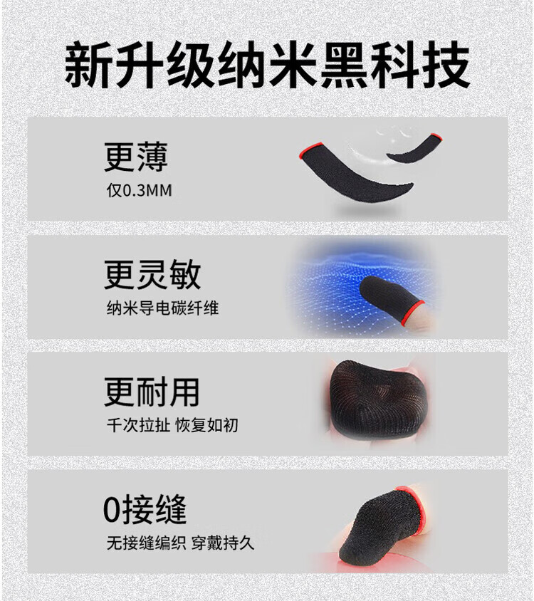 游戏指套电竞吃鸡手指套防汗冰丝薄防滑拇指套王者打手游 国潮定制款【冰丝导纤维】4只装 【配收纳盒】
