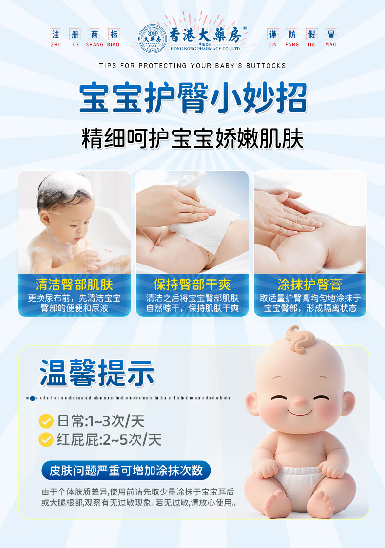 香港大药房有限公司鞣酸抑菌软膏婴儿红屁股护臀膏新生儿婴儿防宝宝红屁股专用修复膏