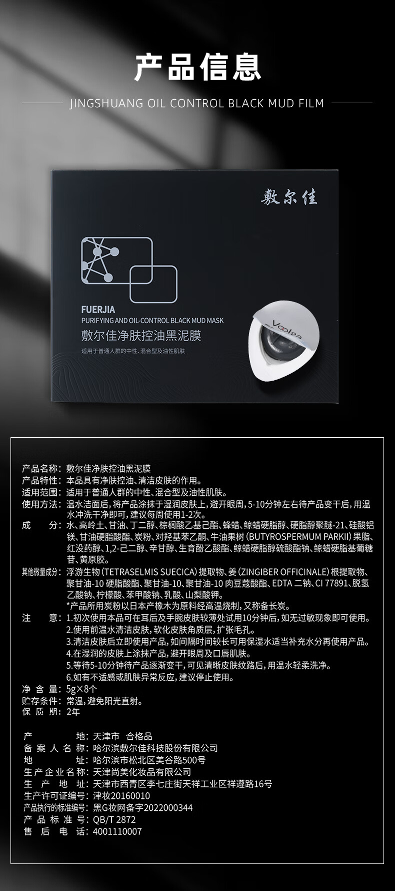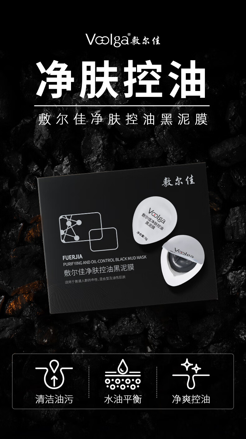 敷尔佳【成毅同款】净爽控油黑泥膜涂抹式面膜 深层控油清洁 5g*8颗/盒