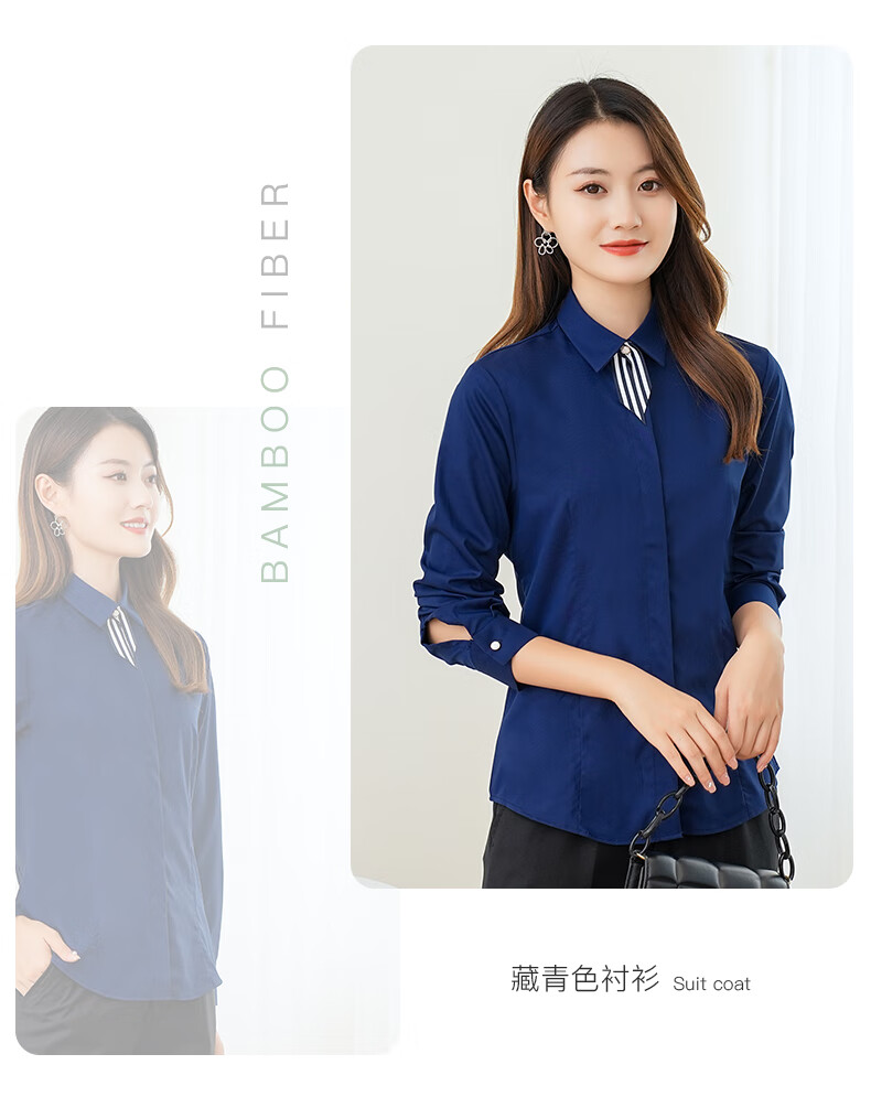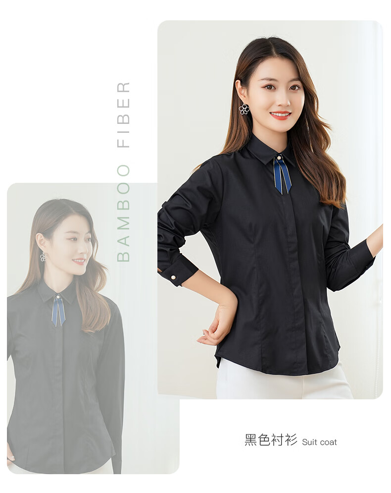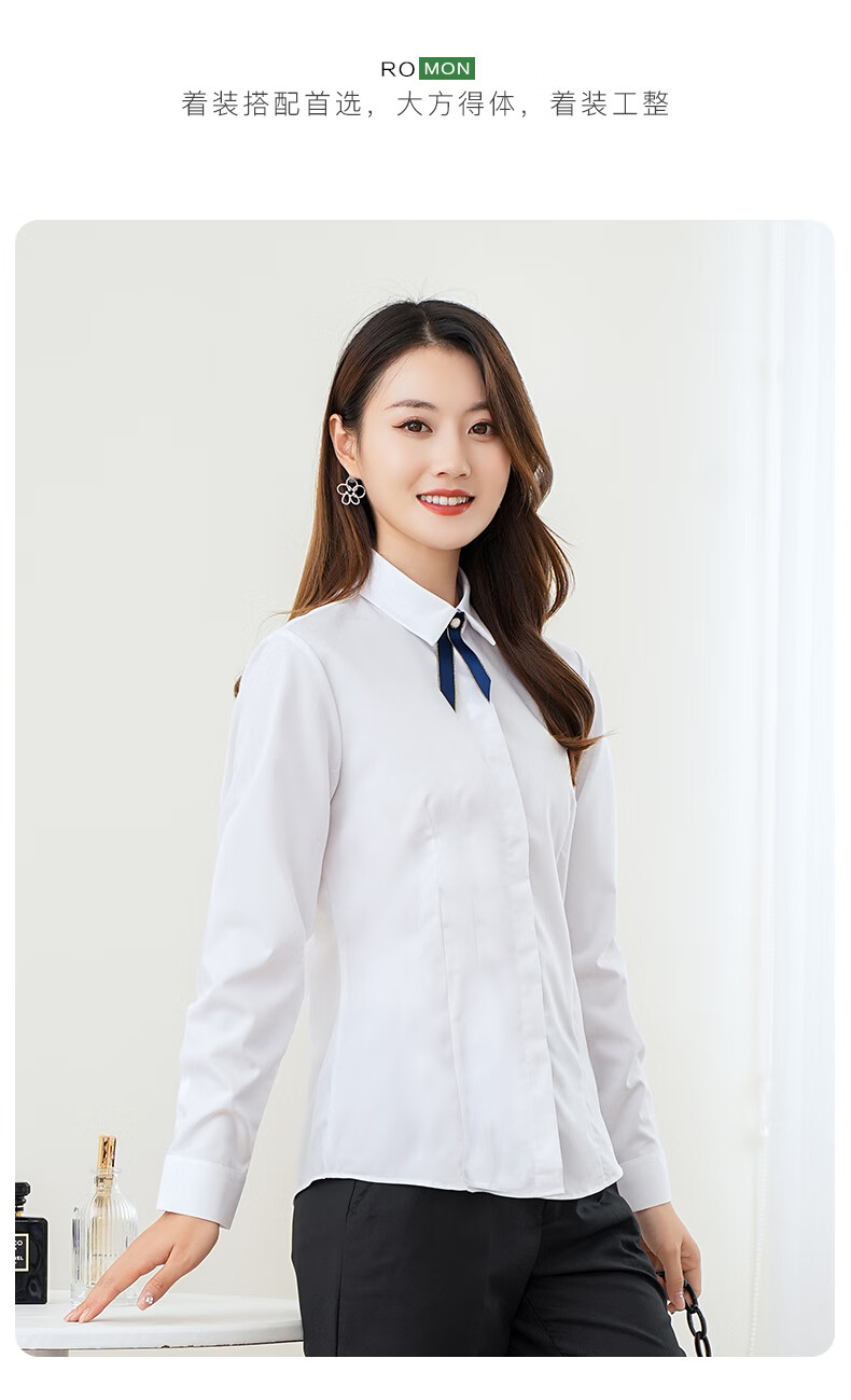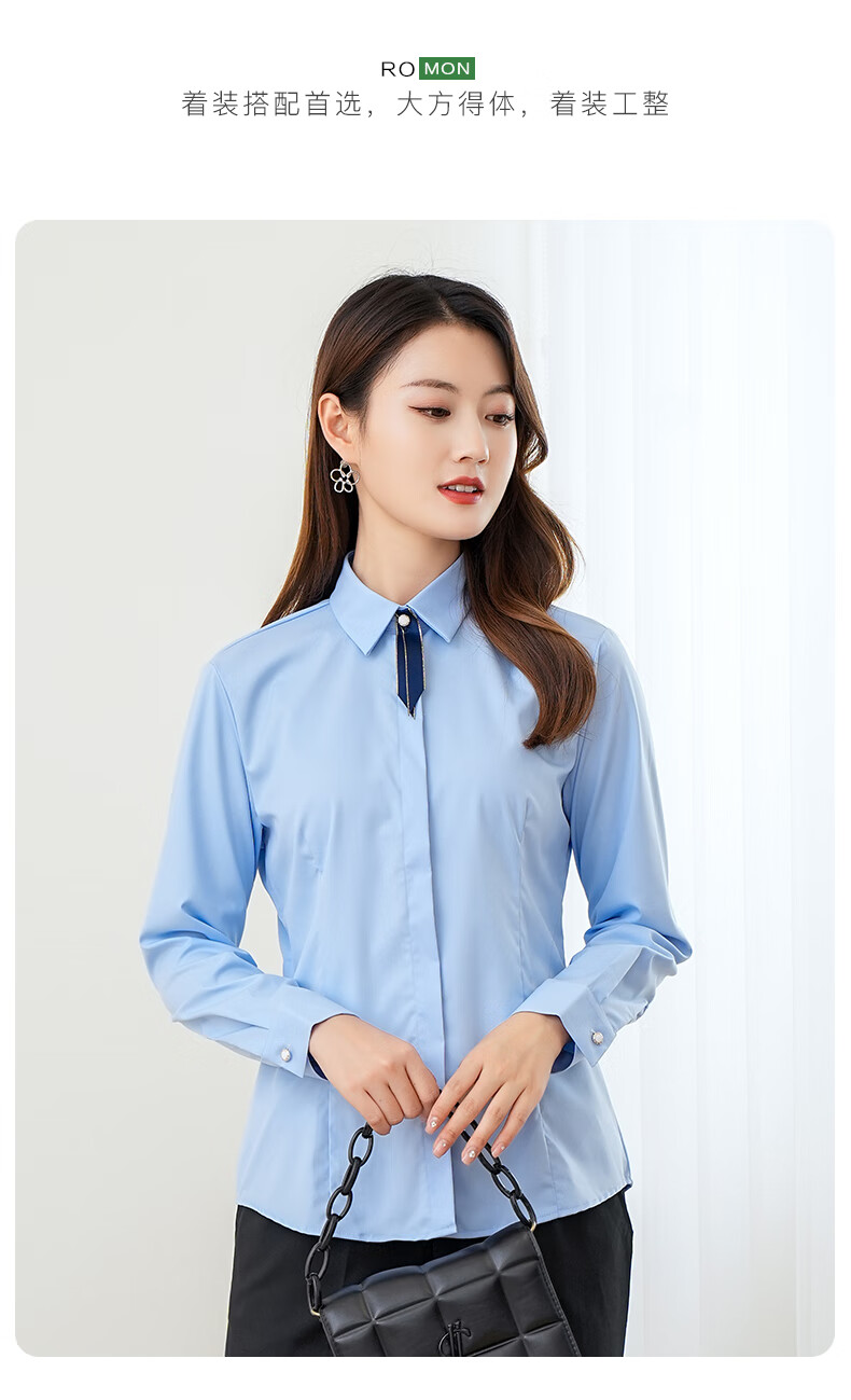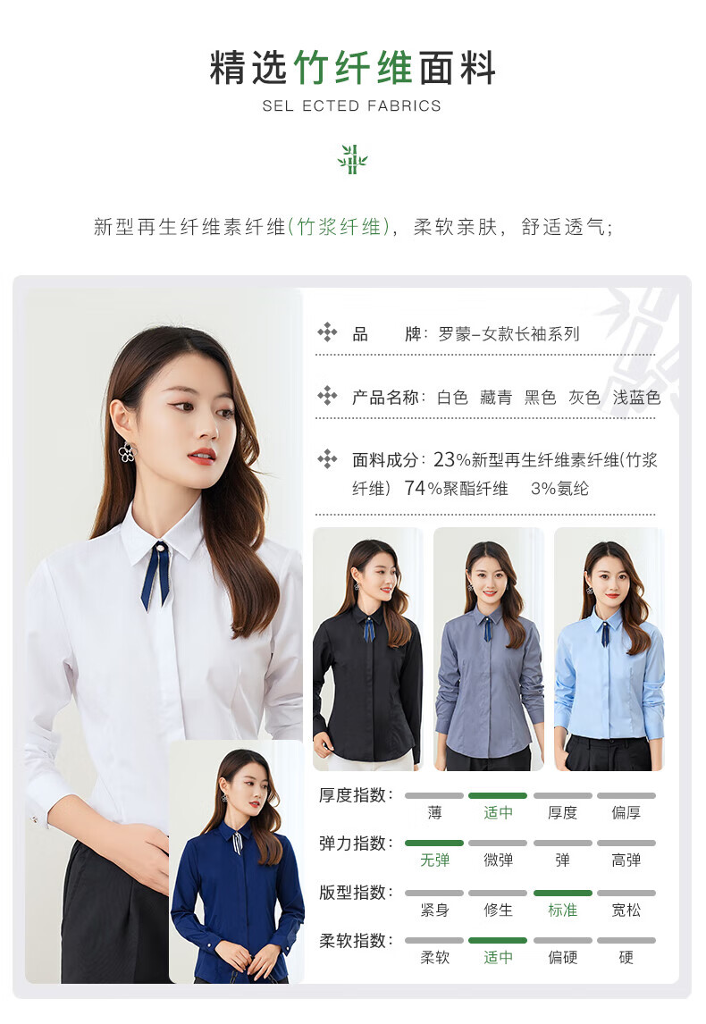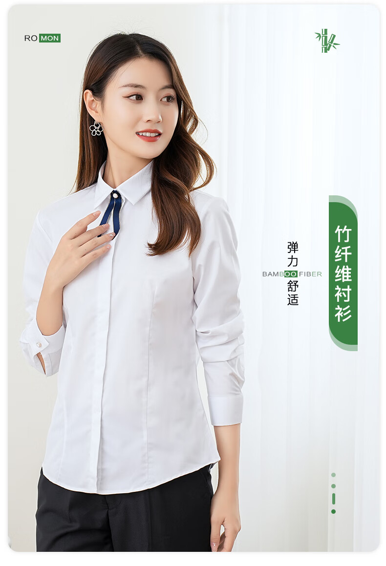 罗蒙【竹纤维 抗皱 微弹】长袖衬衫女士修身职业装商务打底衫工装衬衣