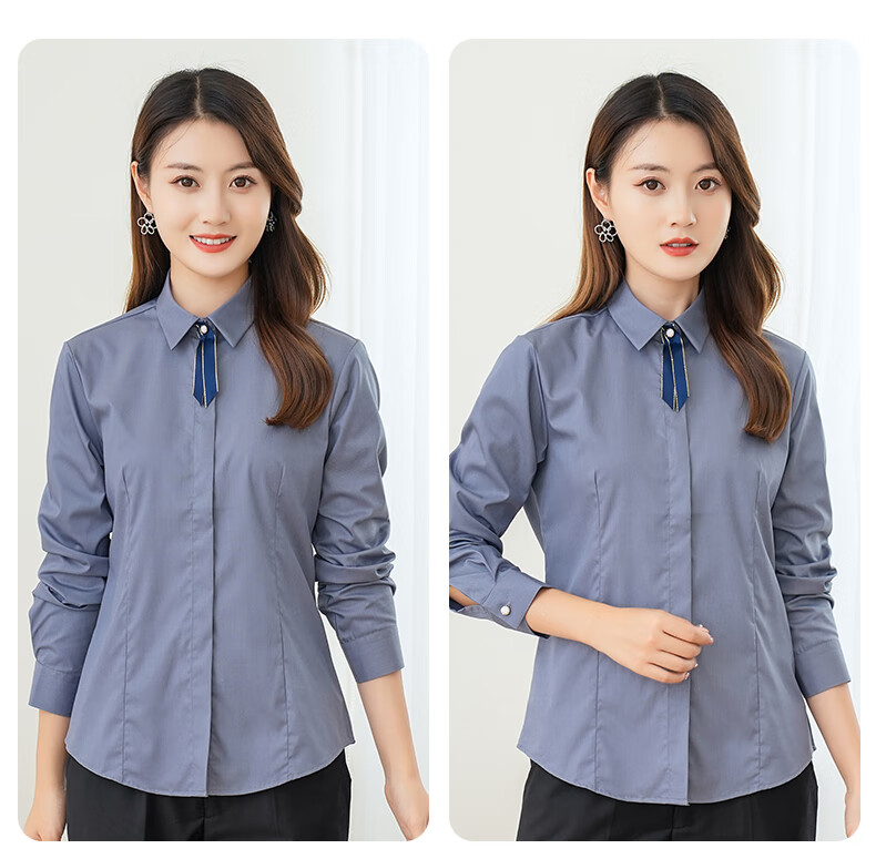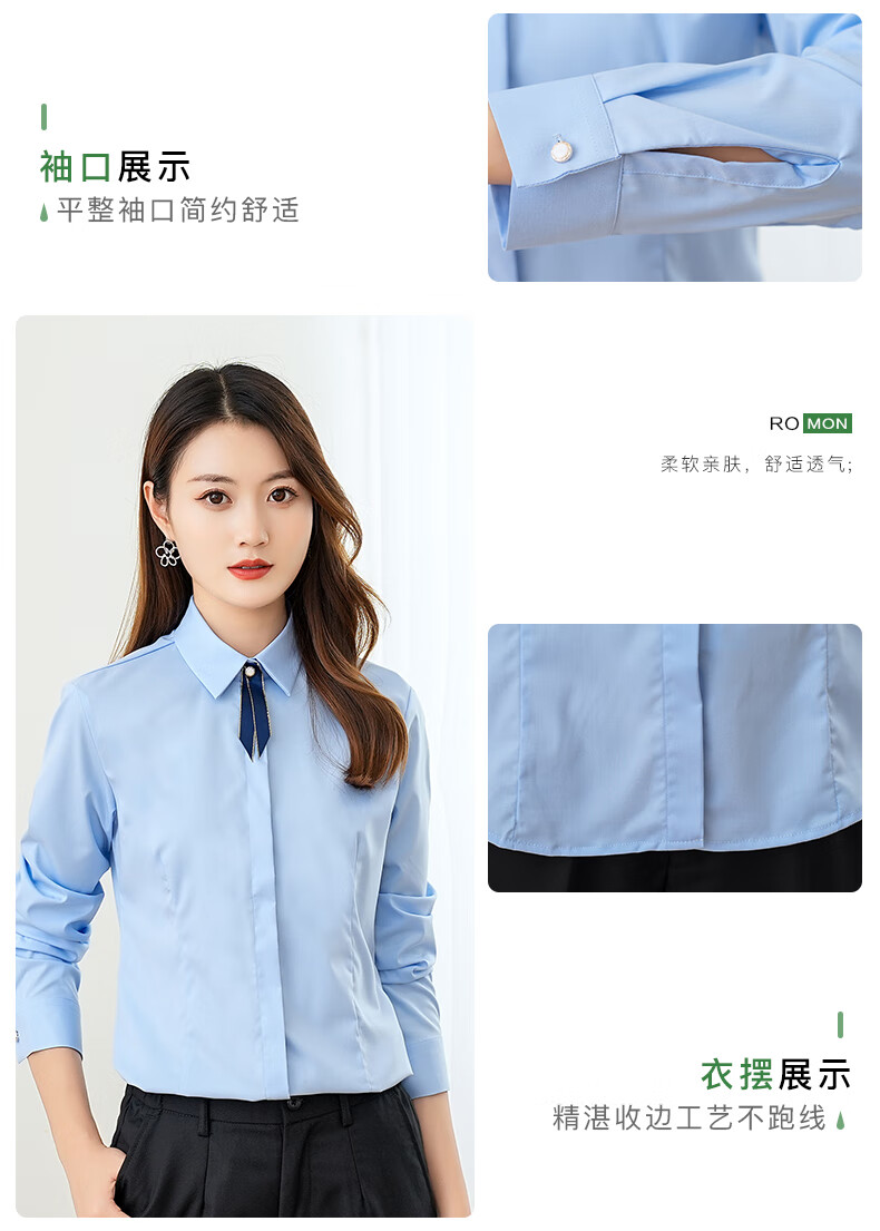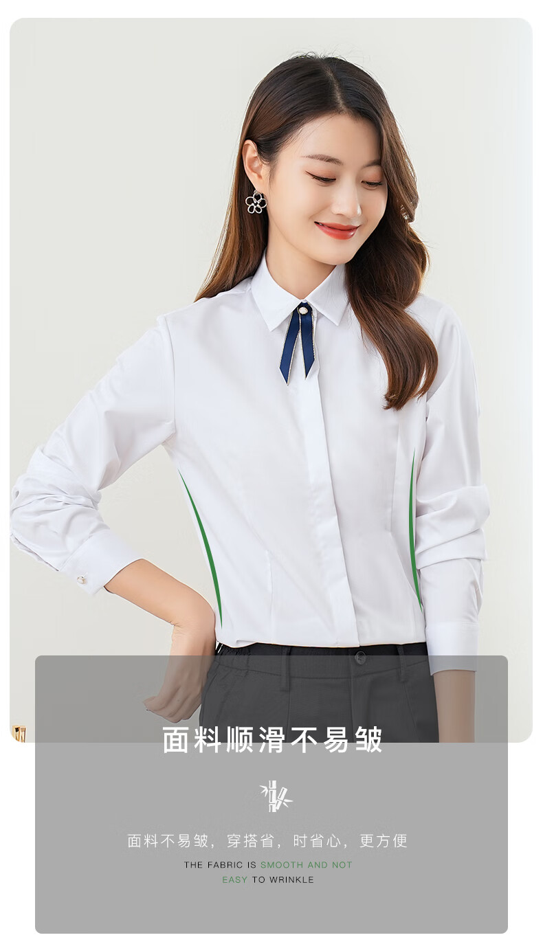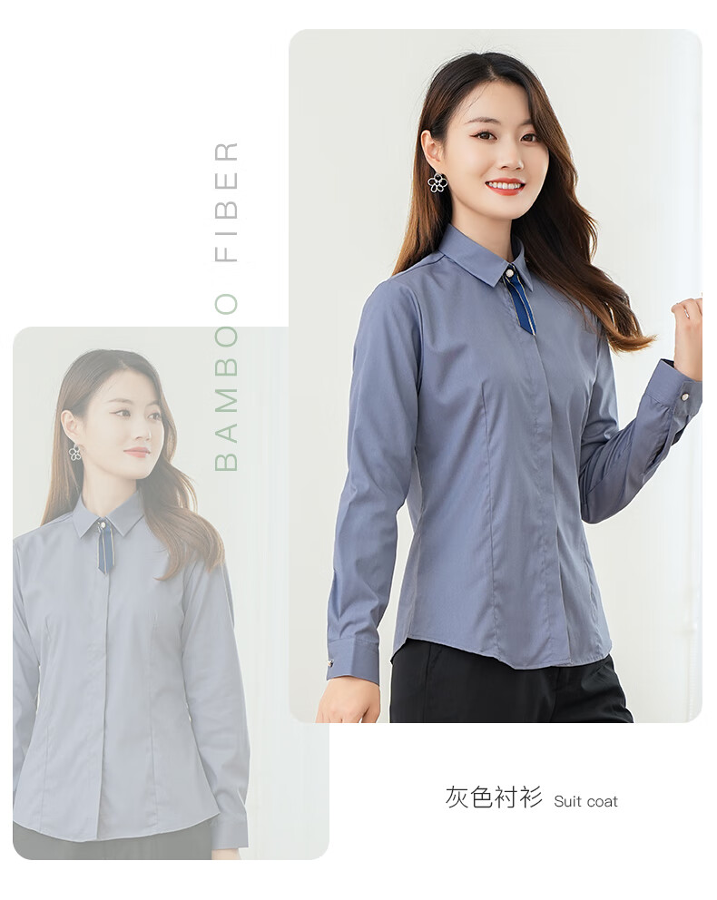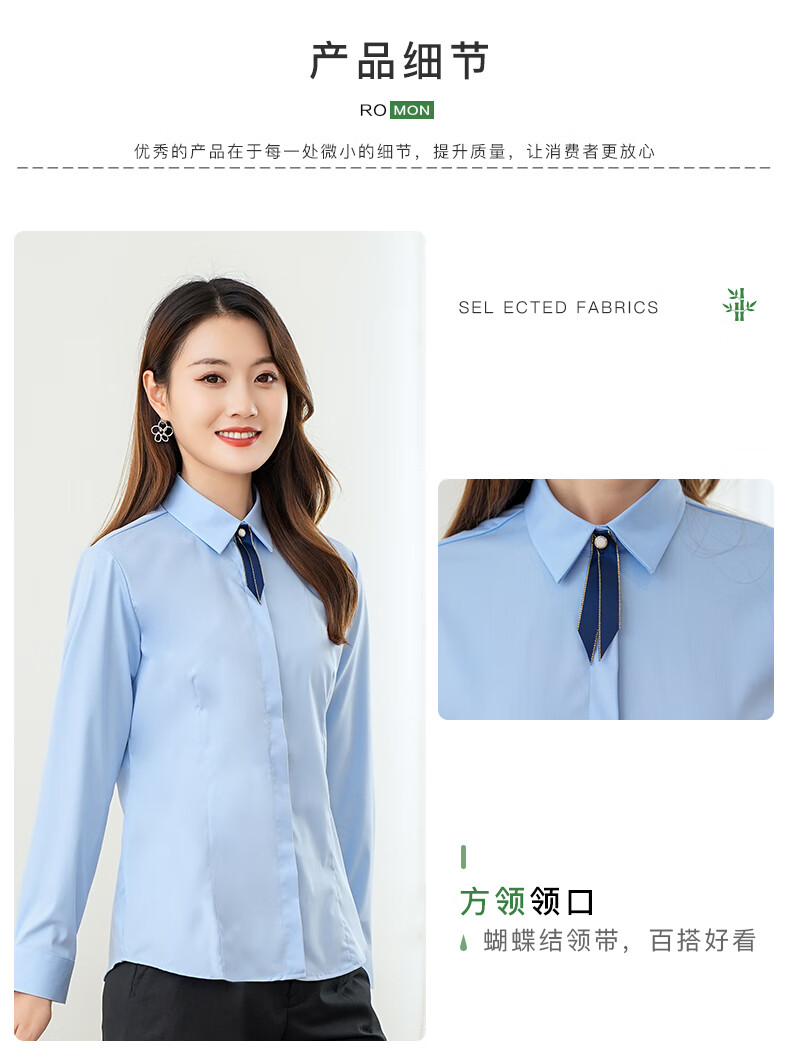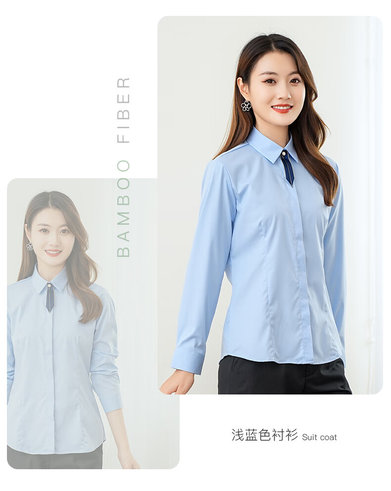 罗蒙【竹纤维 抗皱 微弹】长袖衬衫女士修身职业装商务打底衫工装衬衣