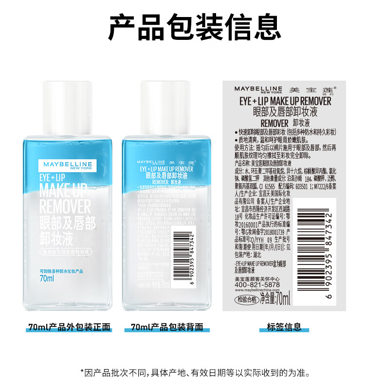 美宝莲眼部及唇部卸妆液卸妆油卸妆水 温和深层清洁70ml 新年礼物女