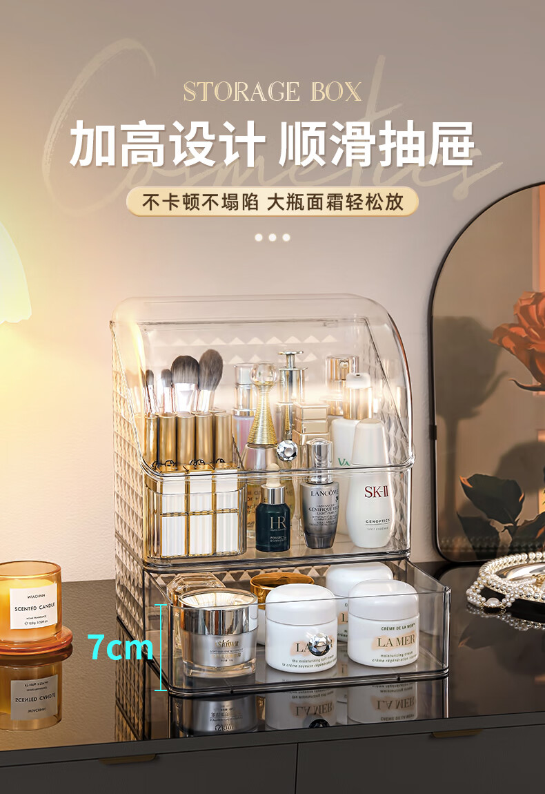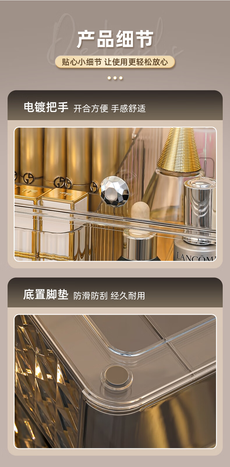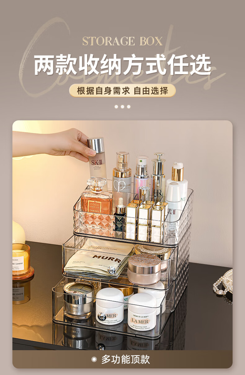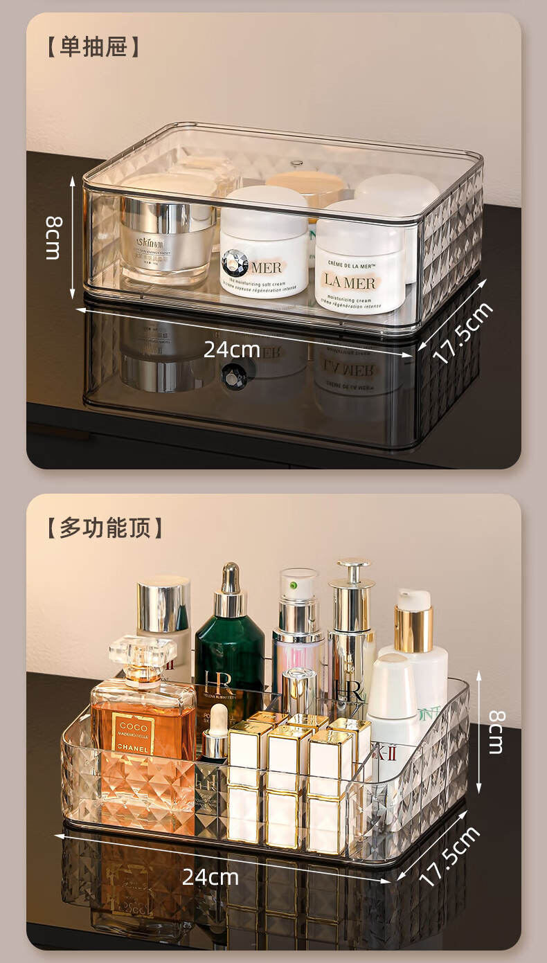 KAMAN化妆品收纳盒桌面防尘高级抽屉储物盒梳妆台护肤品口红面膜置物架 中古风【防尘两件套】