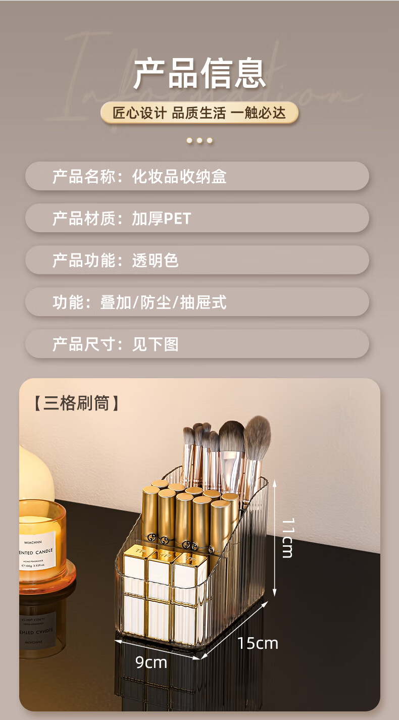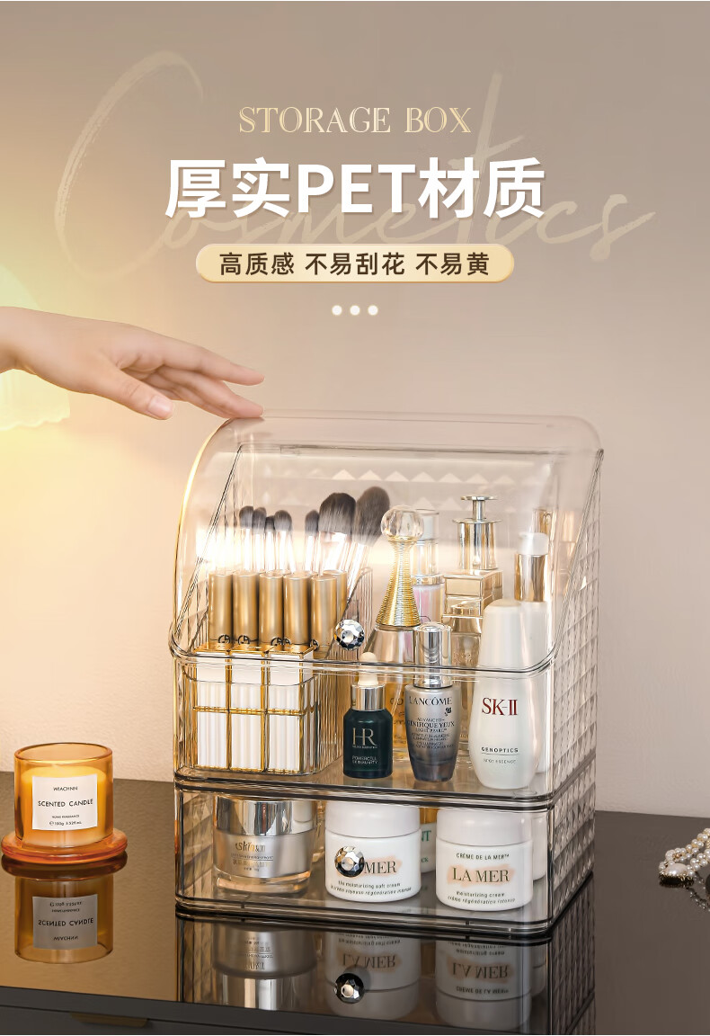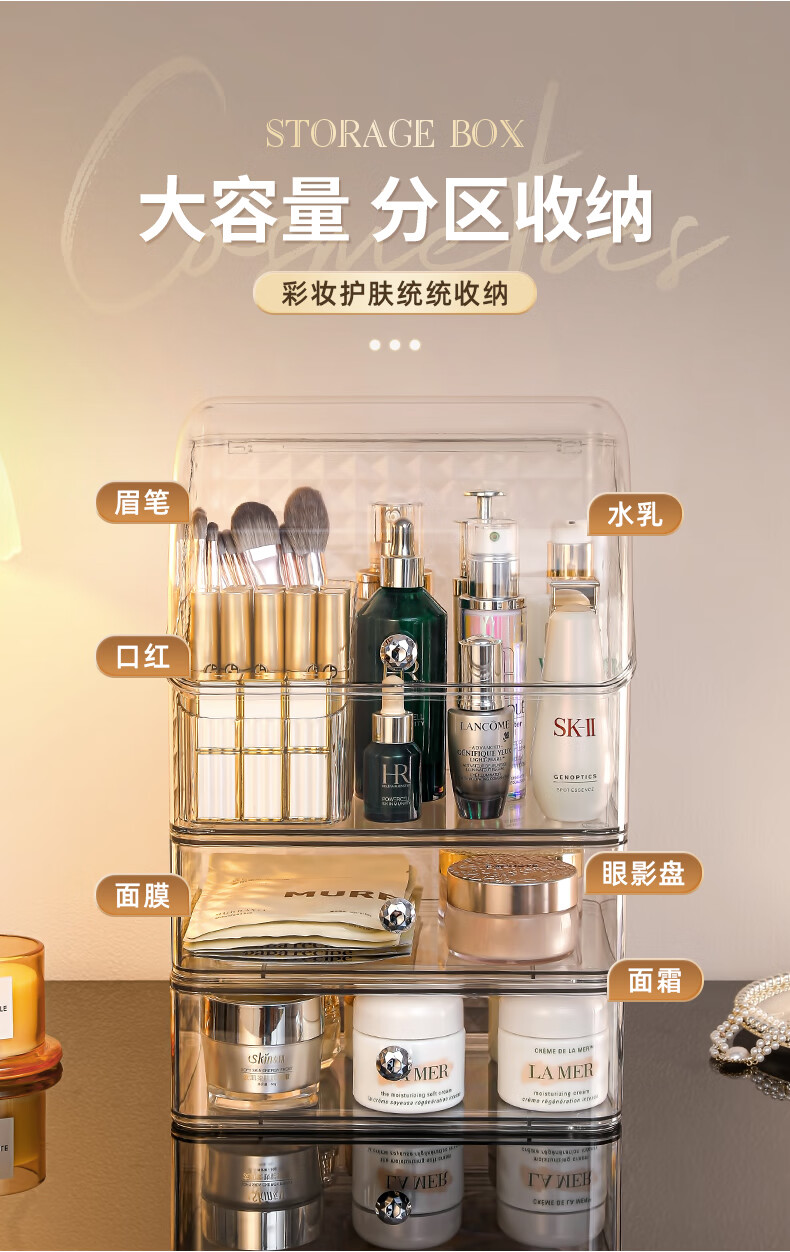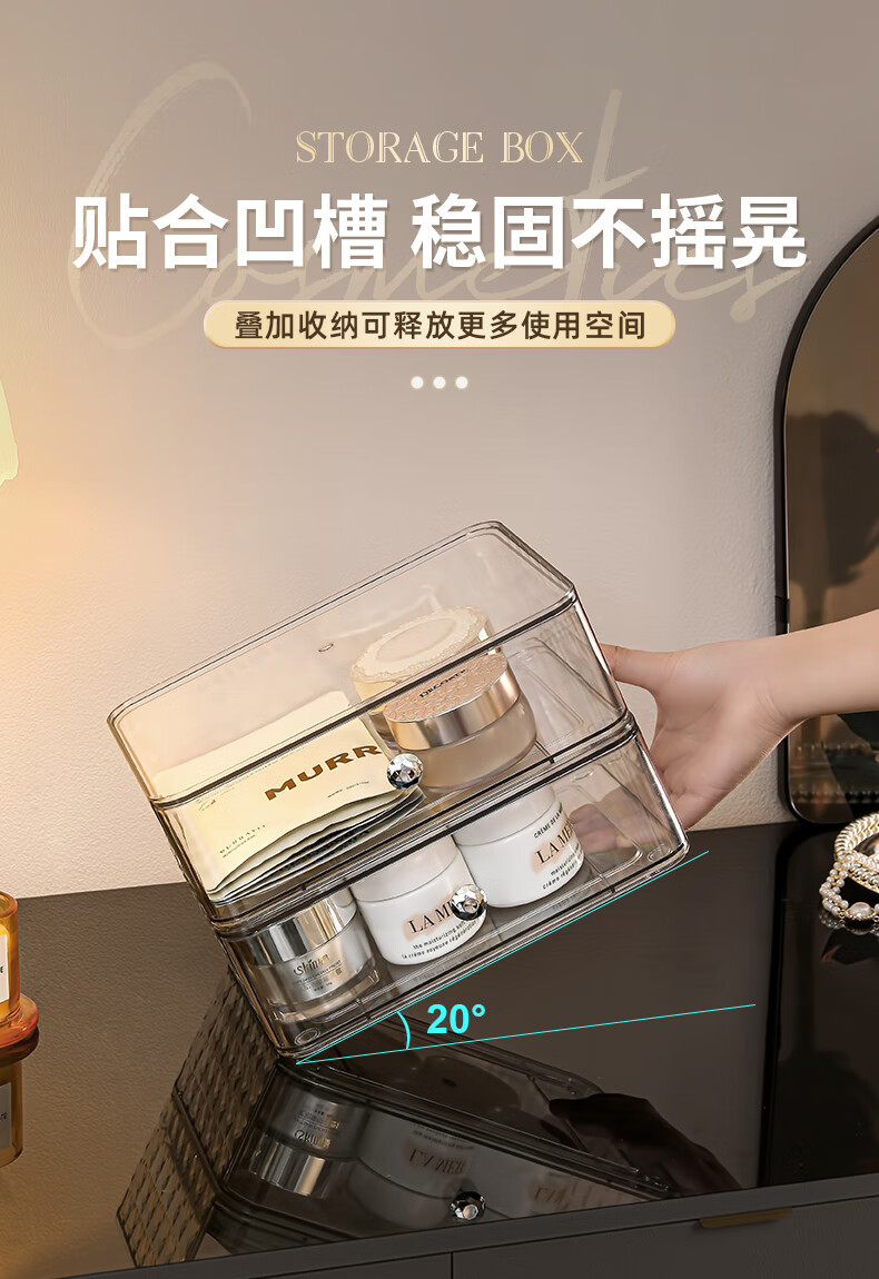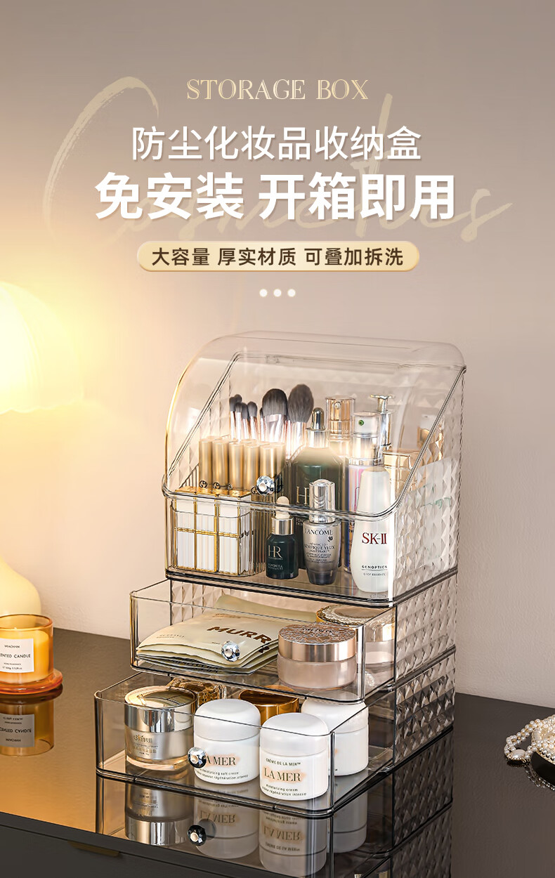 KAMAN化妆品收纳盒桌面防尘高级抽屉储物盒梳妆台护肤品口红面膜置物架 中古风【防尘两件套】