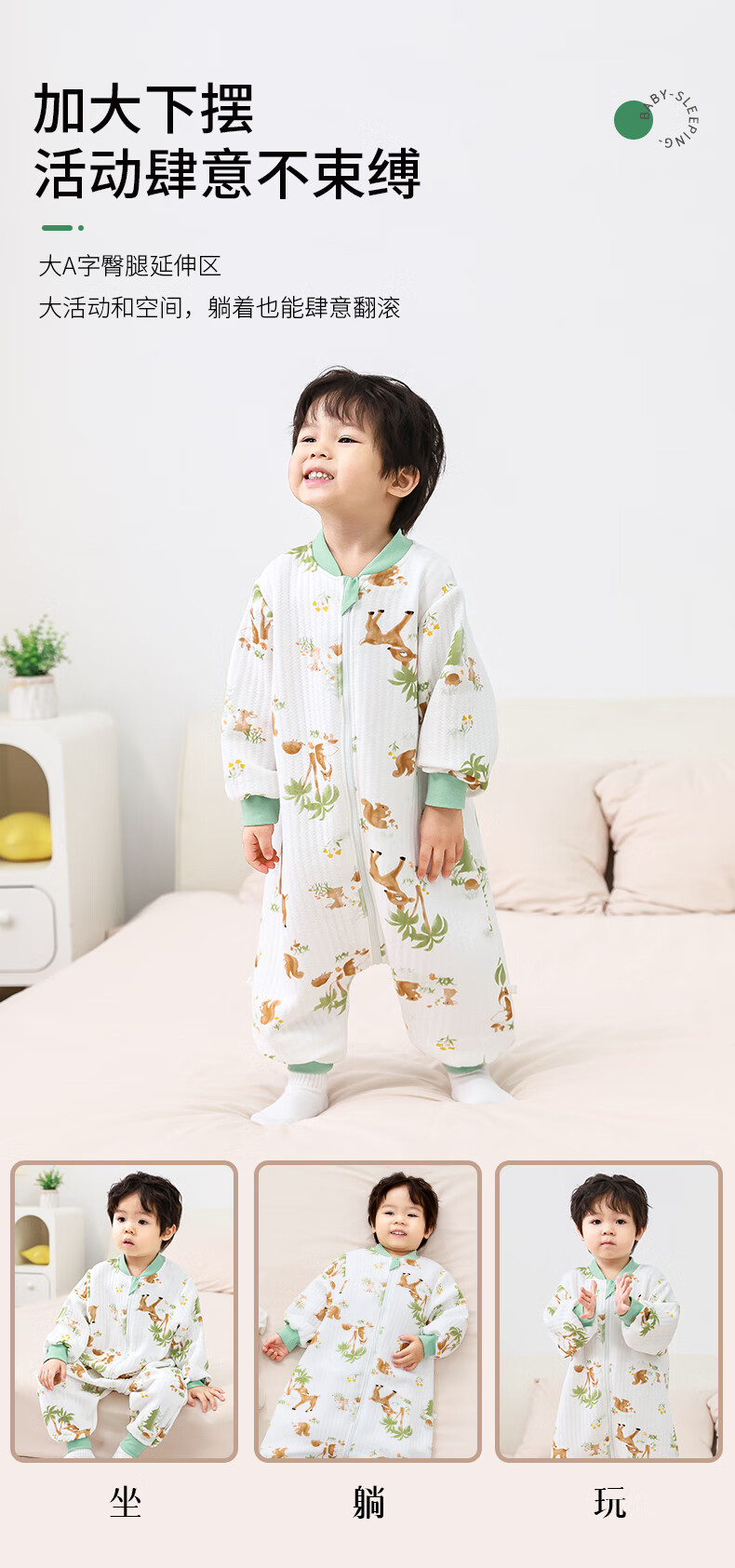 童颜婴儿睡袋秋冬季儿童防踢被竹棉宝宝睡衣空气层分腿睡袋 麋鹿 90码