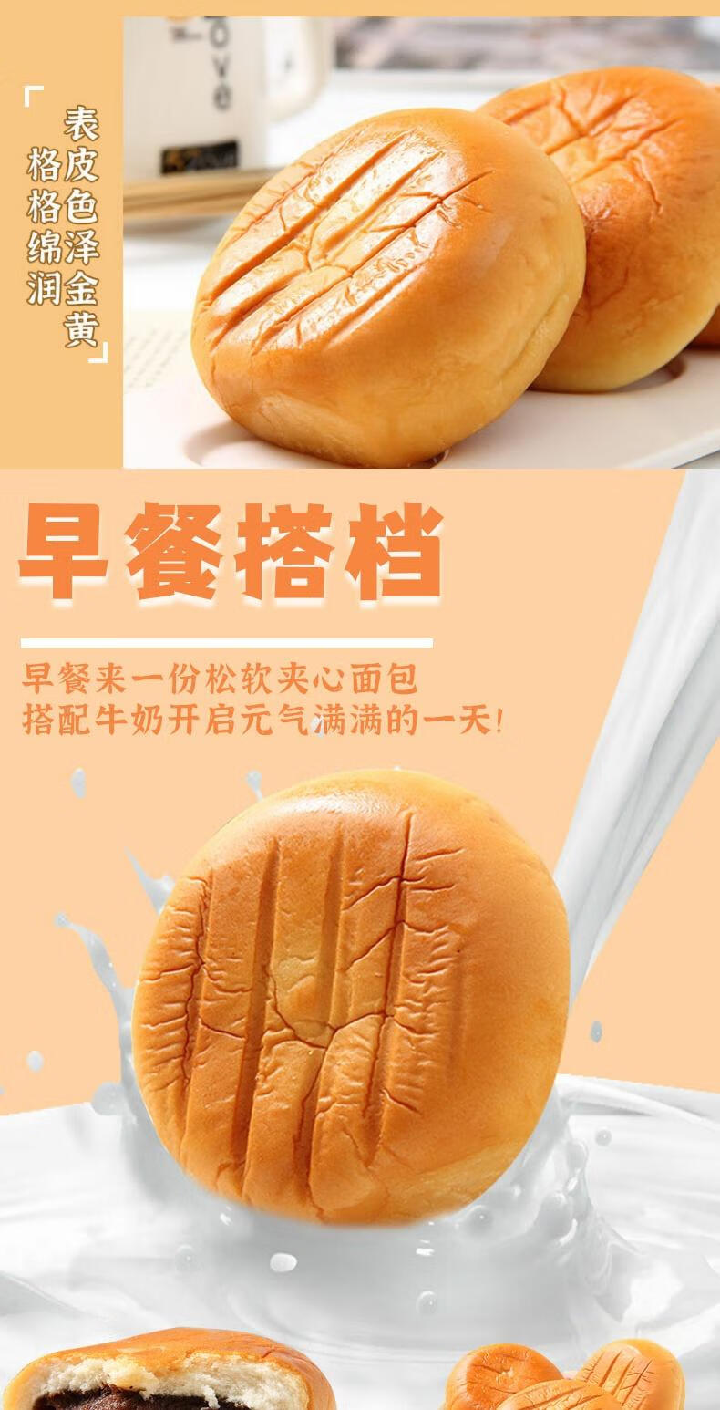 红豆沙面包整箱早餐夹心软面包充饥代餐蛋糕点零食老式豆沙馅面包 [一斤尝鲜]老式豆沙夹心面包50 500g