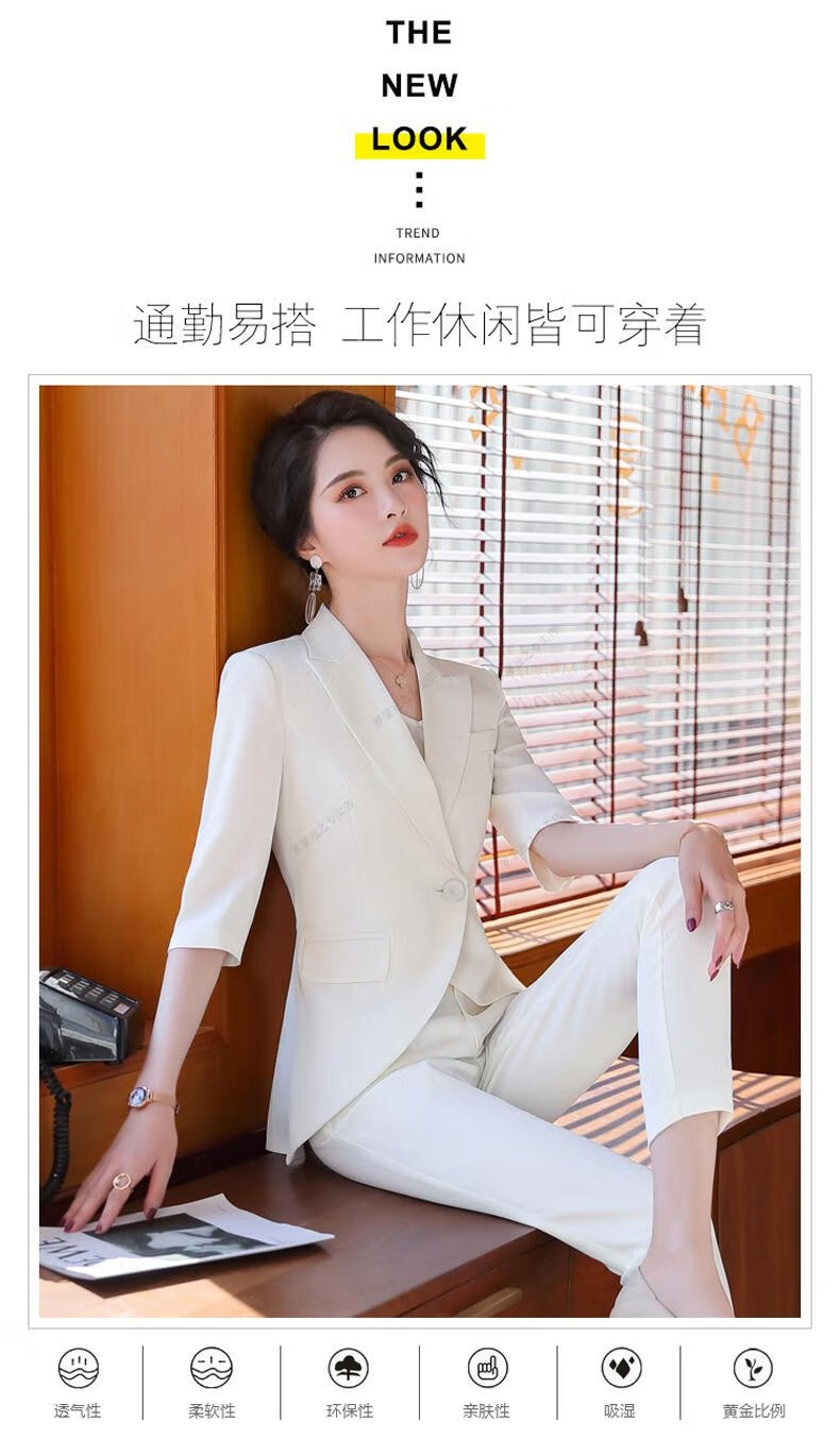罗蒙(ROMON)白色西装女套装气质春季薄款西服高端职业装气质女神范时尚工作 白色西装 S