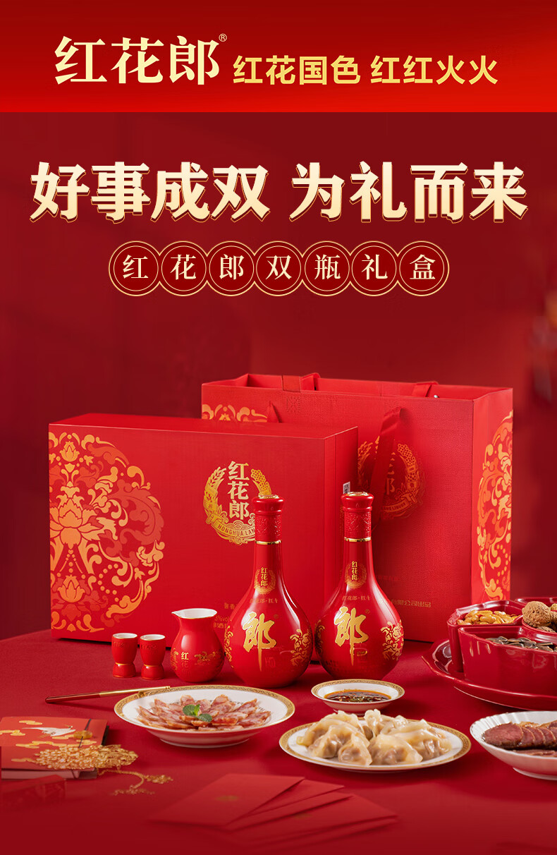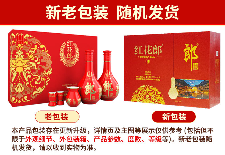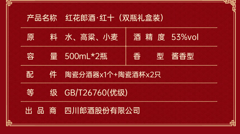郎酒 红花郎10 酱香型白酒 53度 500ml*2瓶 礼盒装 年货礼盒 包装随机