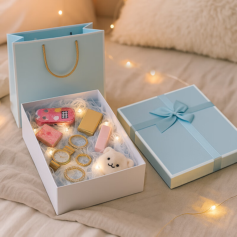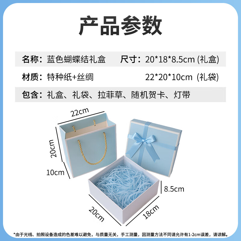 八海鸟礼盒空盒生日礼物盒圣诞礼物元旦结婚伴手收纳盒蓝色蝴蝶结中号