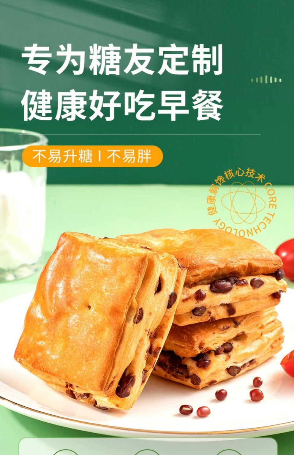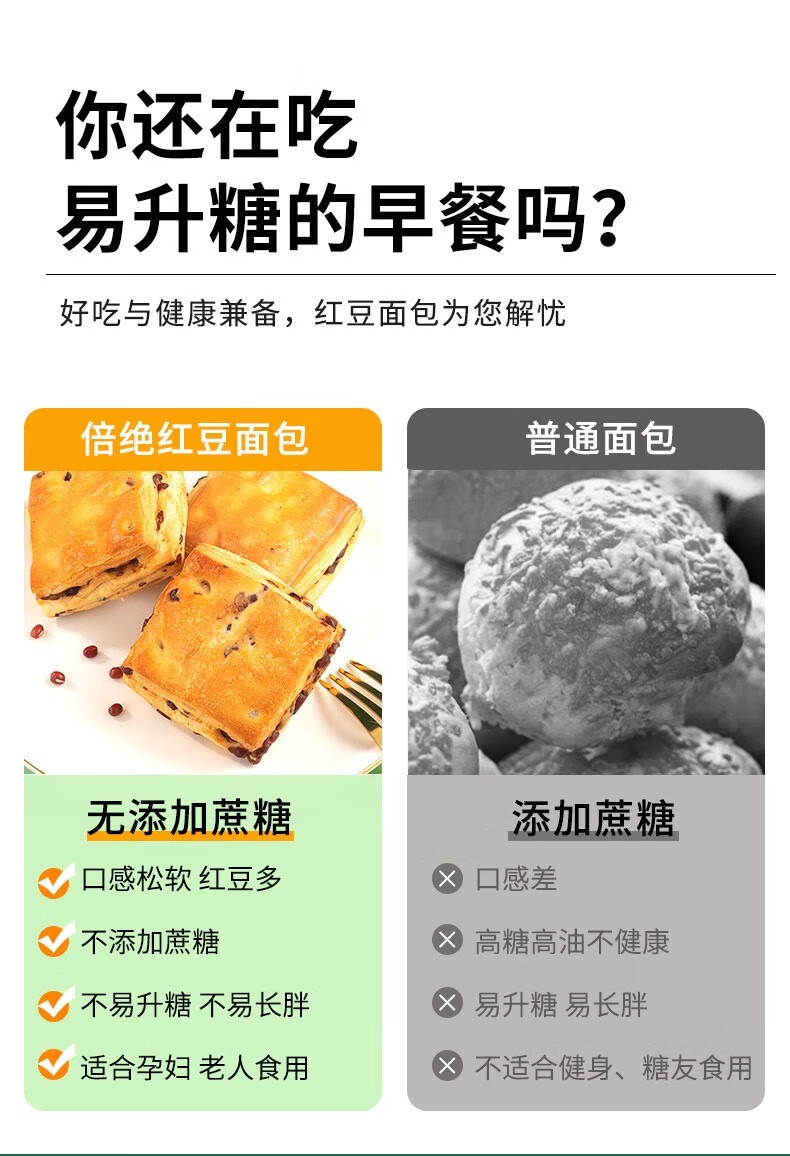 代购糖尿病人专用无糖面包吃的老年人抗糖友 红豆面 面包12包(约1斤)