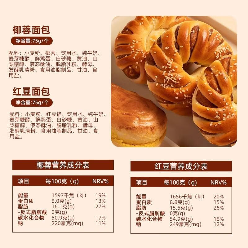 胖东来同款面包椰蓉【活动】椰香红豆卷面 手撕蛋糕老式红 红豆面 面包2祇+椰蓉面 面包2祇