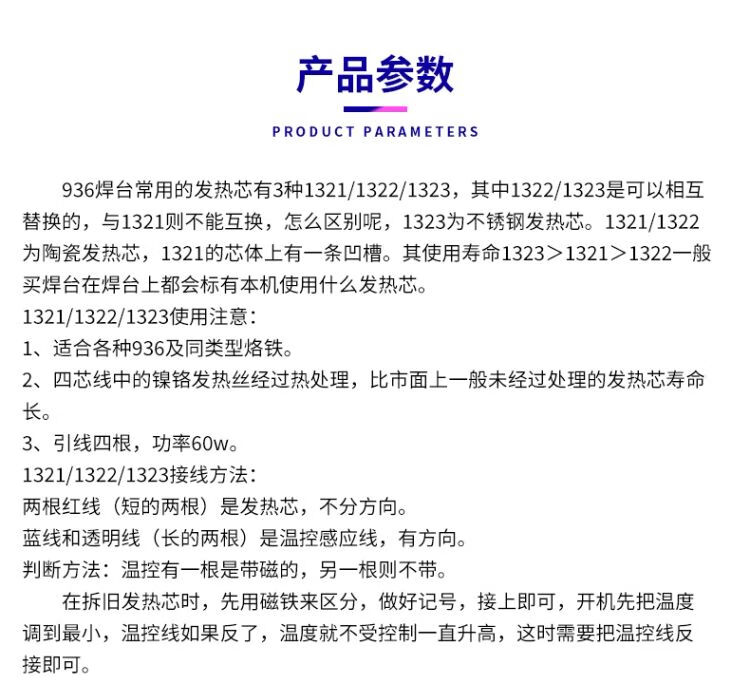 936恒温电烙铁手柄发热芯A1322烙铁芯936A焊台陶瓷内热式发热芯 1322一般的烙铁都用这个