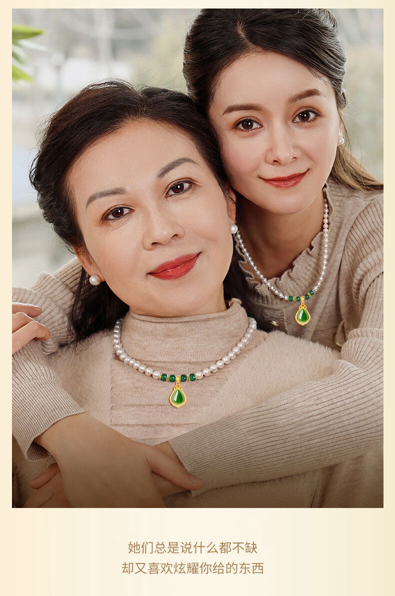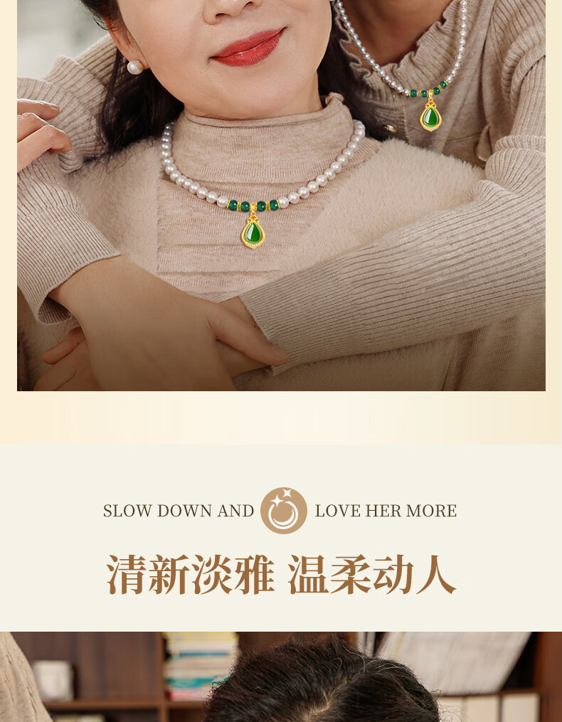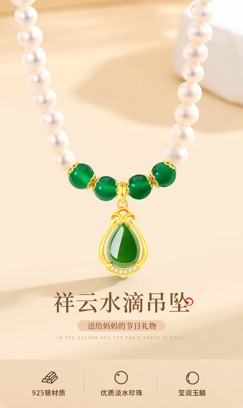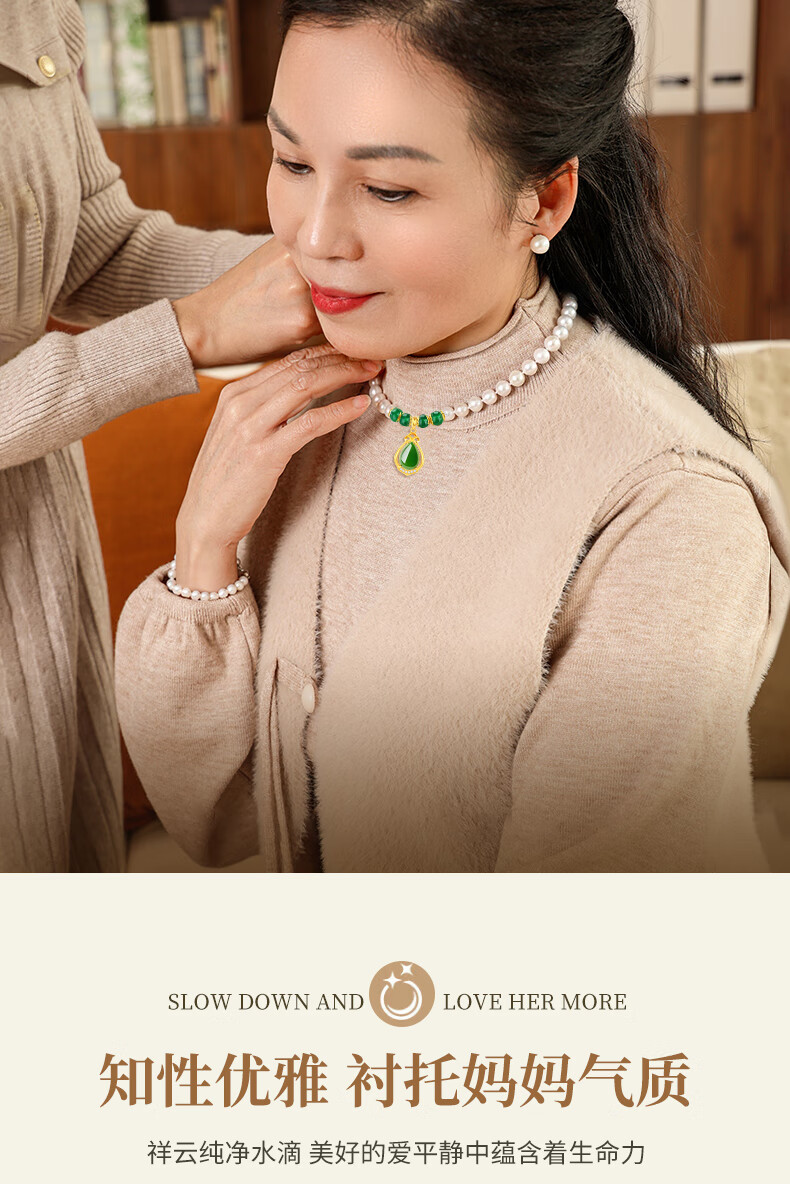 老凤祥淡水珍珠项链妈妈款玉髓吊坠锁骨链母亲节生日礼物送妈妈婆婆长辈 定制贺卡*芳华玉髓珍珠项链