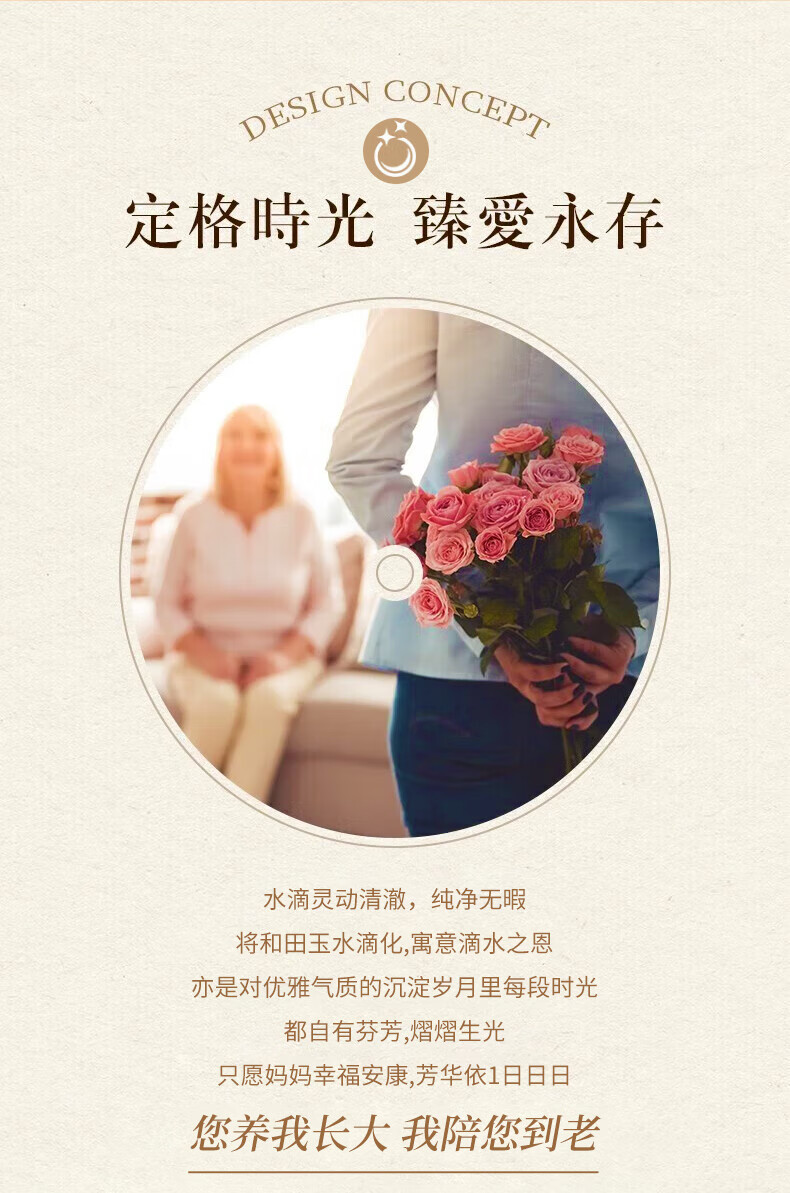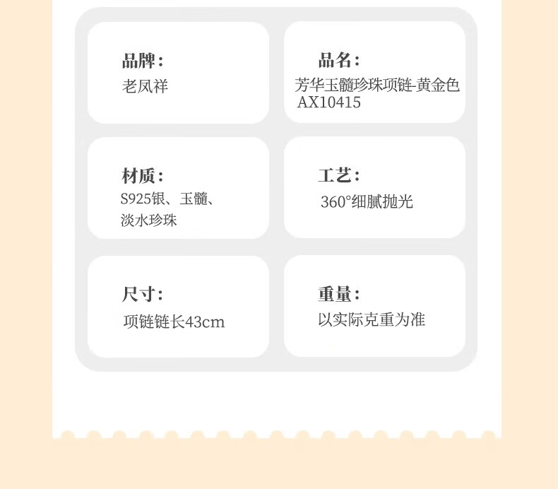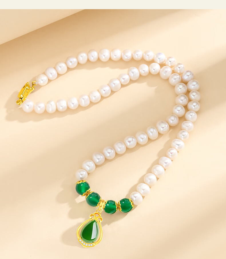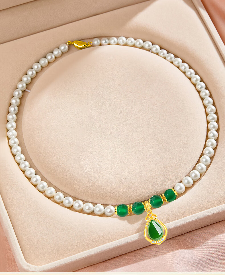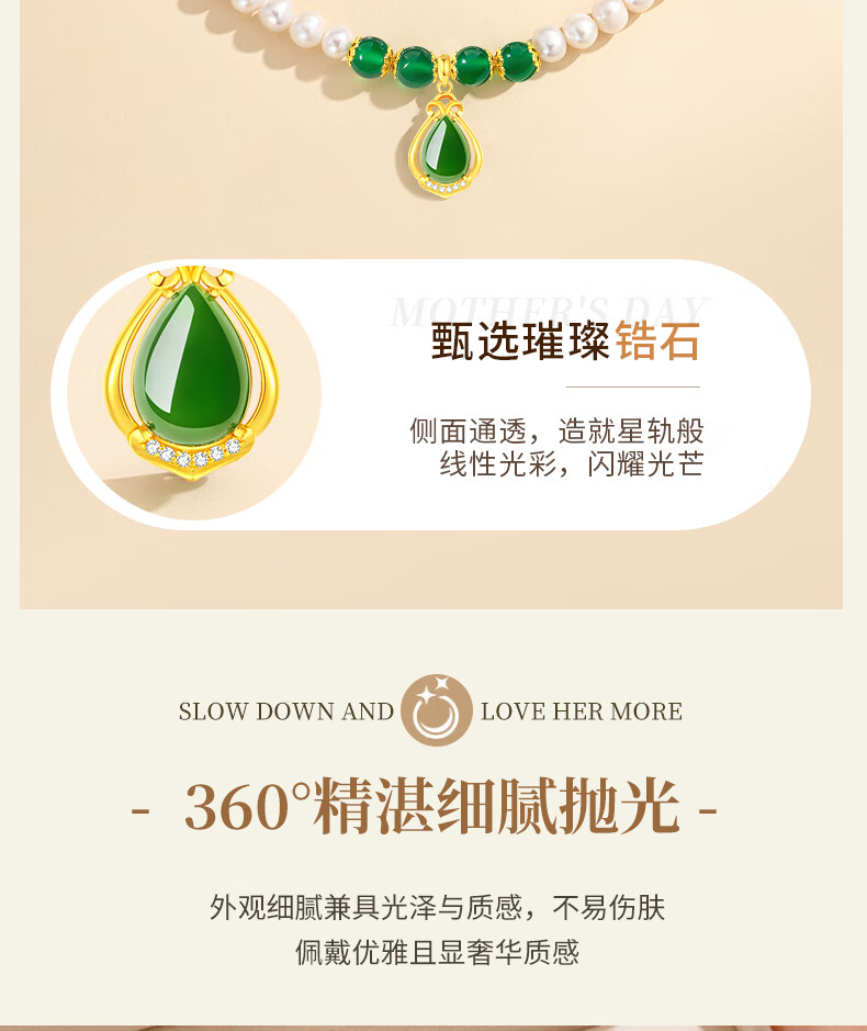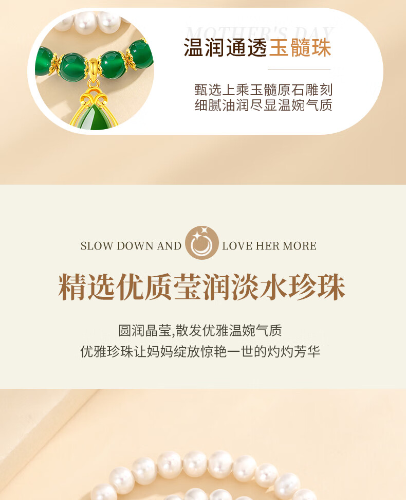 老凤祥淡水珍珠项链妈妈款玉髓吊坠锁骨链母亲节生日礼物送妈妈婆婆长辈 定制贺卡*芳华玉髓珍珠项链