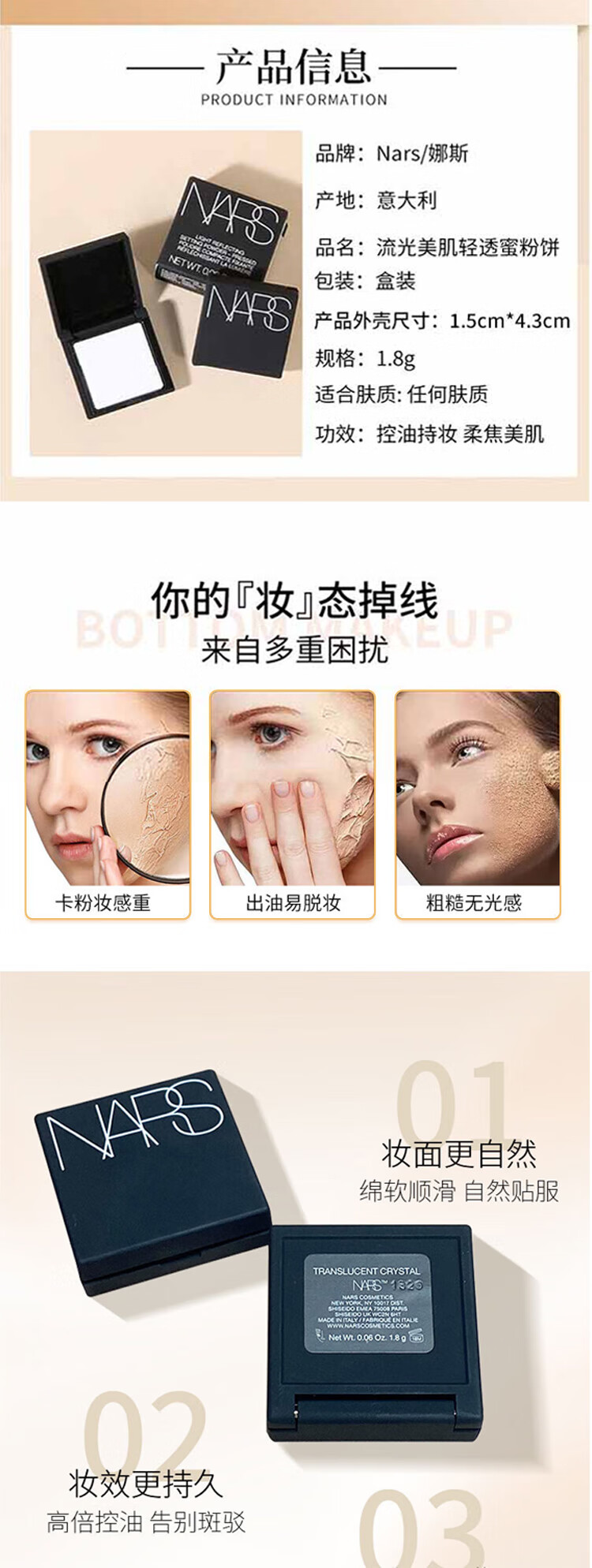 NARS定妆大白饼散粉蜜粉中样1.8g不卡粉细腻持久无粉扑 生日礼物女