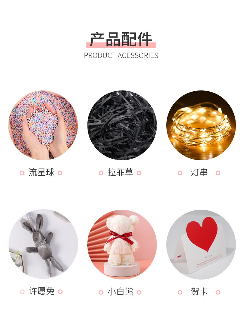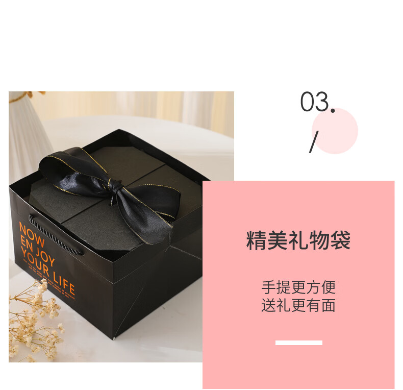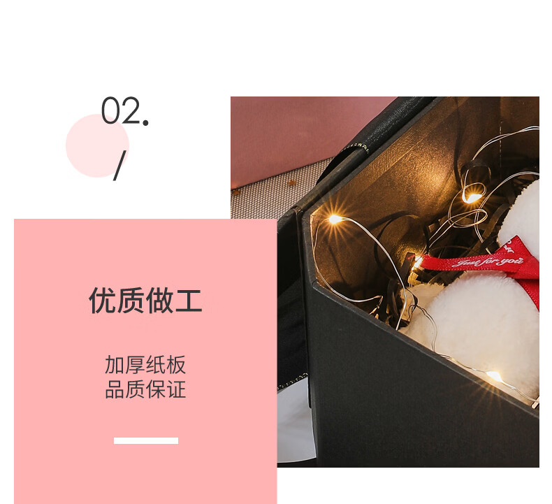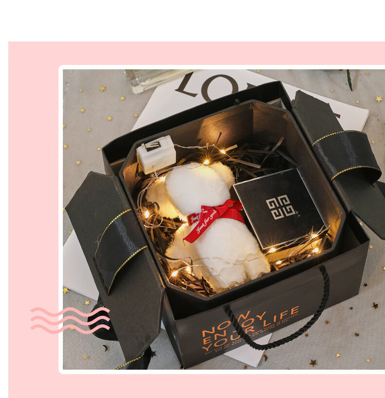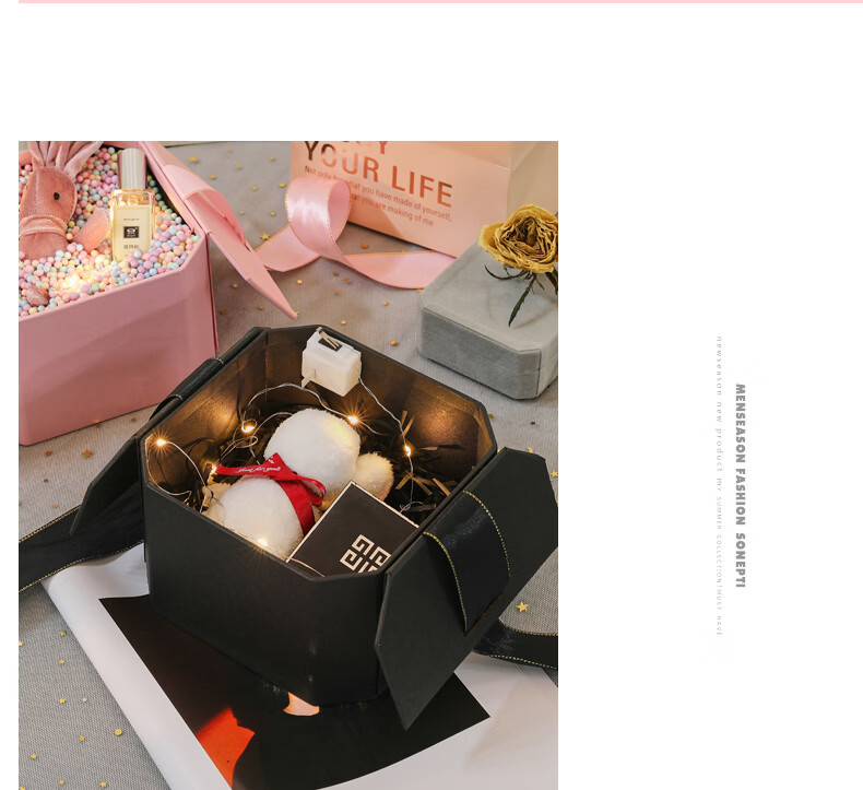 黑色八角礼盒空盒子包装盒生日精致礼物盒高级感情人节伴手礼品盒 长21*宽21*高12cm 粉色礼盒+礼袋+拉菲草+自动灯+许愿兔