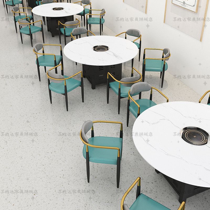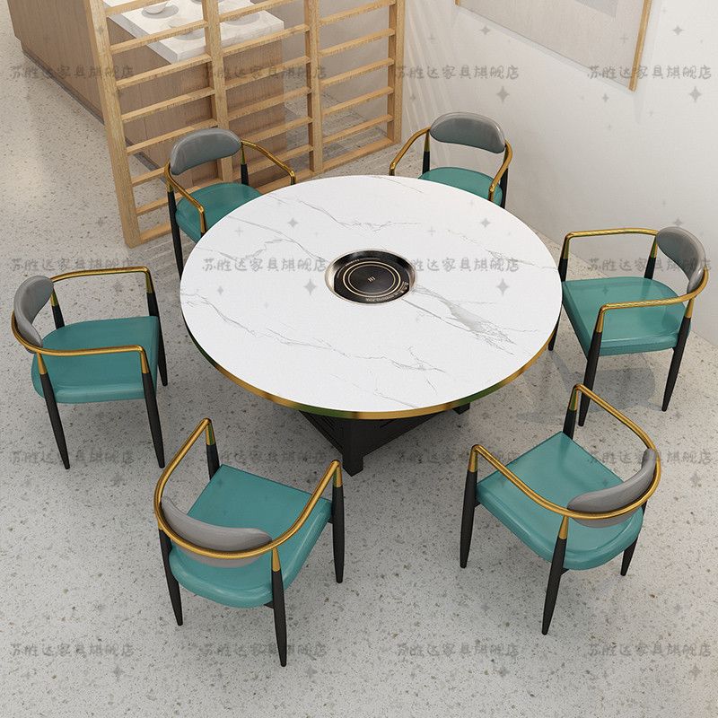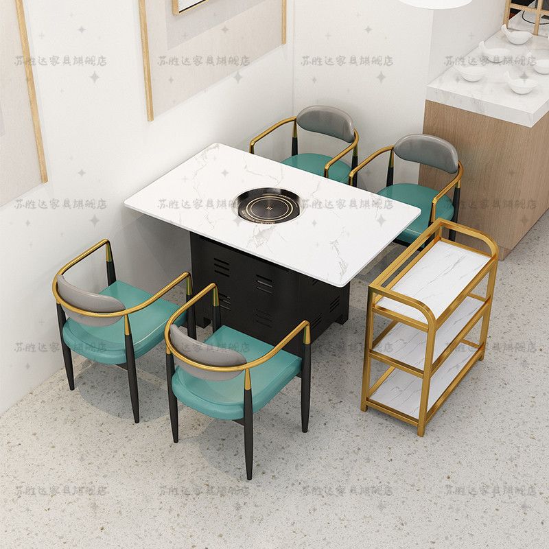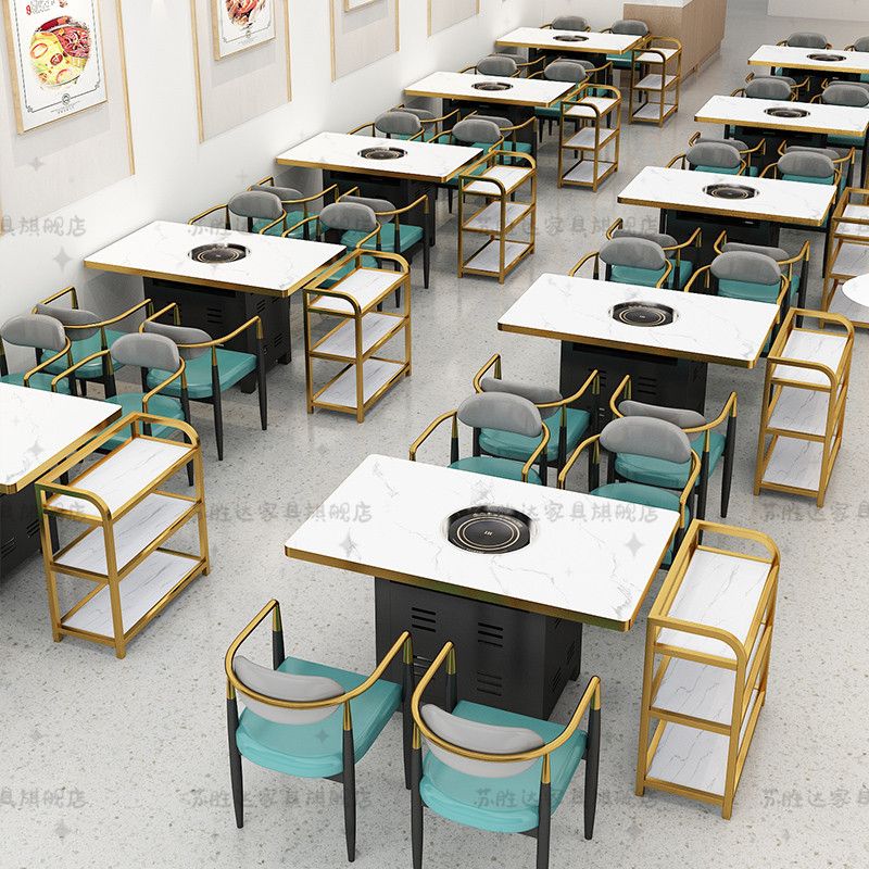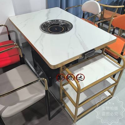 【工厂直销】岩板大理石火锅桌子电磁炉一体商用沙发桌椅组合