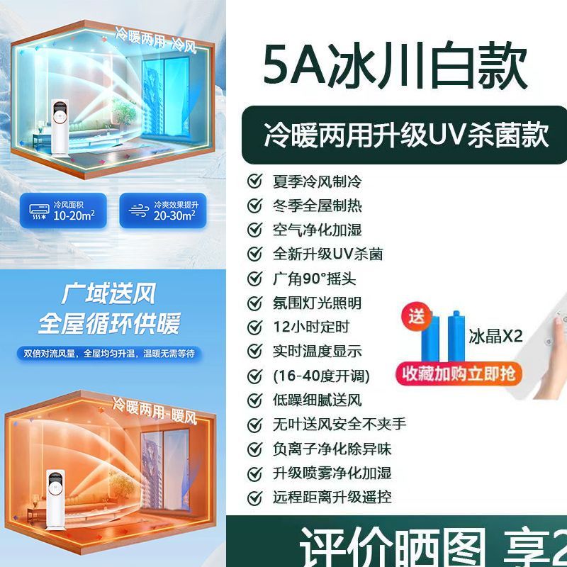 5A多功能移动空调扇冷暖两用小型空调扇家用轻音立式摇头水冷塔扇