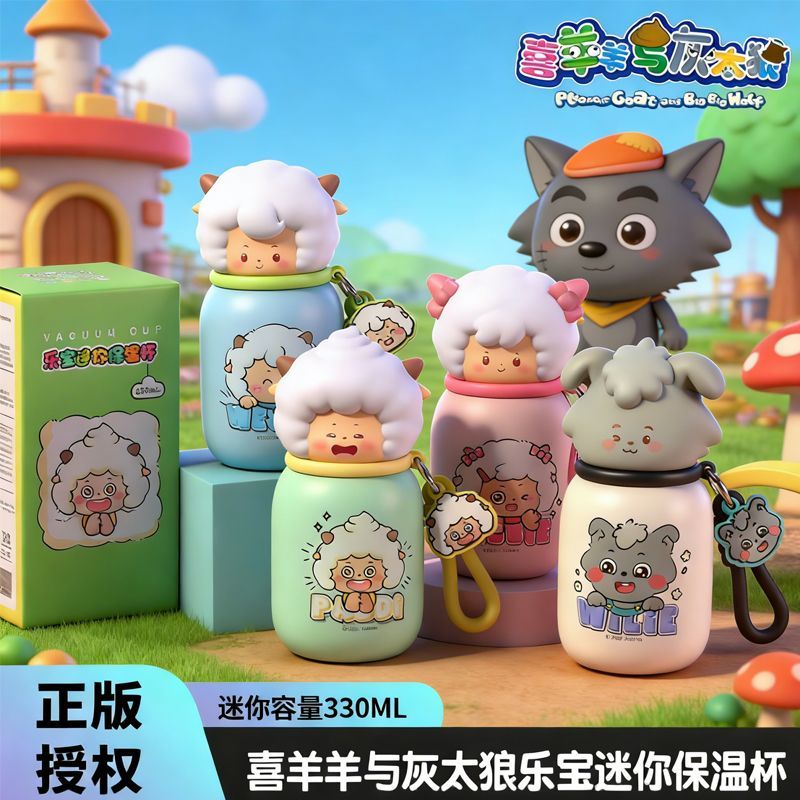 喜羊羊与灰太狼保温杯高颜值卡通可爱学生儿童便携懒羊羊图案水杯