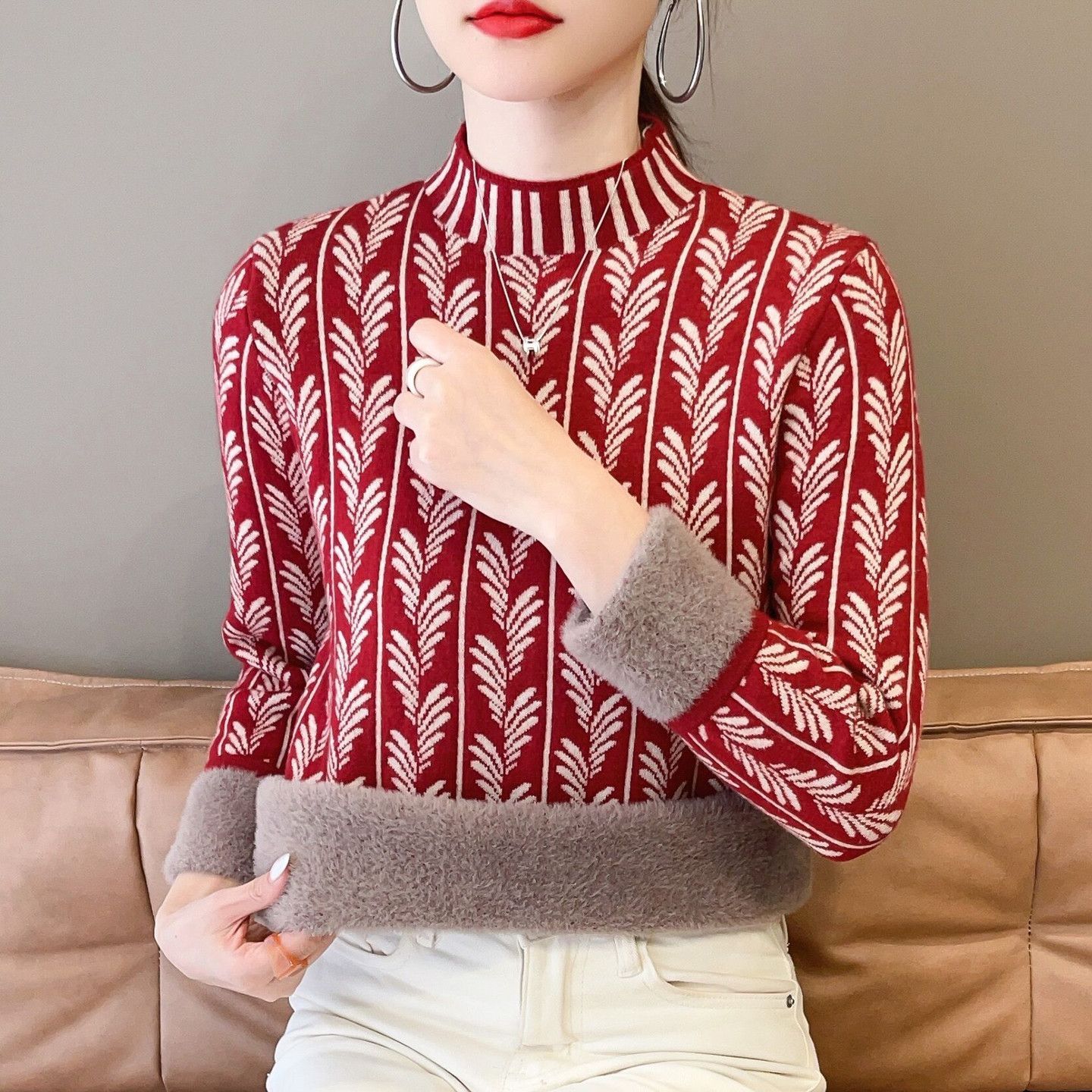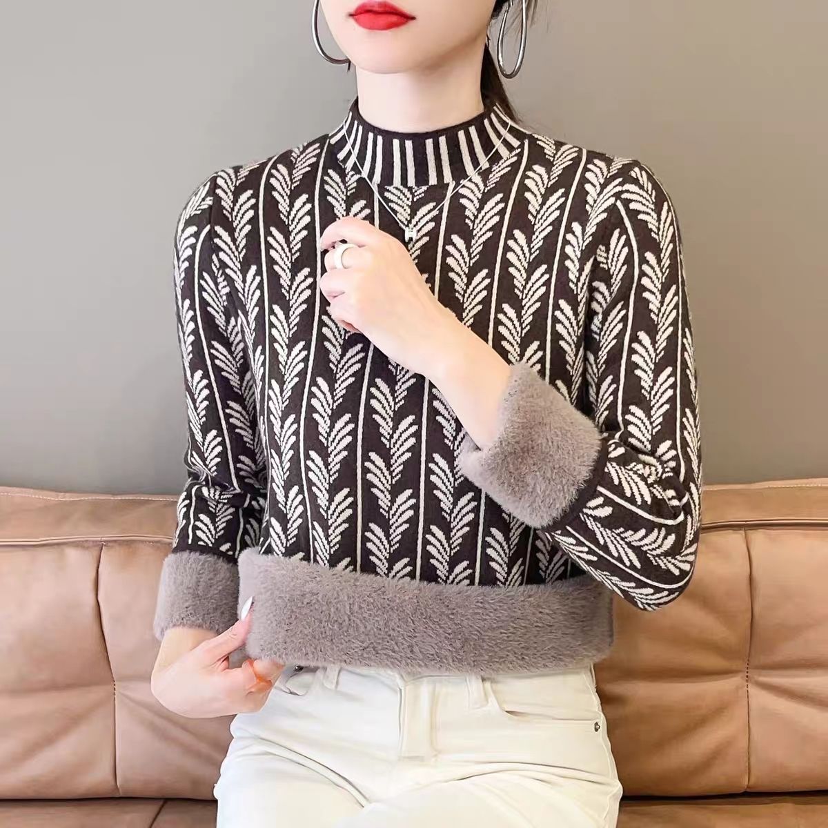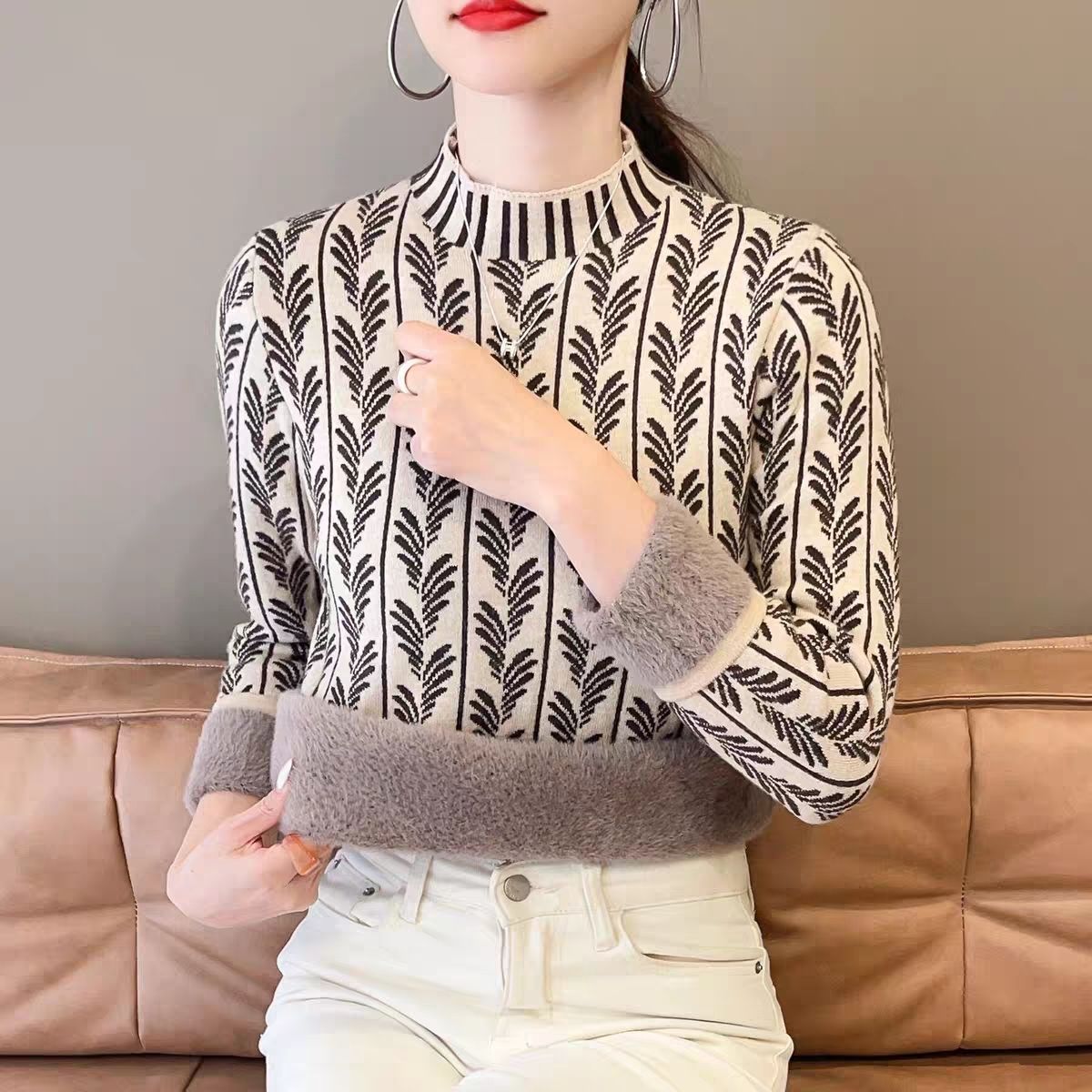 加绒打底衫女加厚2025秋冬新款内搭半高领一体绒时髦洋气保暖毛衣