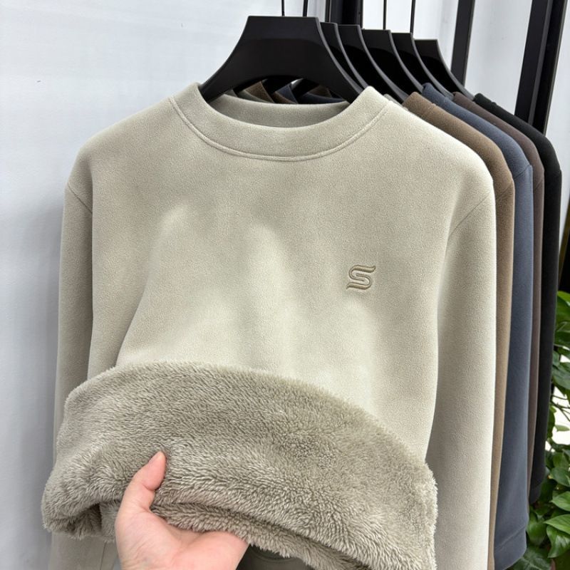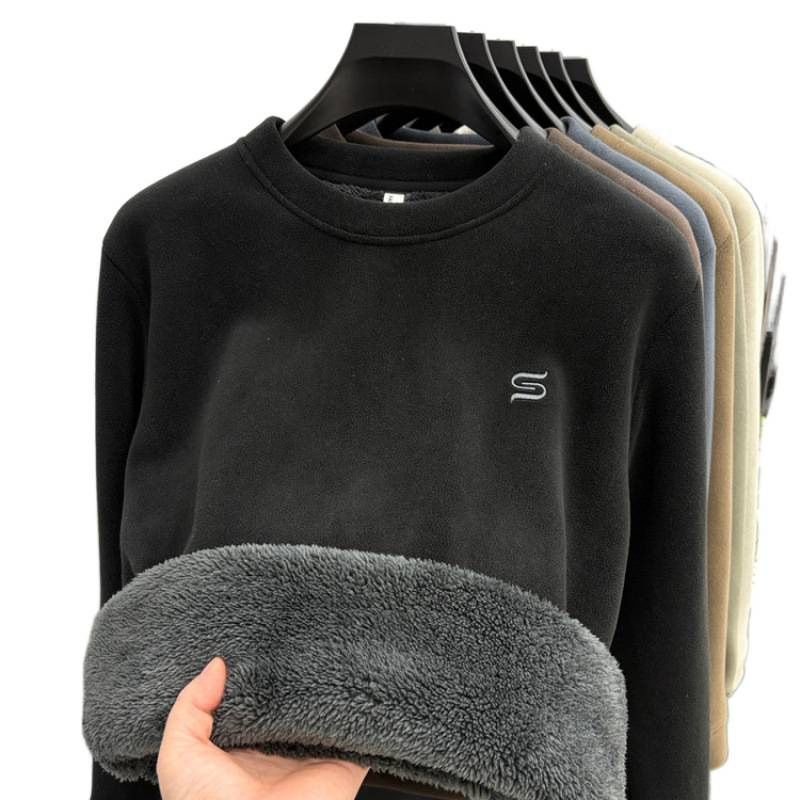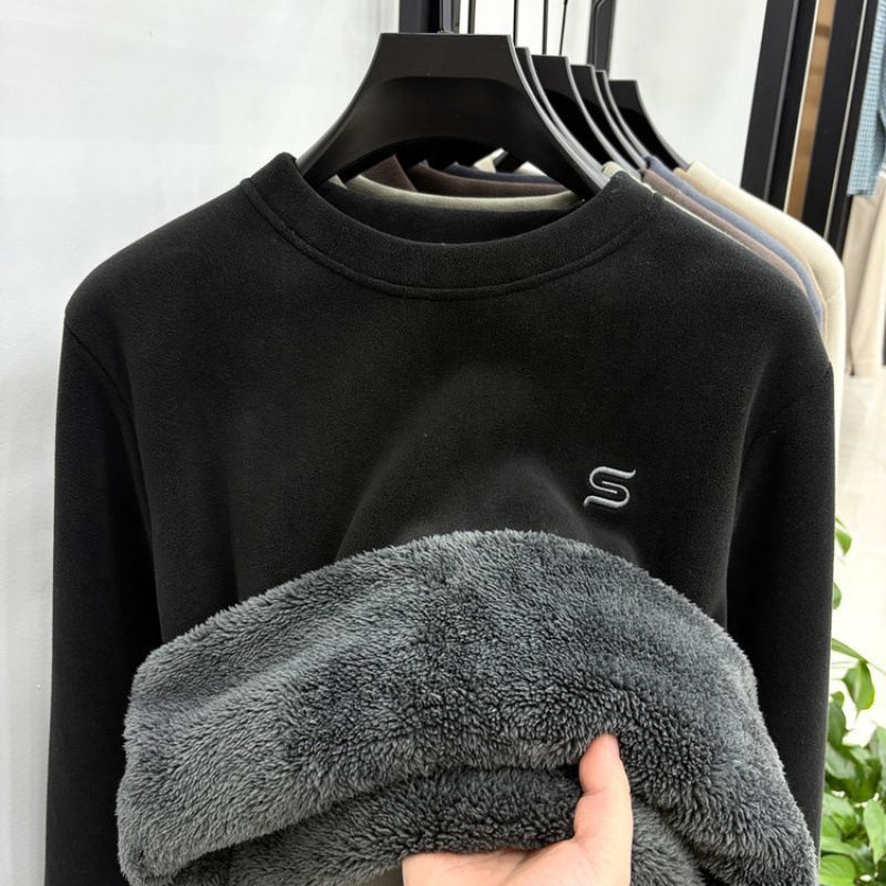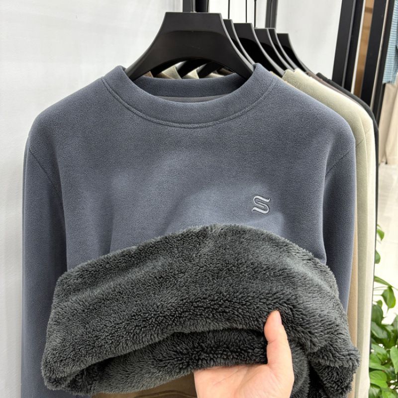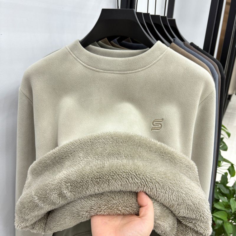 加绒加厚卫衣男秋冬新款奥粒绒保暖时尚休闲百搭圆领刺绣打底衫潮