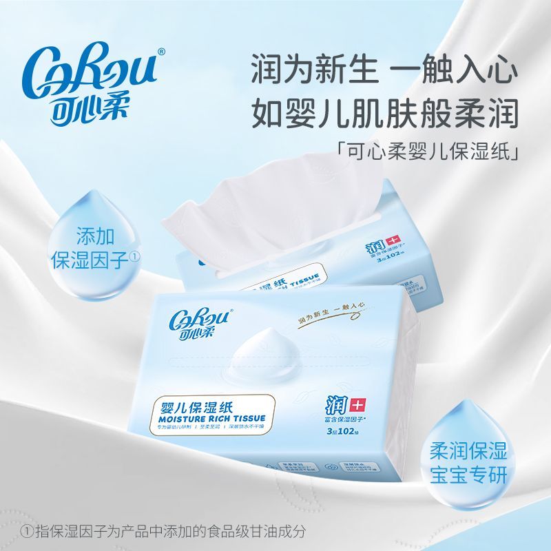 可心柔V9婴儿保湿柔纸巾宝宝专用云柔巾3层102抽家庭装乳霜纸