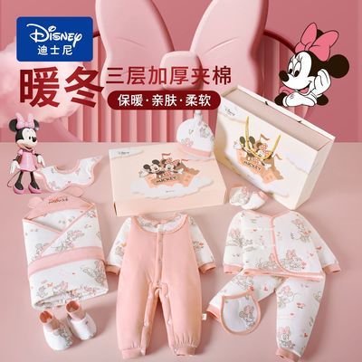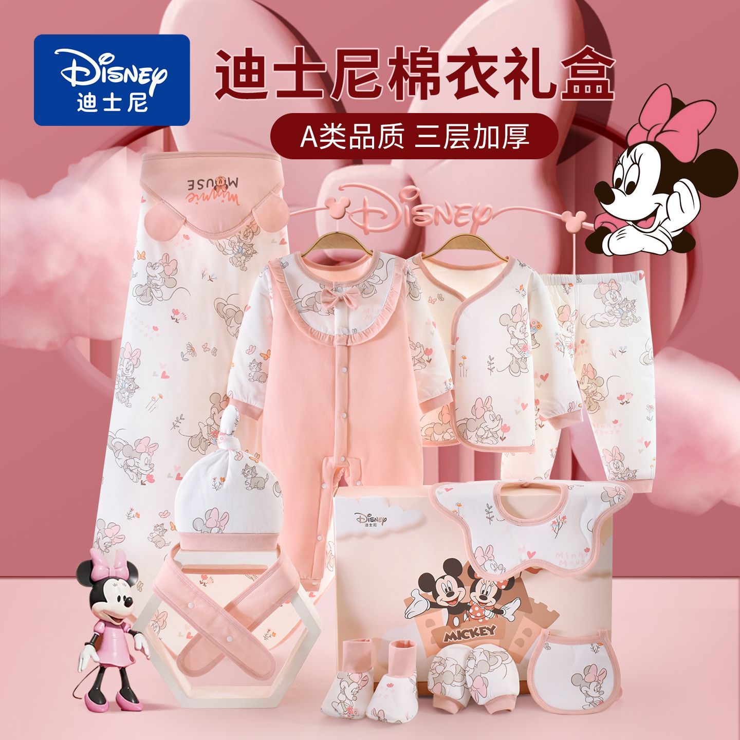 迪士尼新生儿礼盒婴儿衣服秋冬季套装初生女宝宝满月礼物用品高档