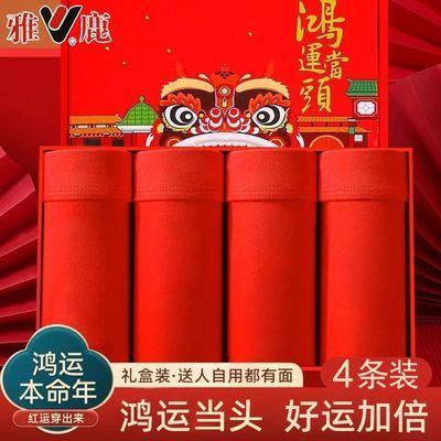 雅鹿男士内裤大红色本命年透气新款四角平角结婚喜庆短裤男款