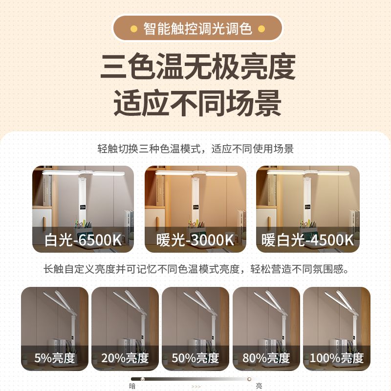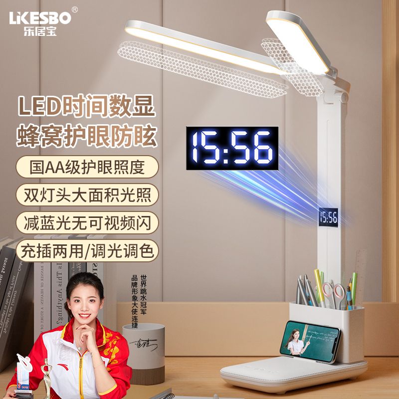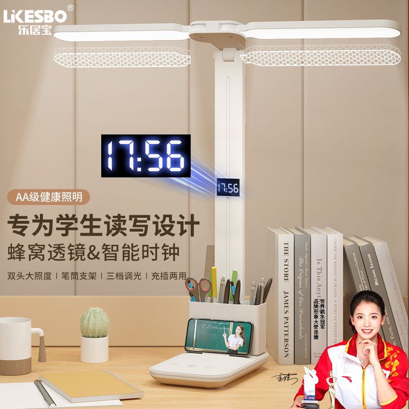 乐居宝全光谱大光面双灯头柔光护眼台灯宿舍大学生学习专用台灯带