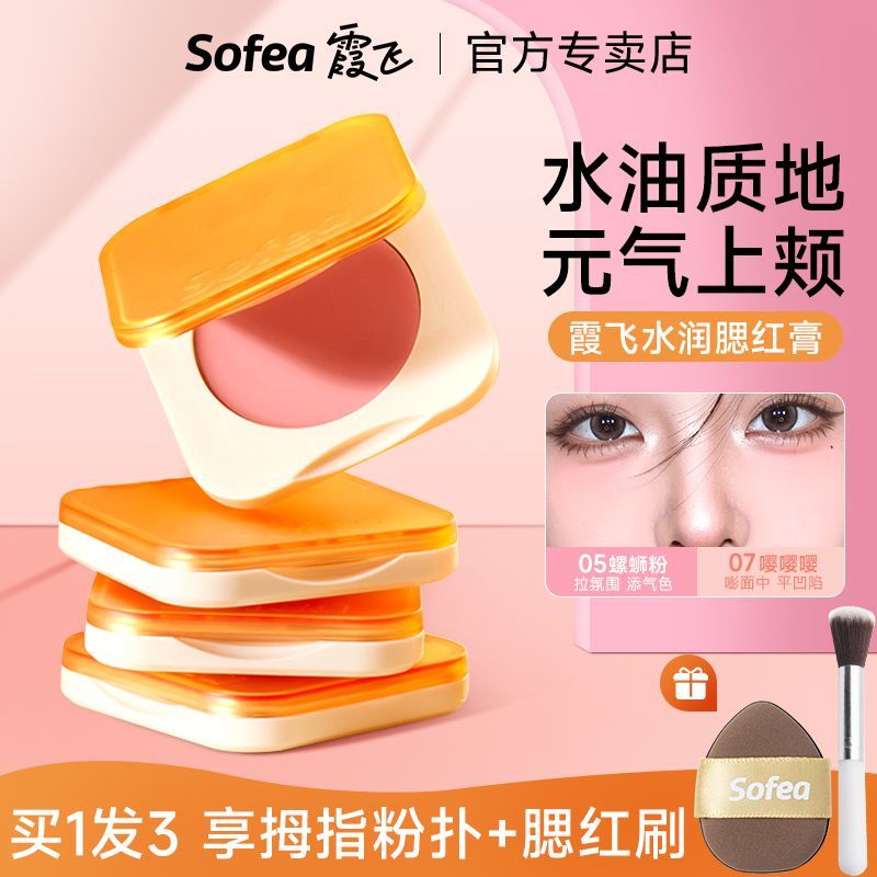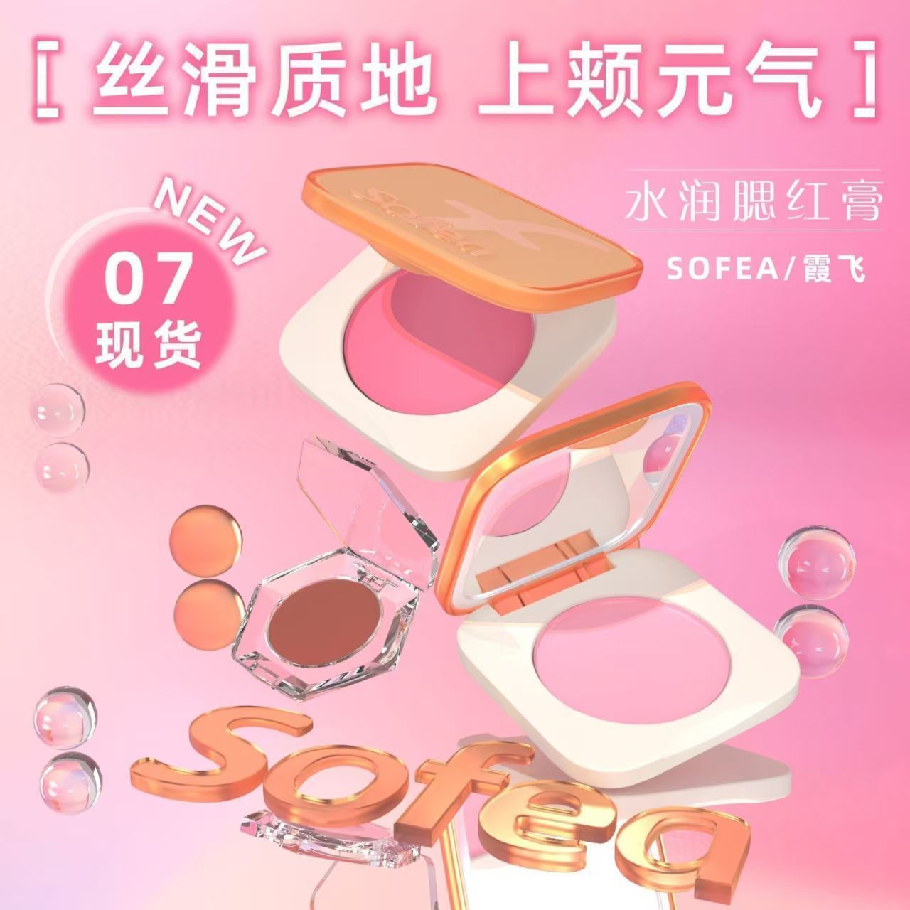 Sofea霞飞水润腮红膏水润生巧丝质地元气上颊面部膨胀自然提亮