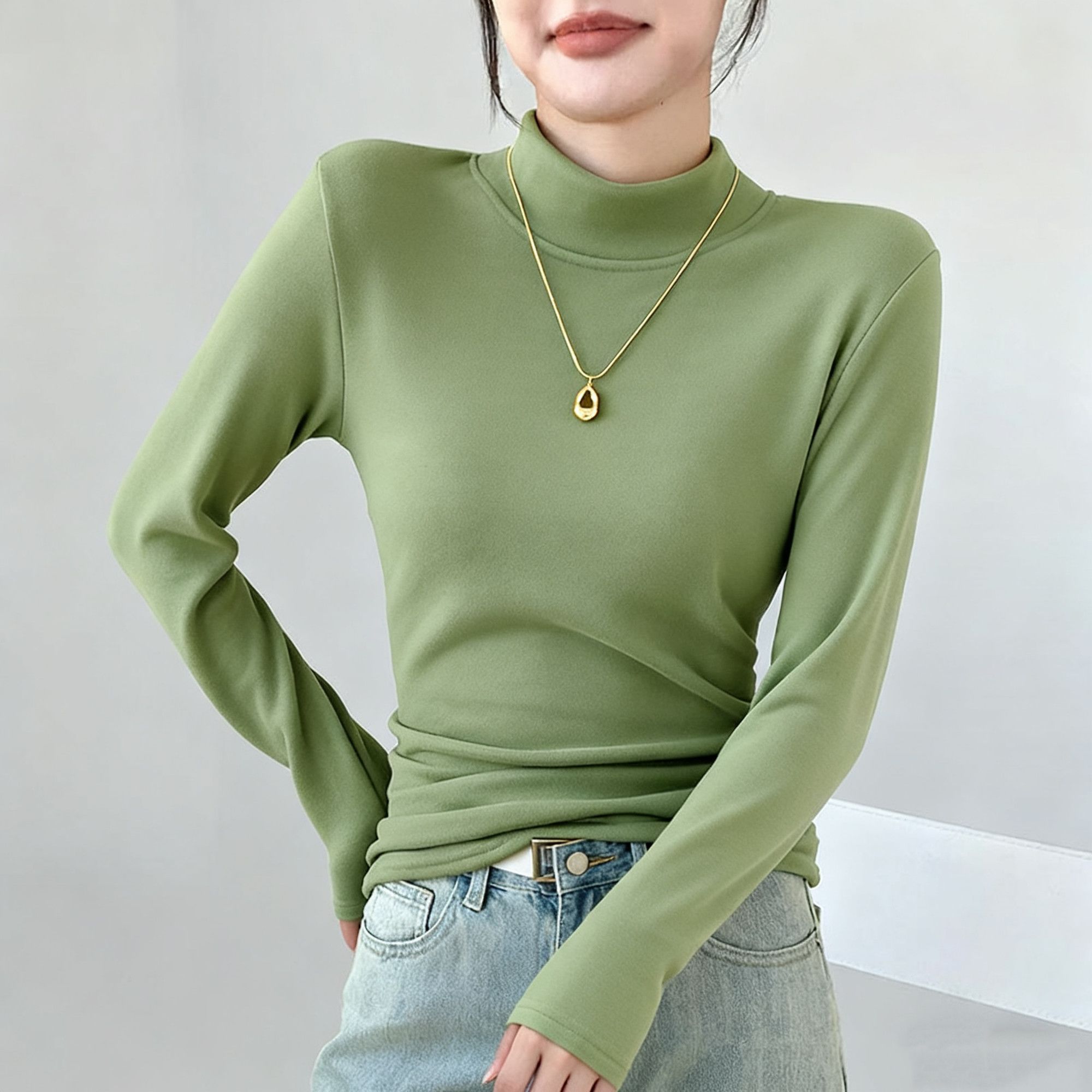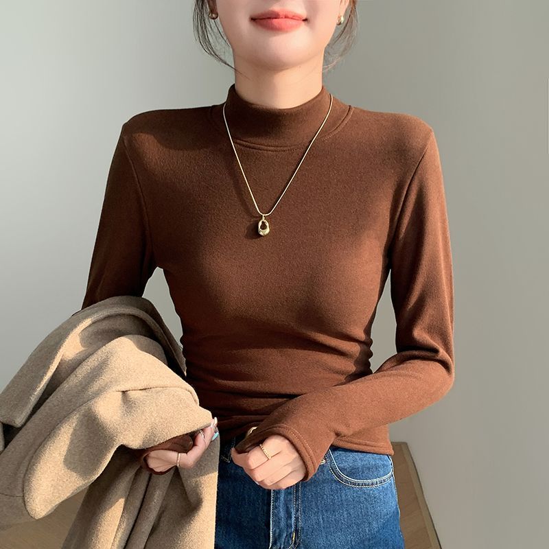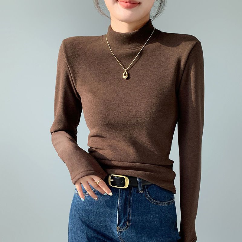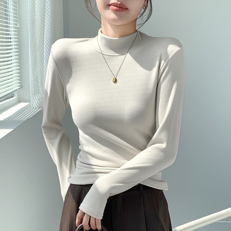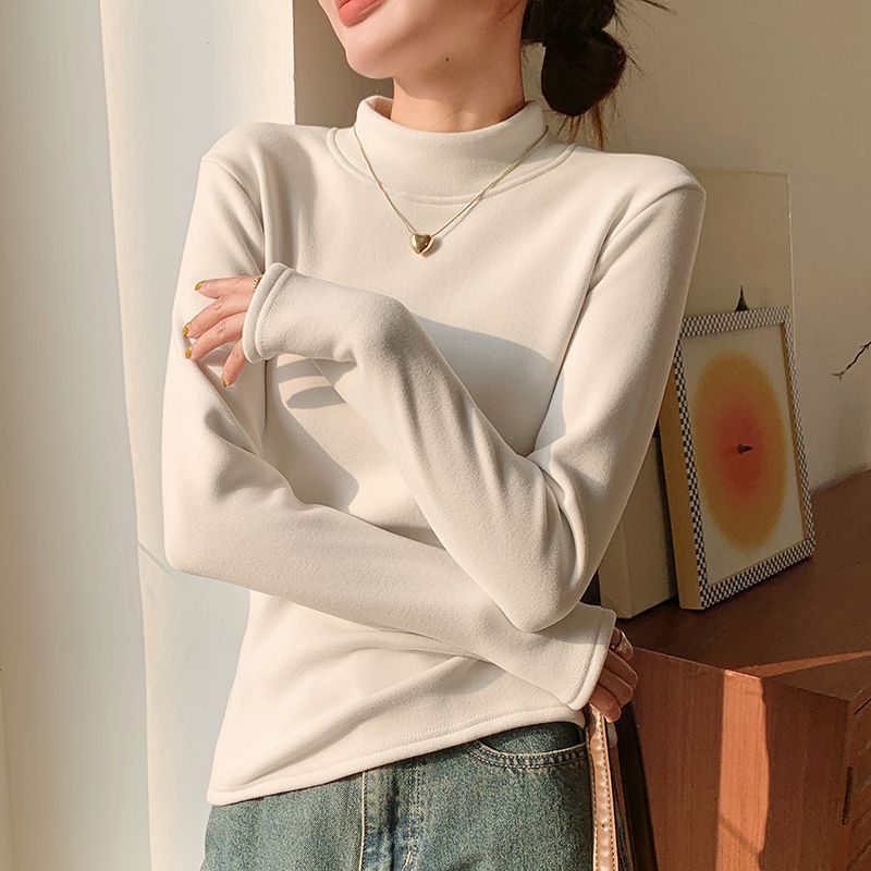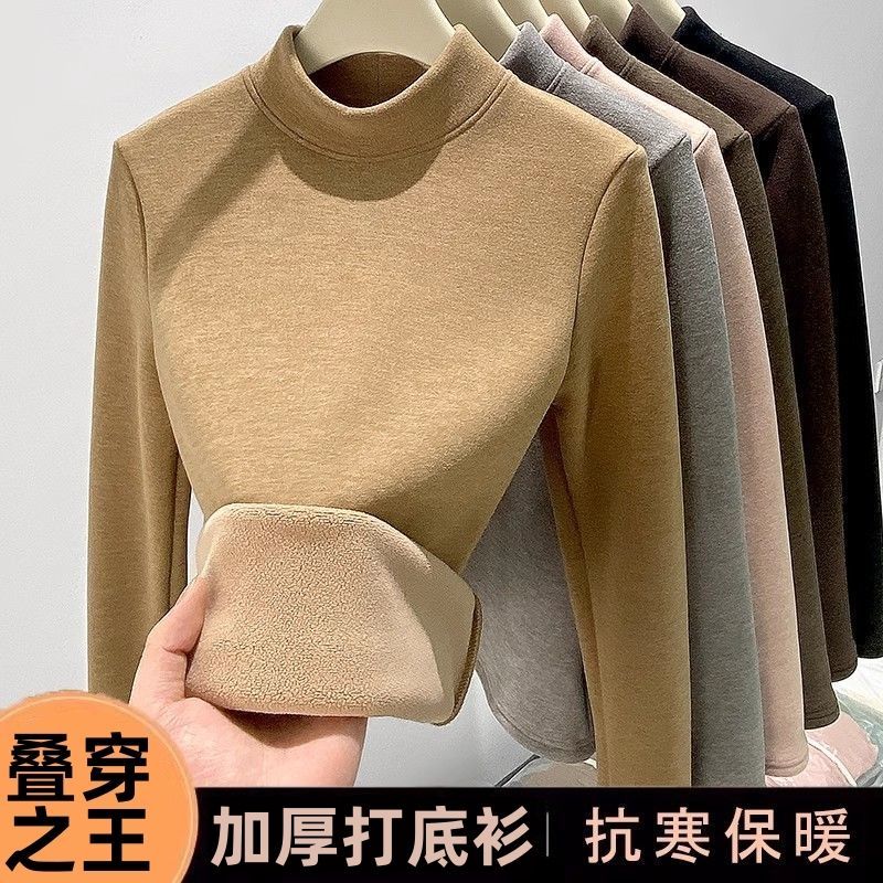 加绒加厚中领女士保暖套装裤子防寒两件套抗寒上衣半高领打底衫女