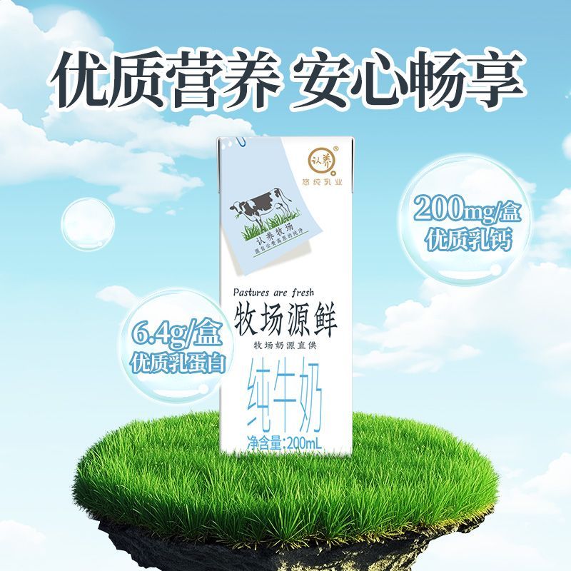 【12月】认养牧场源鲜纯牛奶200ml*10盒*4提礼盒装儿童成人纯牛奶