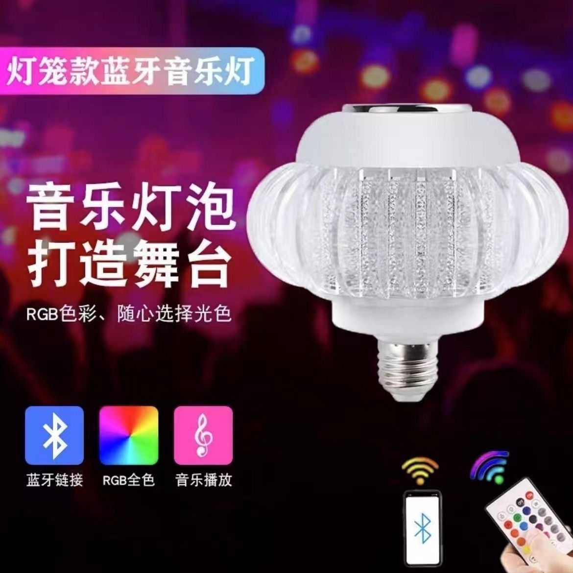 七彩水晶灯笼蓝牙音乐球泡灯卧室客厅大音量智能遥控幻彩氛围灯