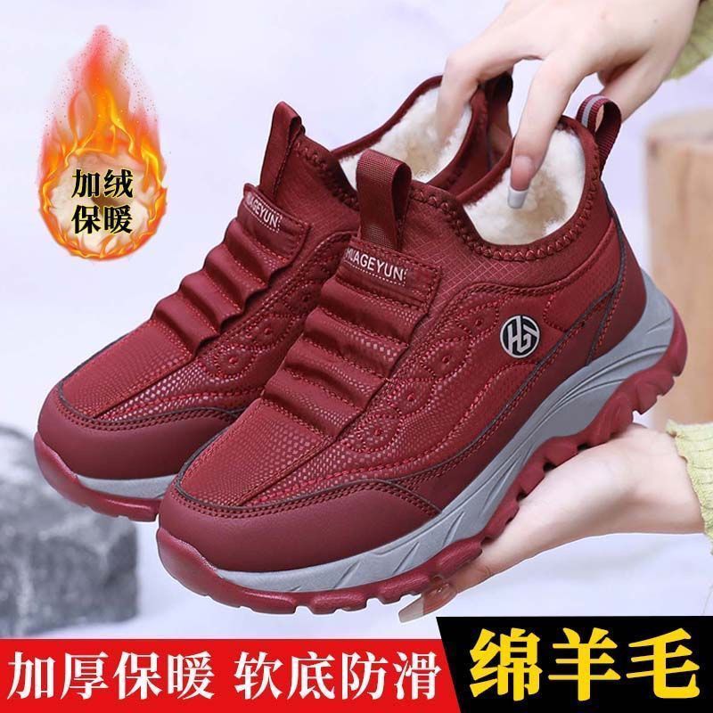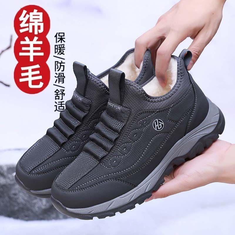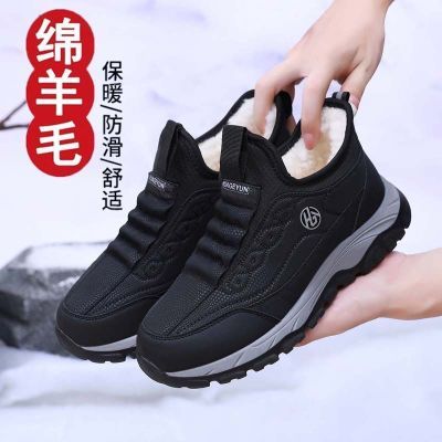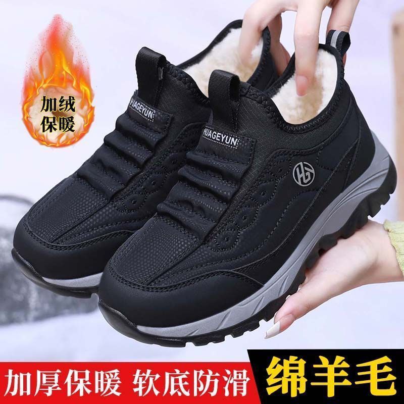 冬季男女同款羊毛内里棉鞋加绒加厚防水雪地靴保暖防寒中老年棉靴
