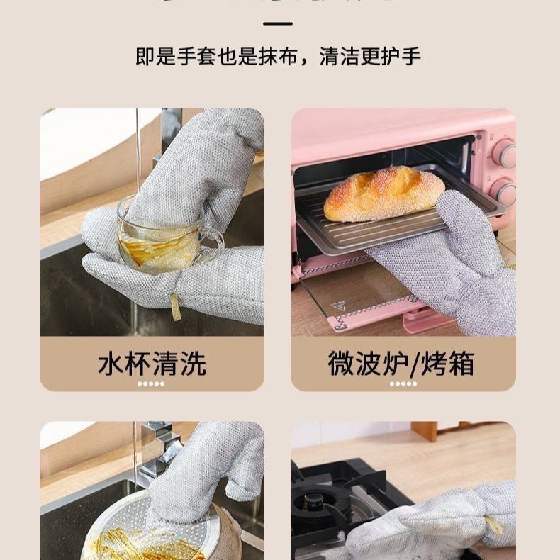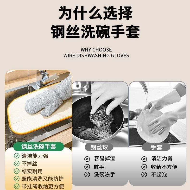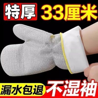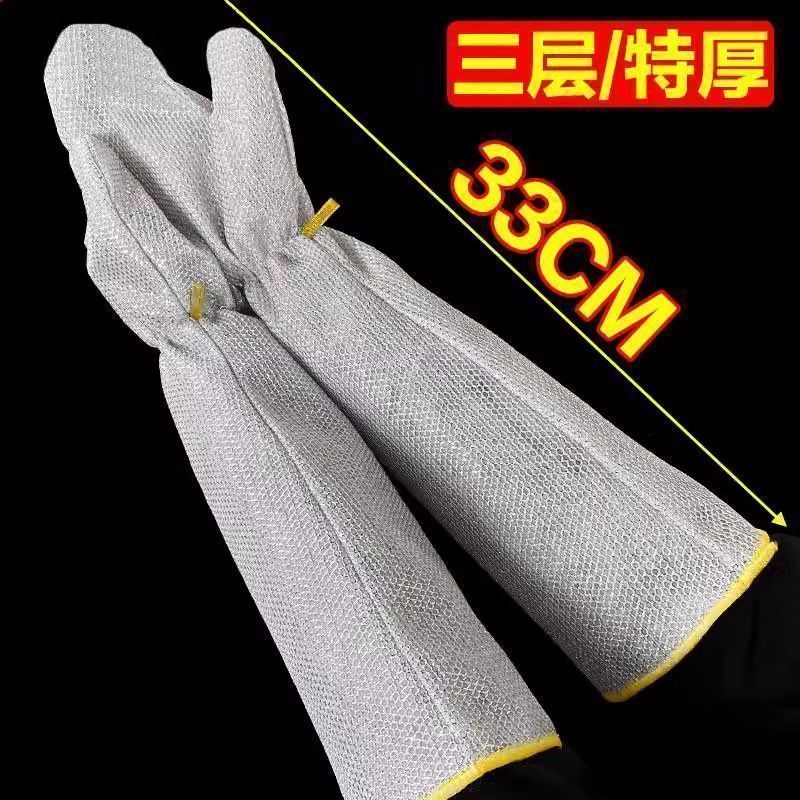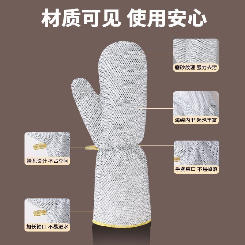 加长钢丝洗碗手套清洁防水厨房神器刷碗沾油锅加银丝冬天家务手套