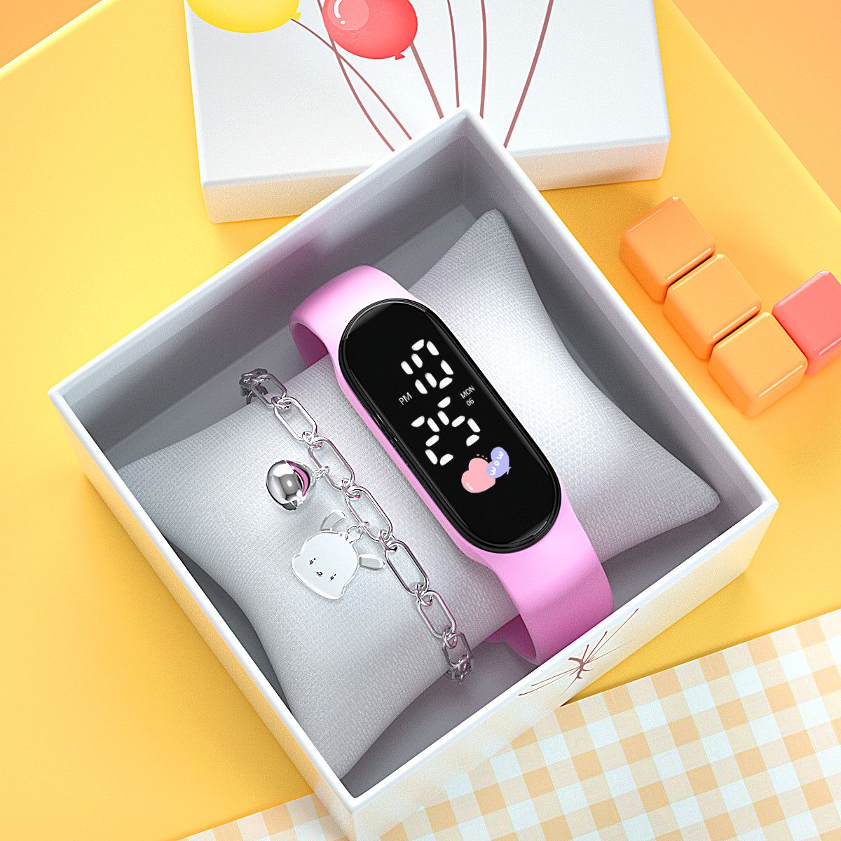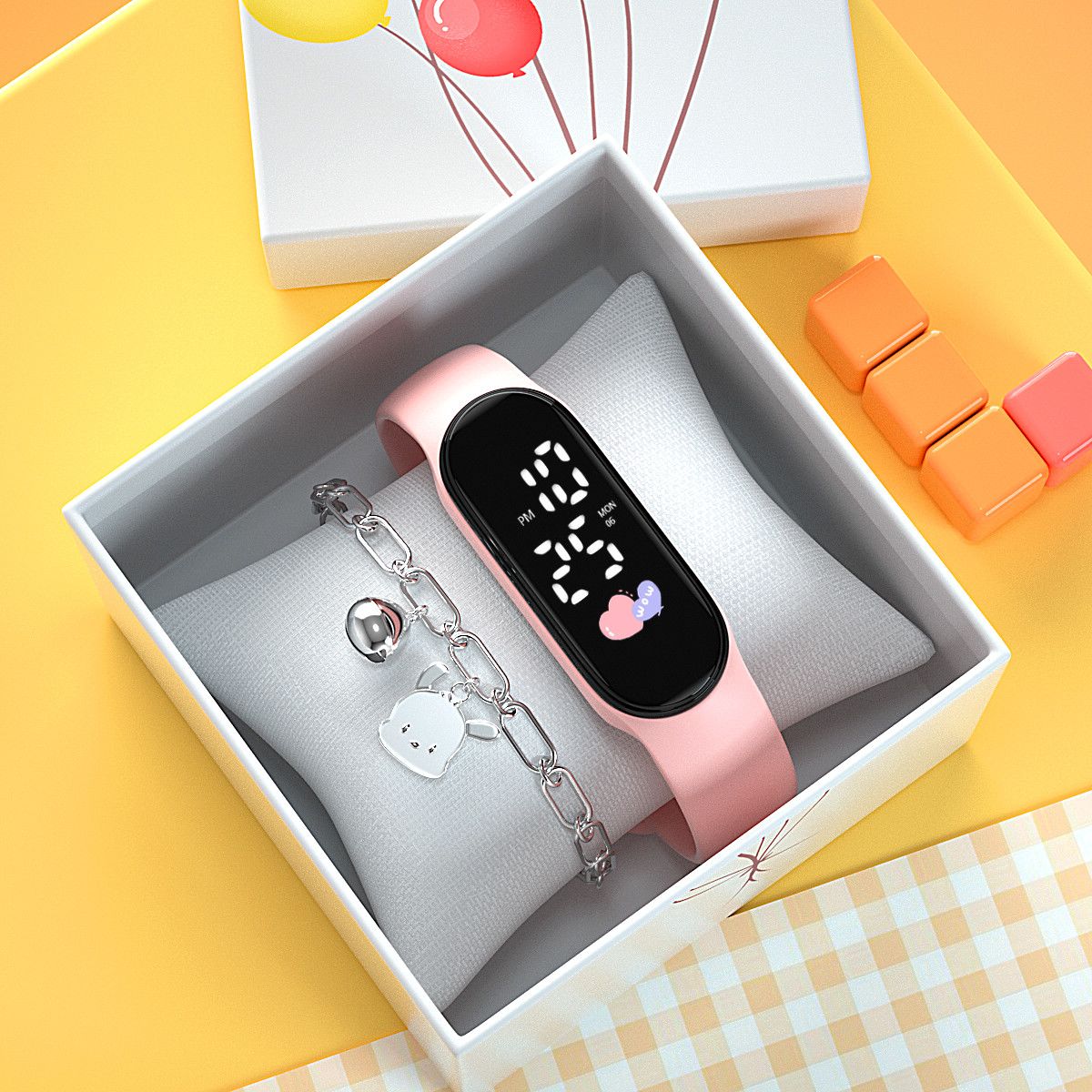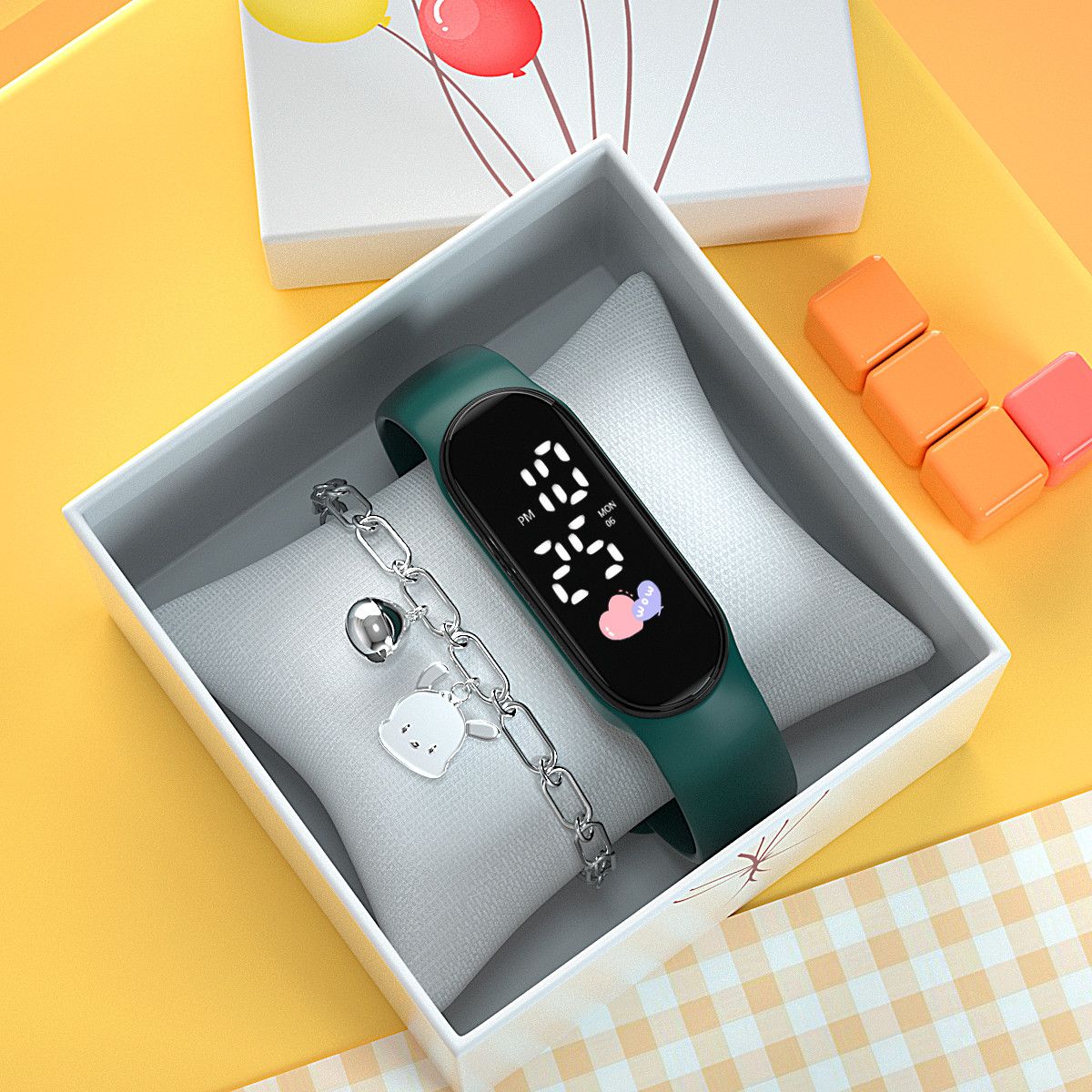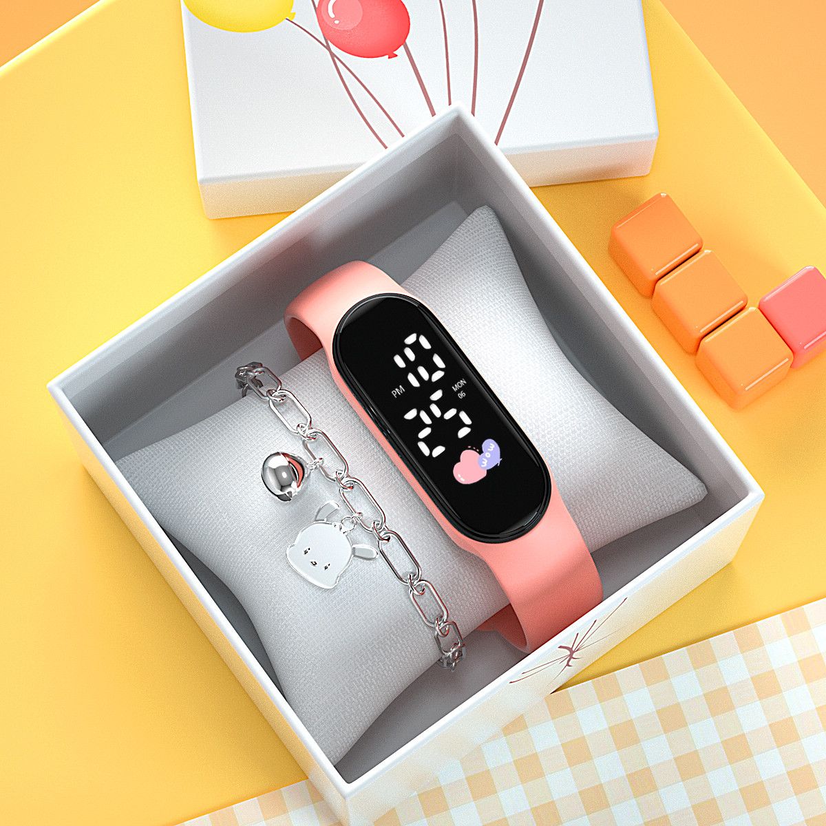 爱心手表女学生韩版简约时尚森系运动手环表防水夜光儿童电子表男