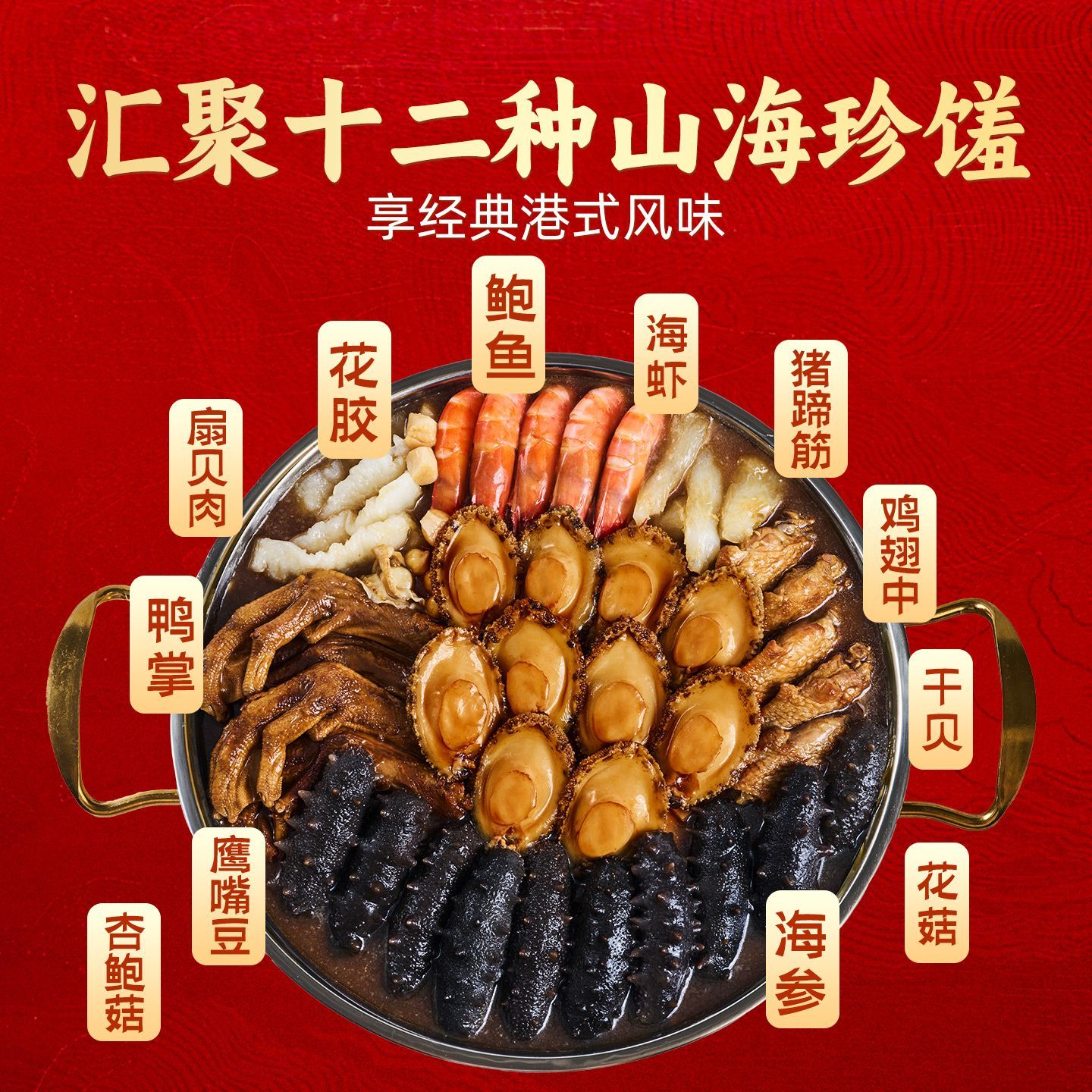 【年货送礼】兆华十参十鲍大盆菜5斤礼盒加热即食辽参鲍鱼年夜饭