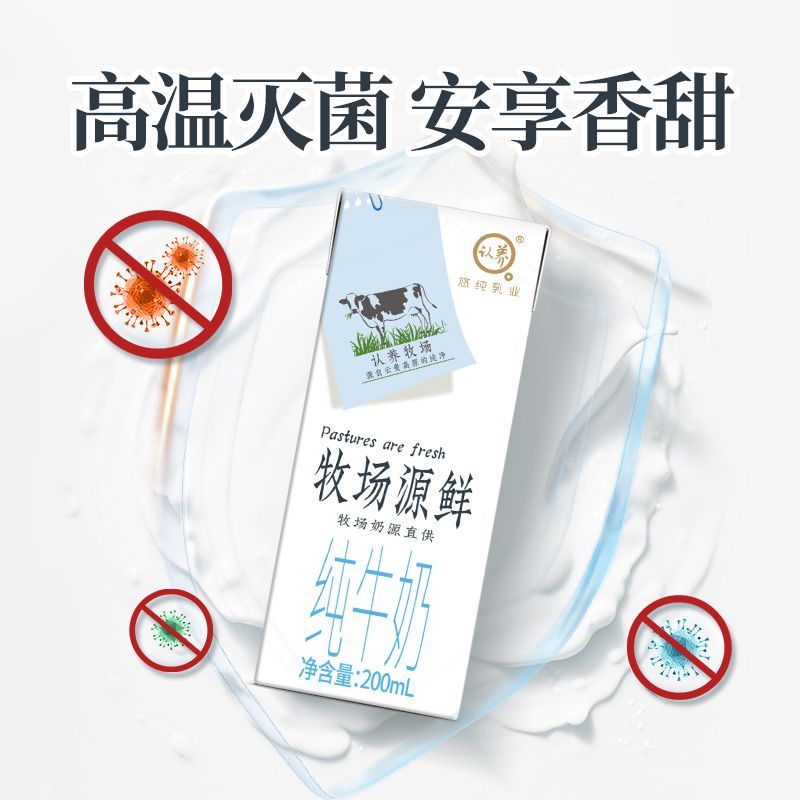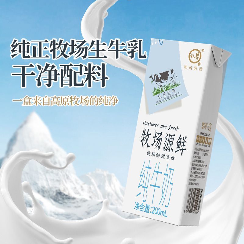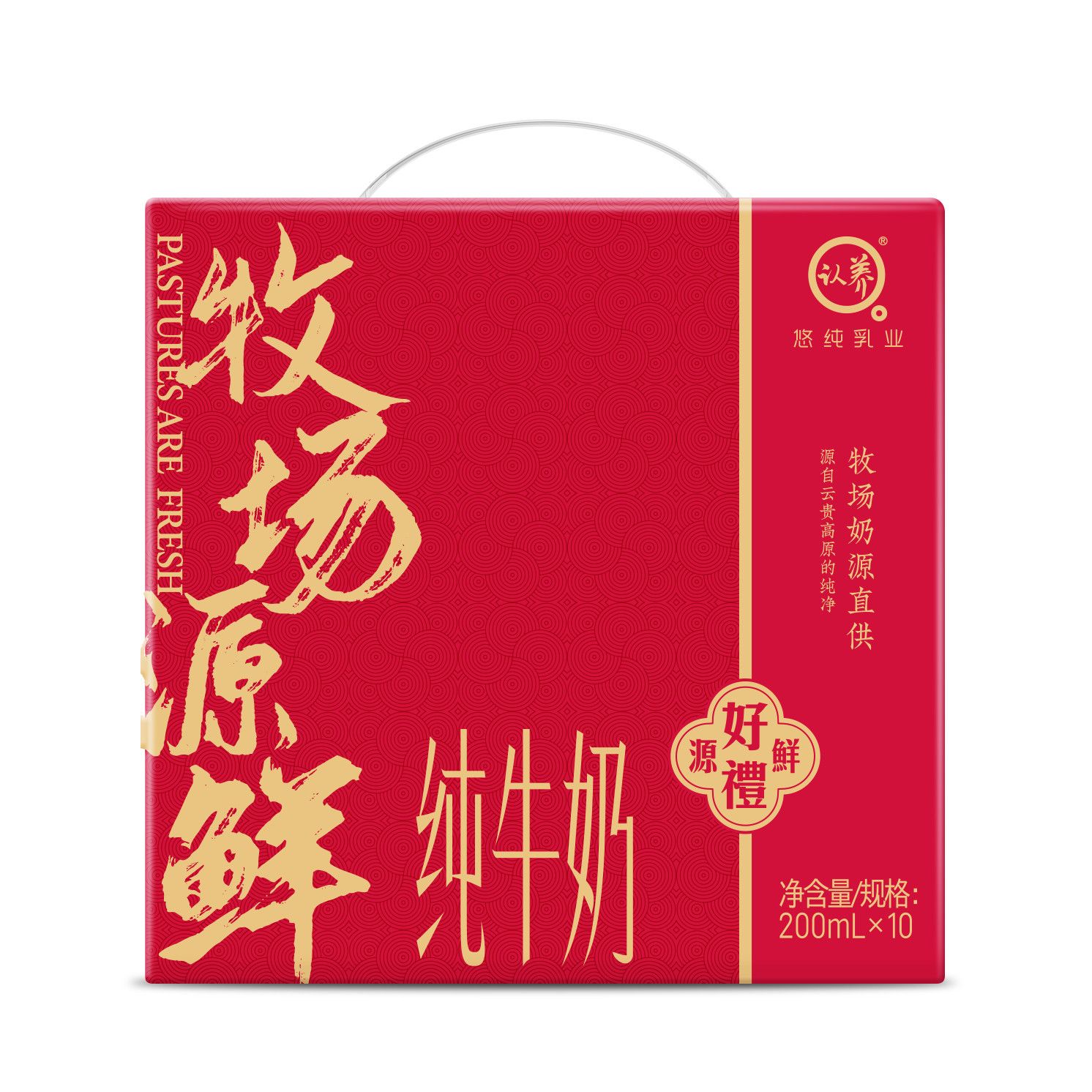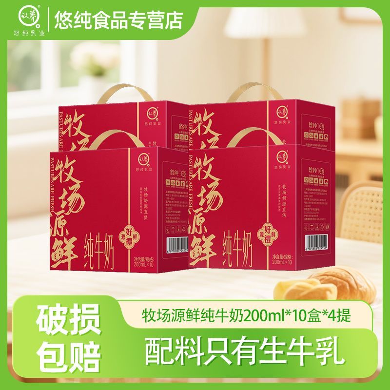 【12月】认养牧场源鲜纯牛奶200ml*10盒*4提礼盒装营养儿童纯牛奶